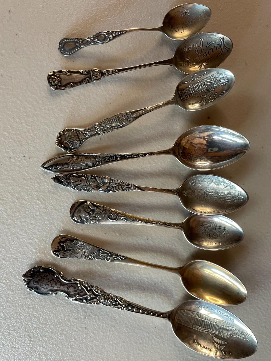 Beautiful Sterling Silver Spoons. Some show state printing like Washington DC, New York and California.