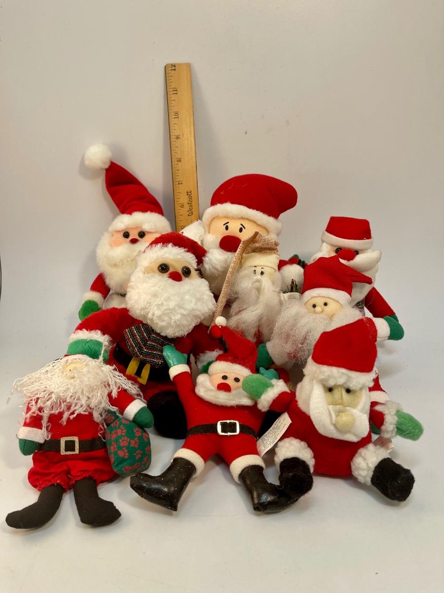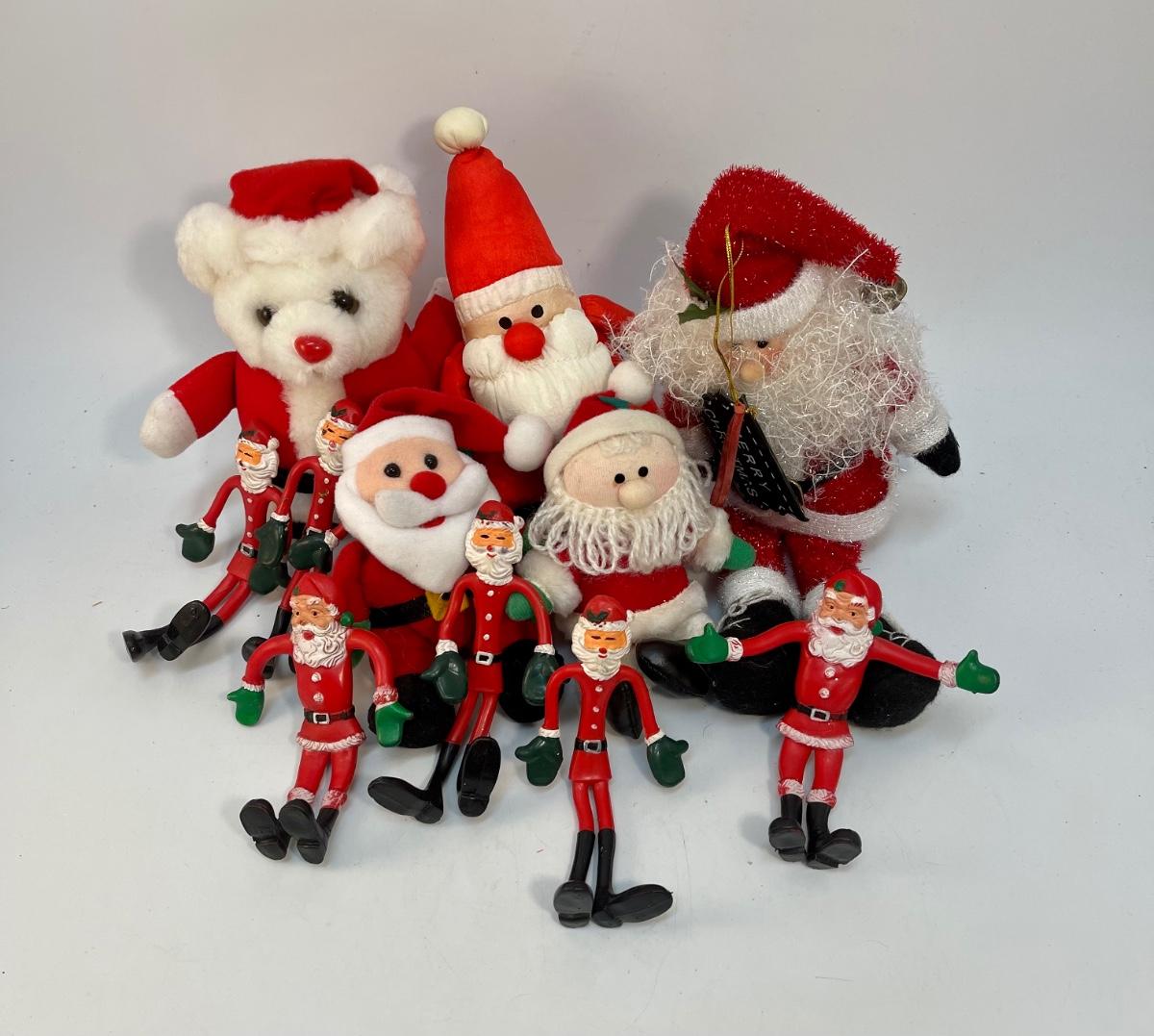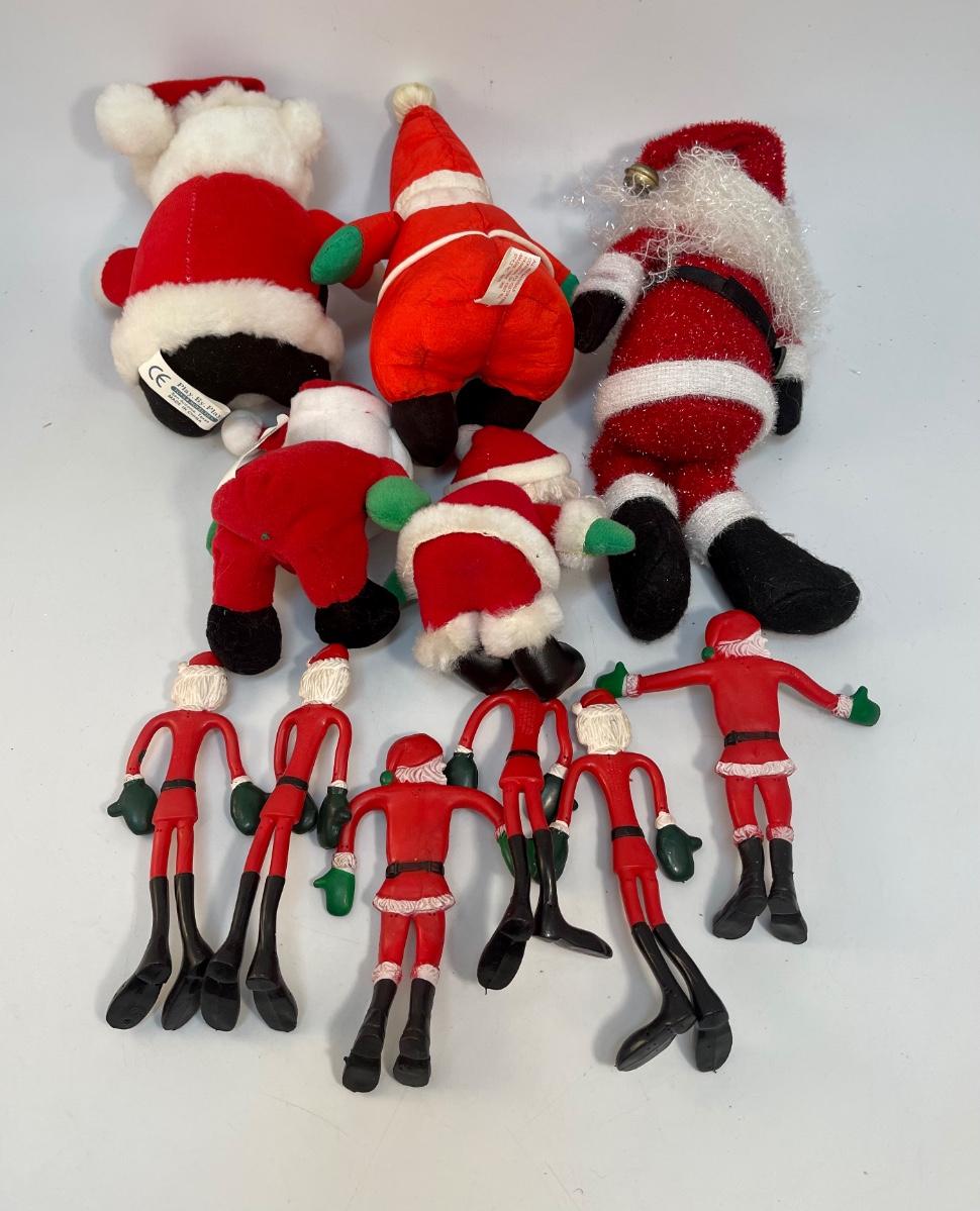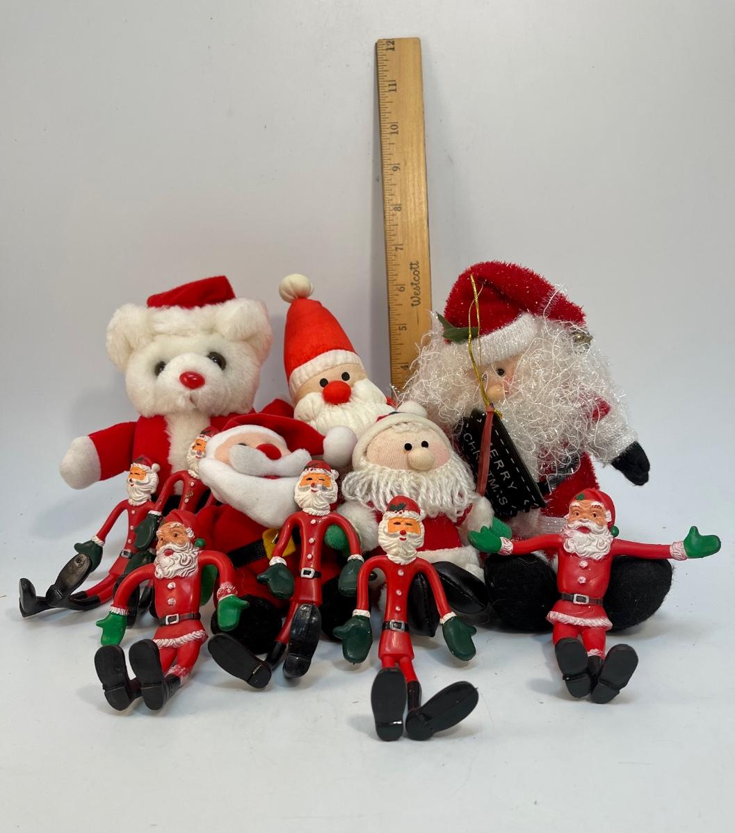 Lot of Stuffed Plush & Plastic Bendable Santa Claus Christmas decor