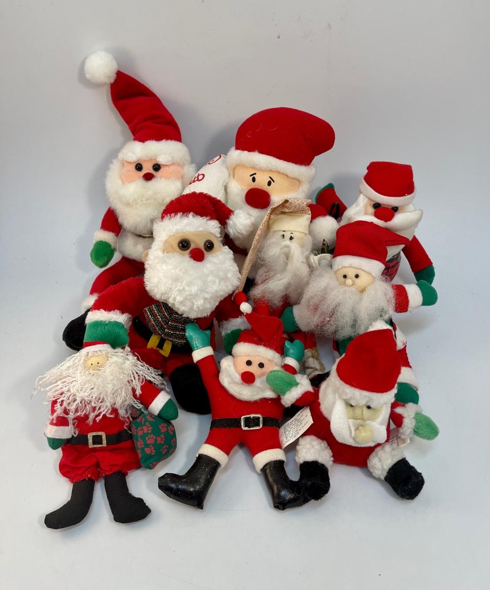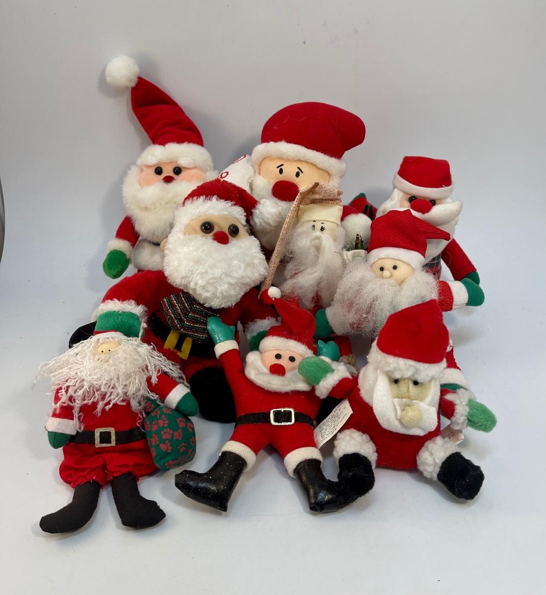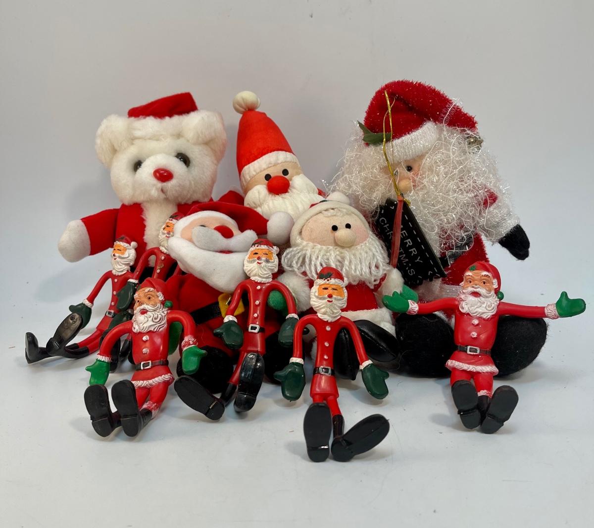 Lot of Stuffed Plush & Plastic Bendable Santa Claus Christmas decor
