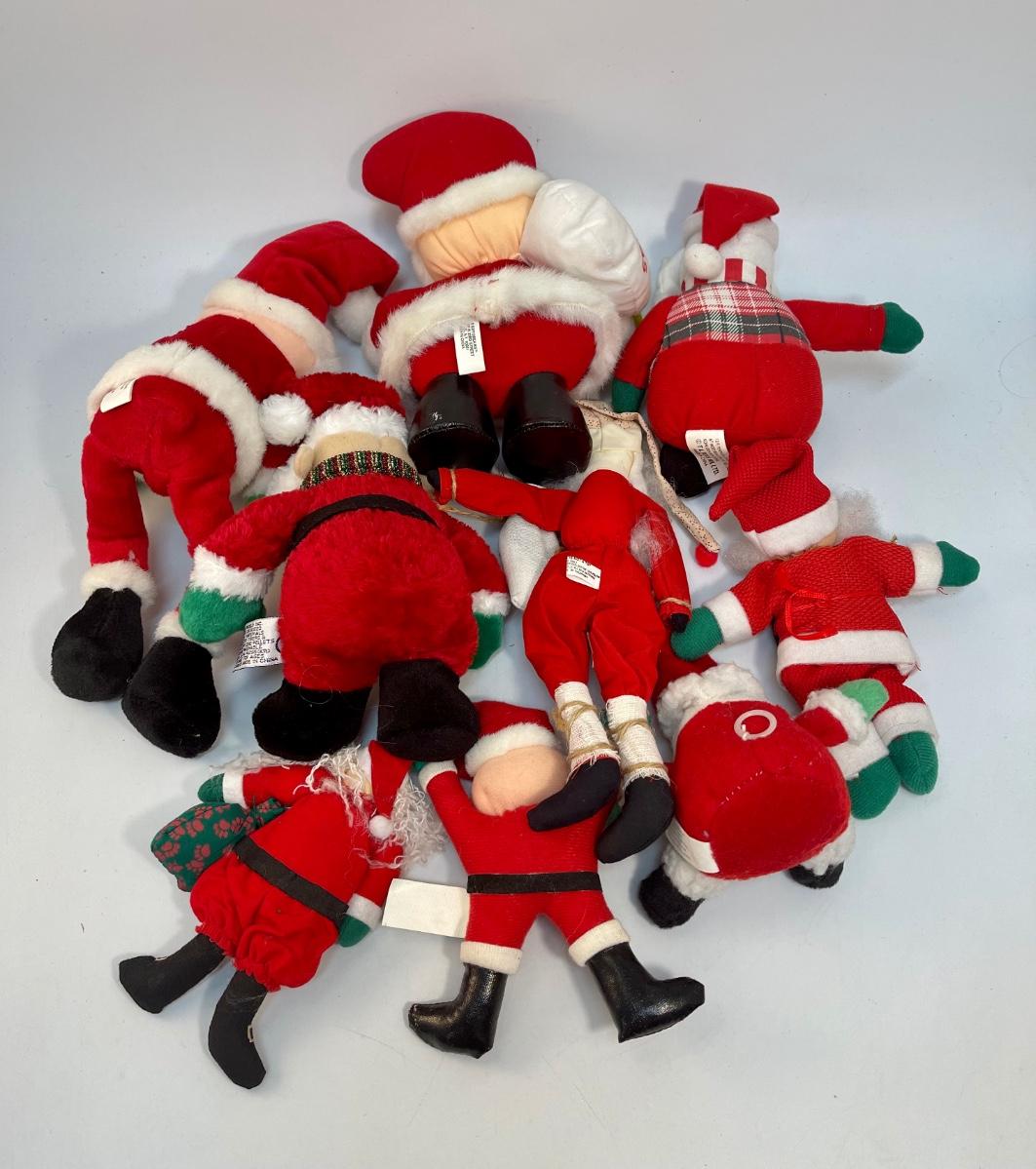 Lot of Stuffed and Bendable Santa Claus Christmas decor