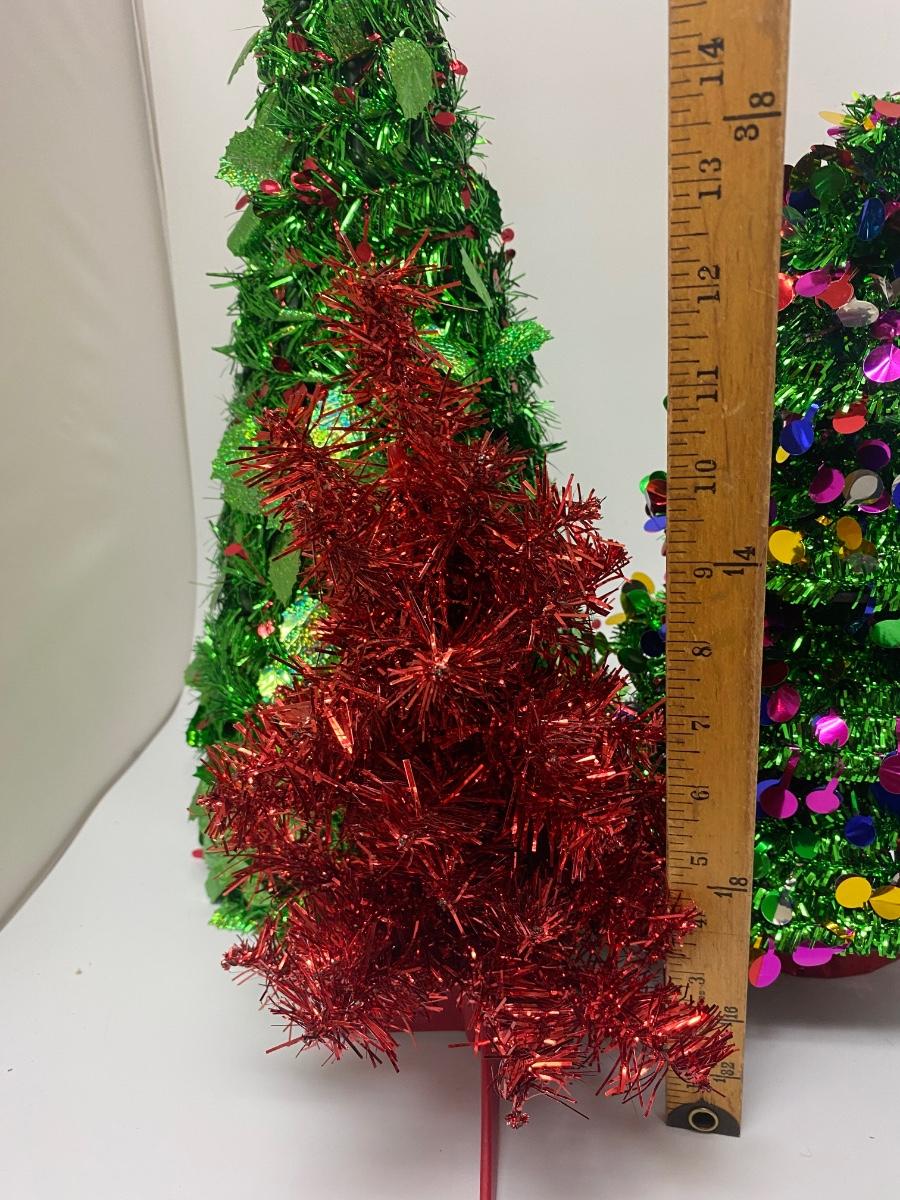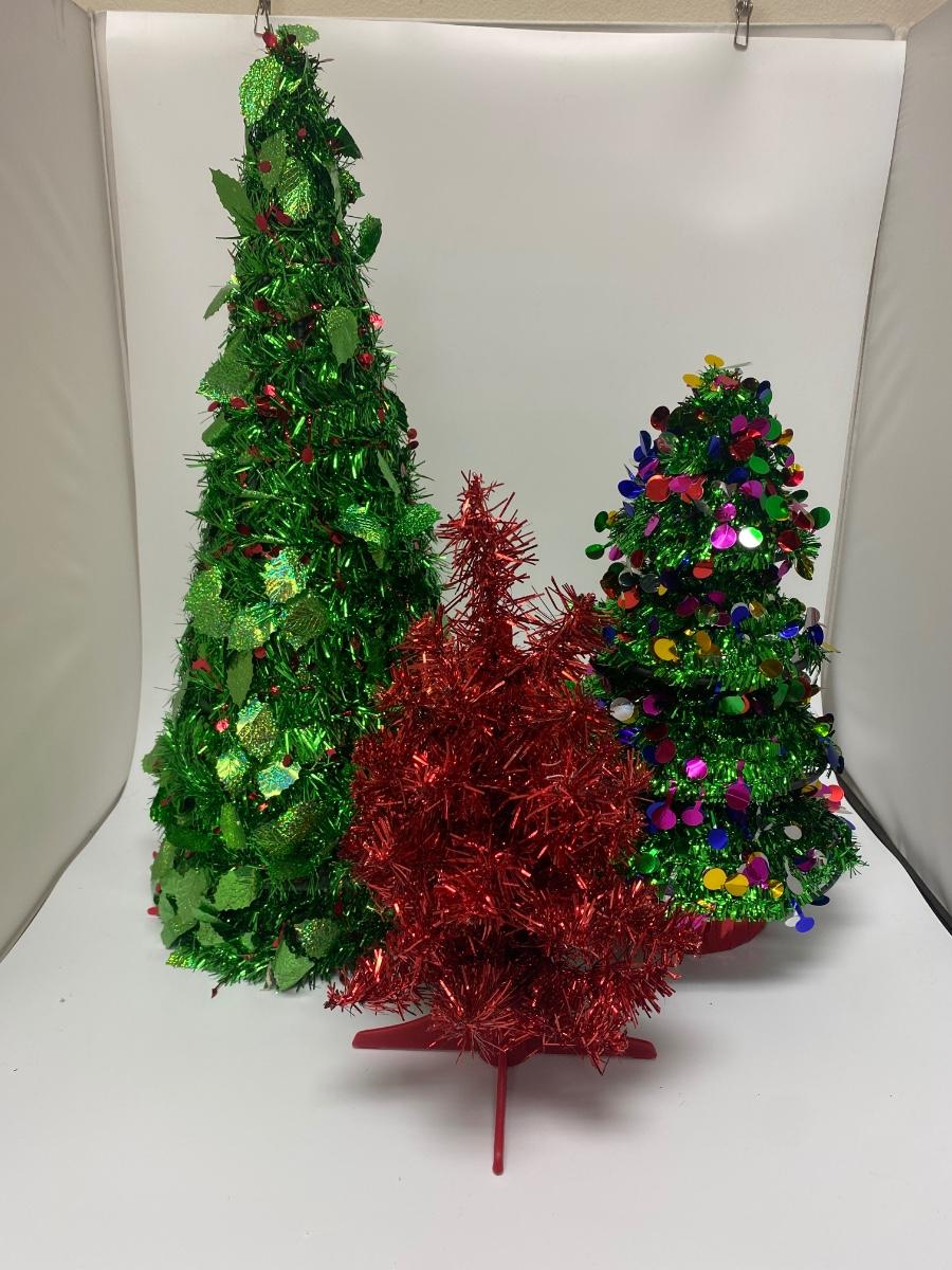 Lot of Tabletop Sitting Foil Garland Christmas Tree Holiday Decor