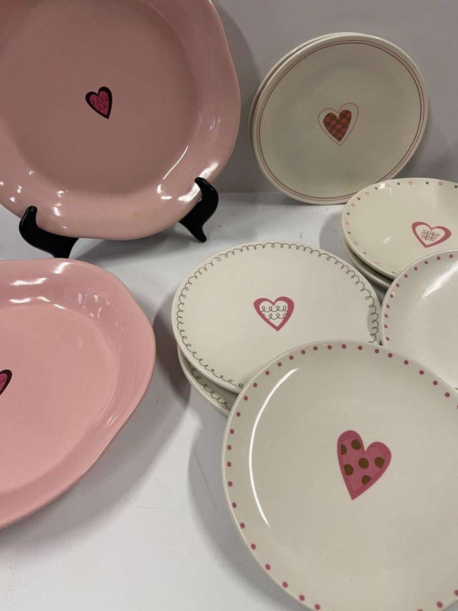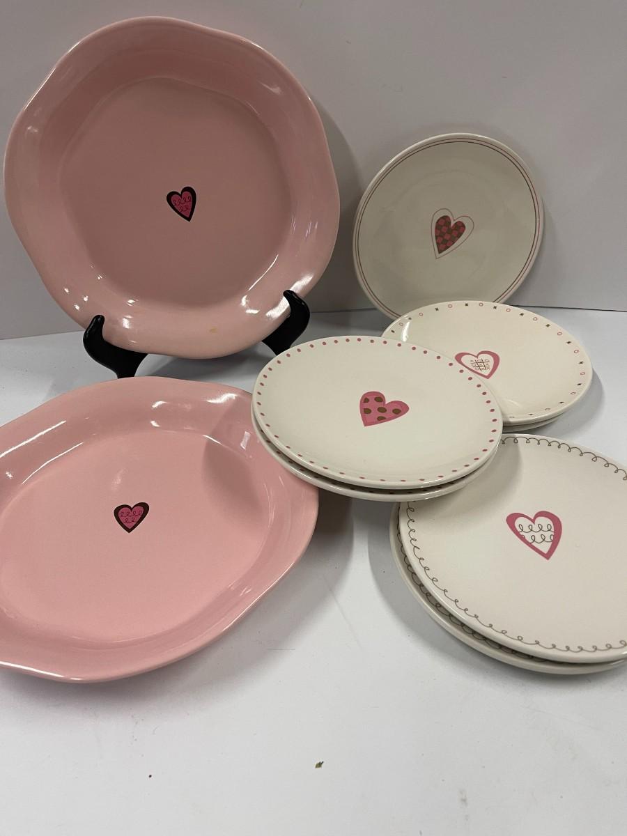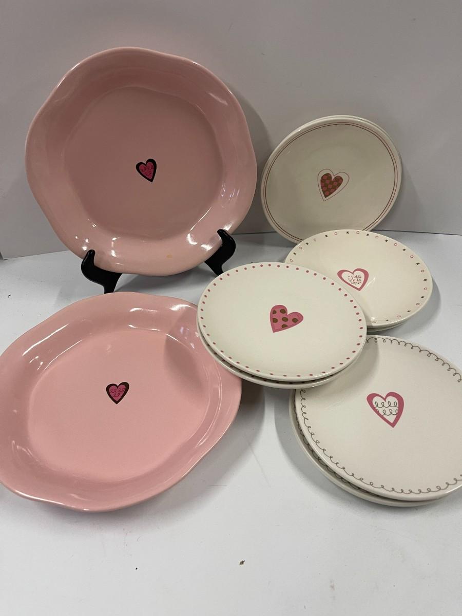 Lot of Tag Valentine dishes. includes 2 round platters with ruffled edges (9") and 8 small plates (6 1/2").