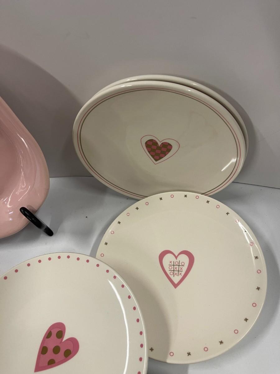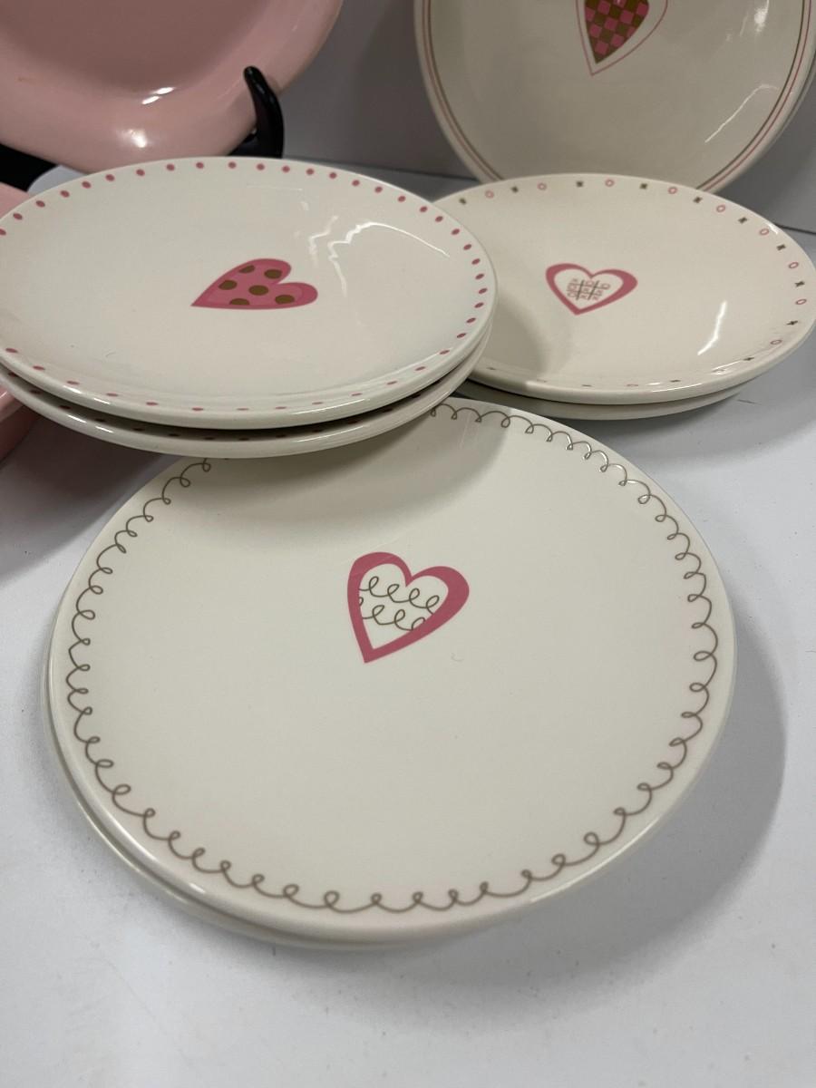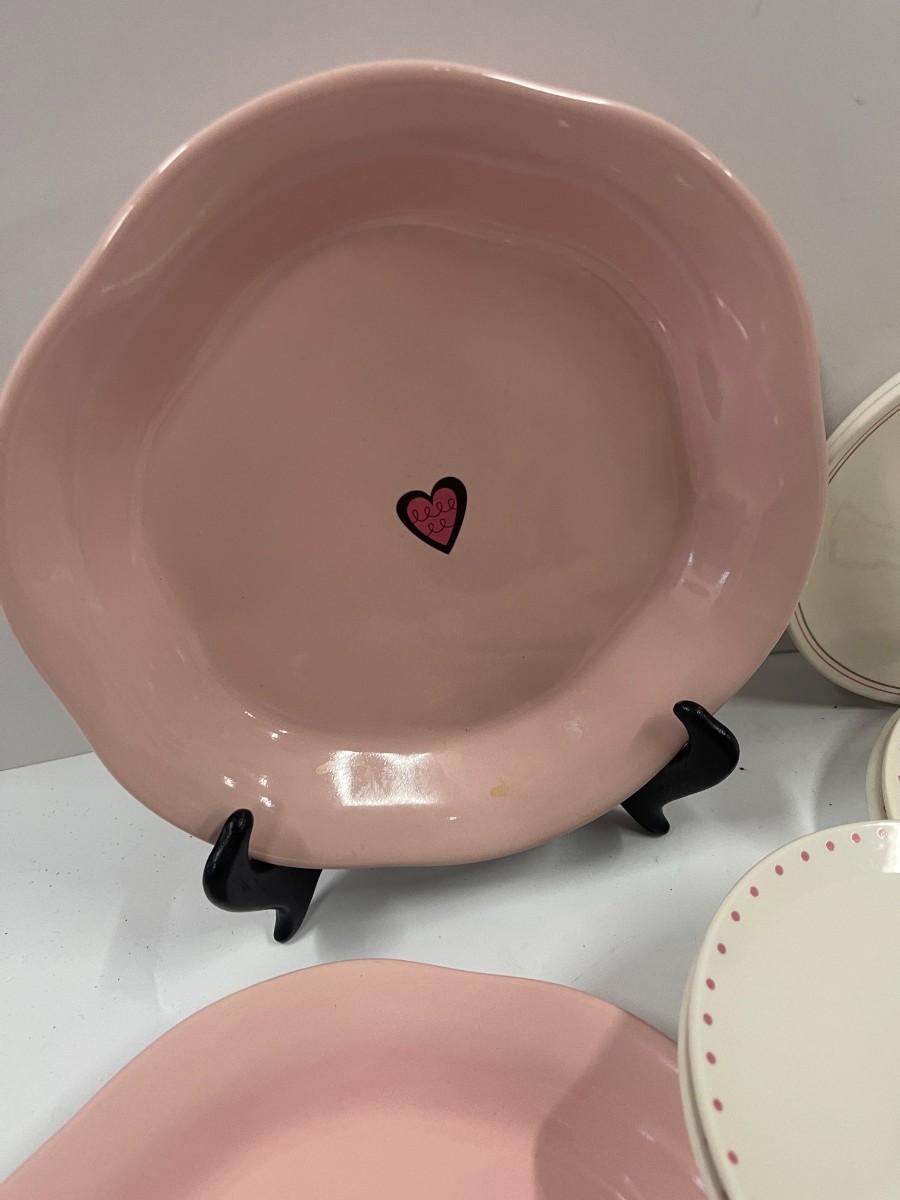 Lot of Tag Valentine dishes. includes 2 round platters with ruffled edges (9") and 8 small plates (6 1/2").