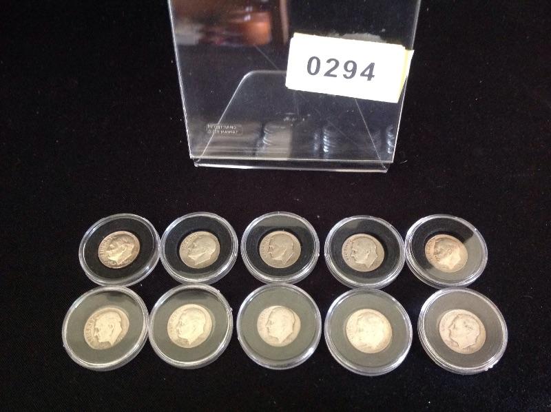Lot of ten Roosevelt dimes 47' '47 '51 '52 '52 '58 '60 '57 '64 '57