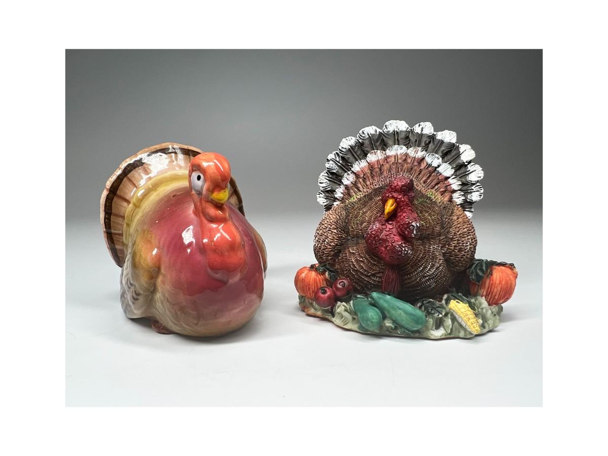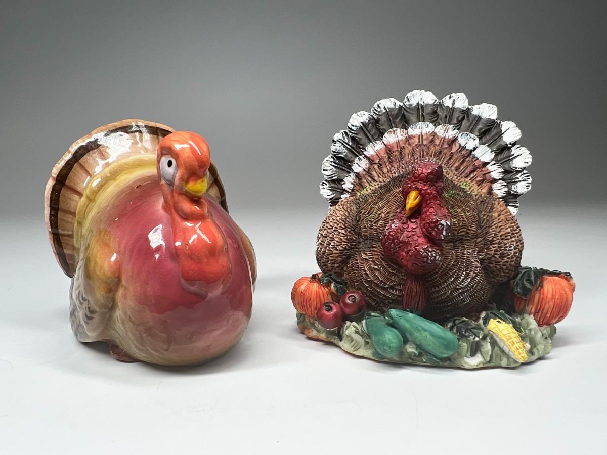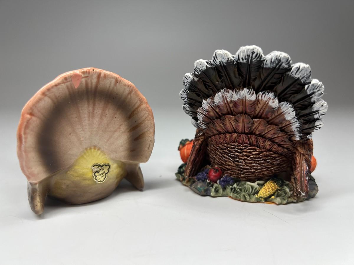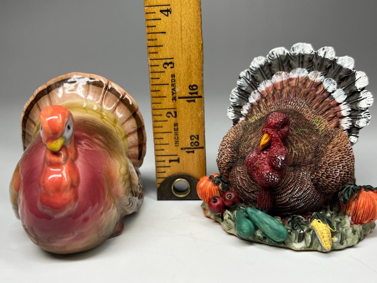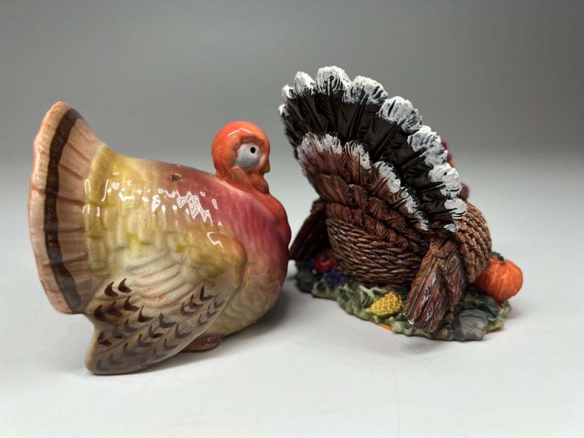 Lot of Thanksgiving Autumn Turkey Ceramic Salt Shaker & Plastic Resin Figurine