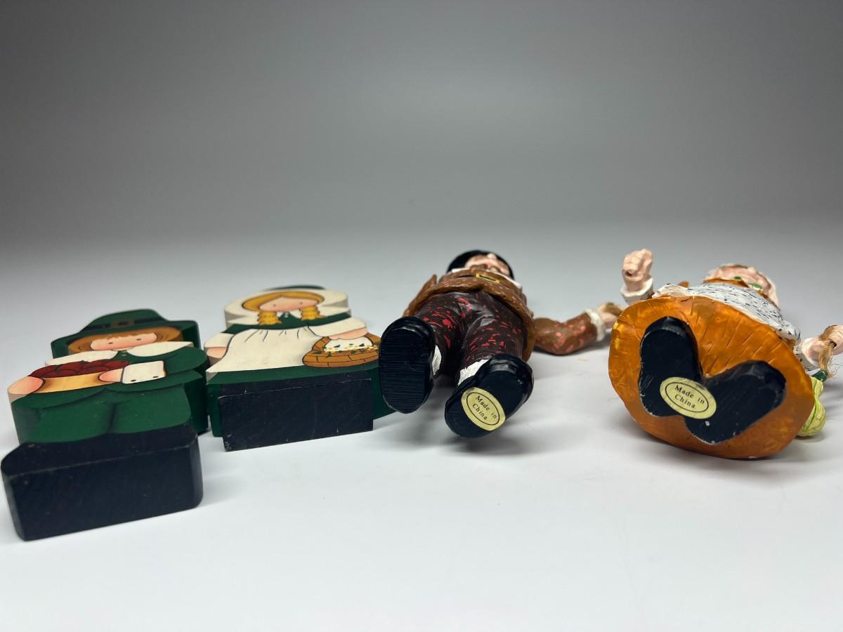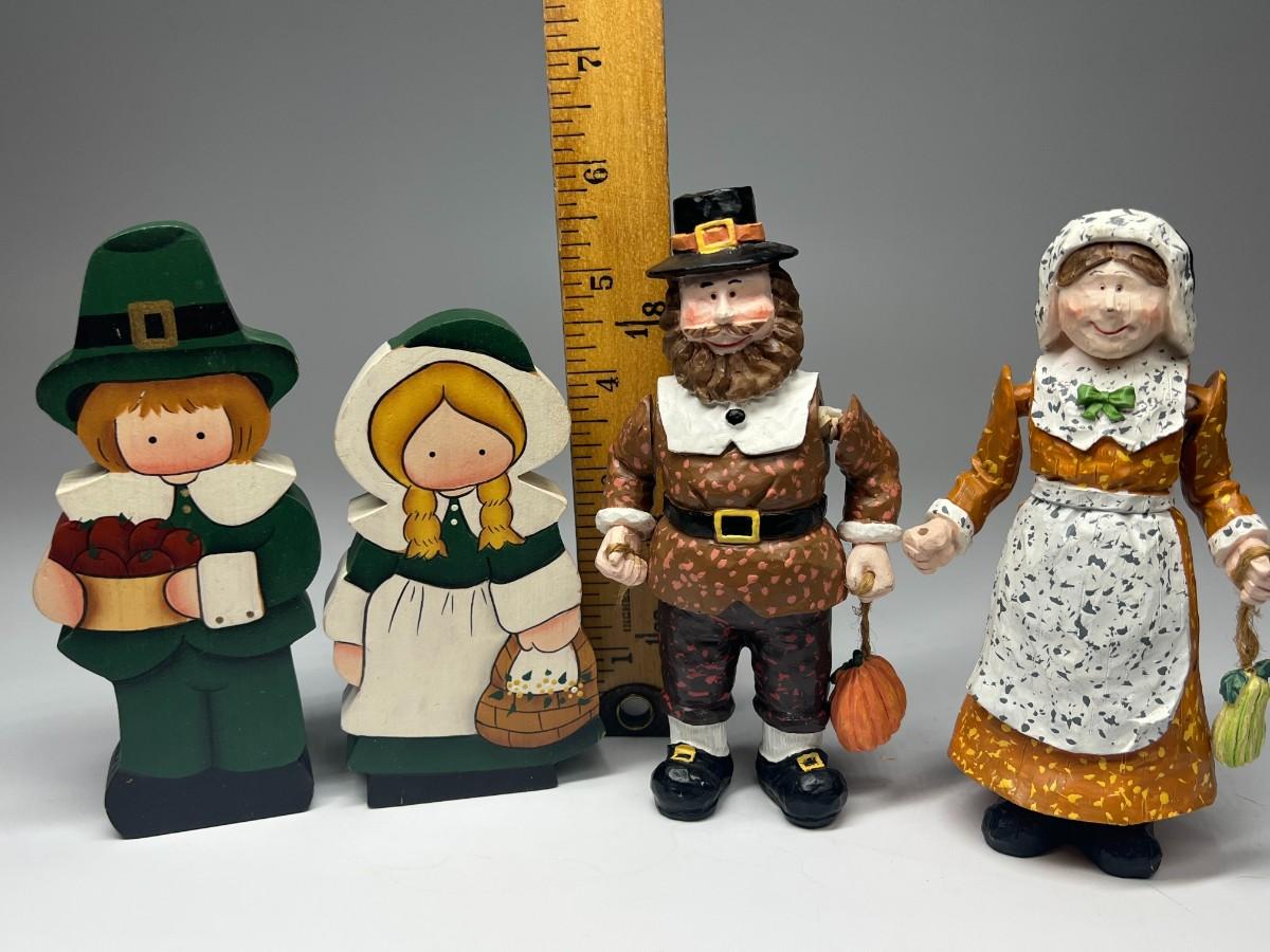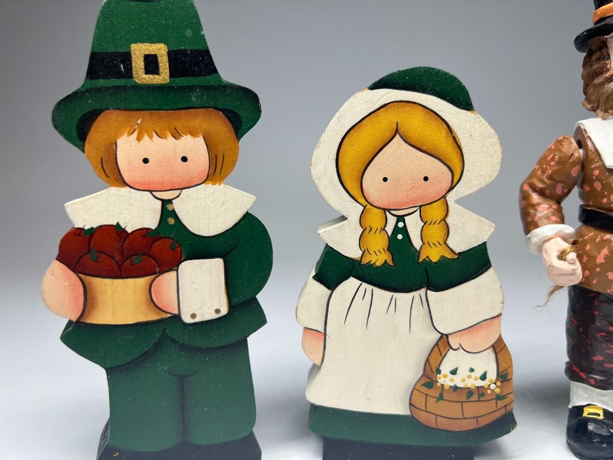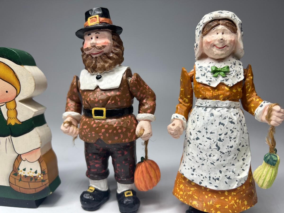 Lot of Thanksgiving Pilgrims Wood & Ceramic Holiday Decor Figurines