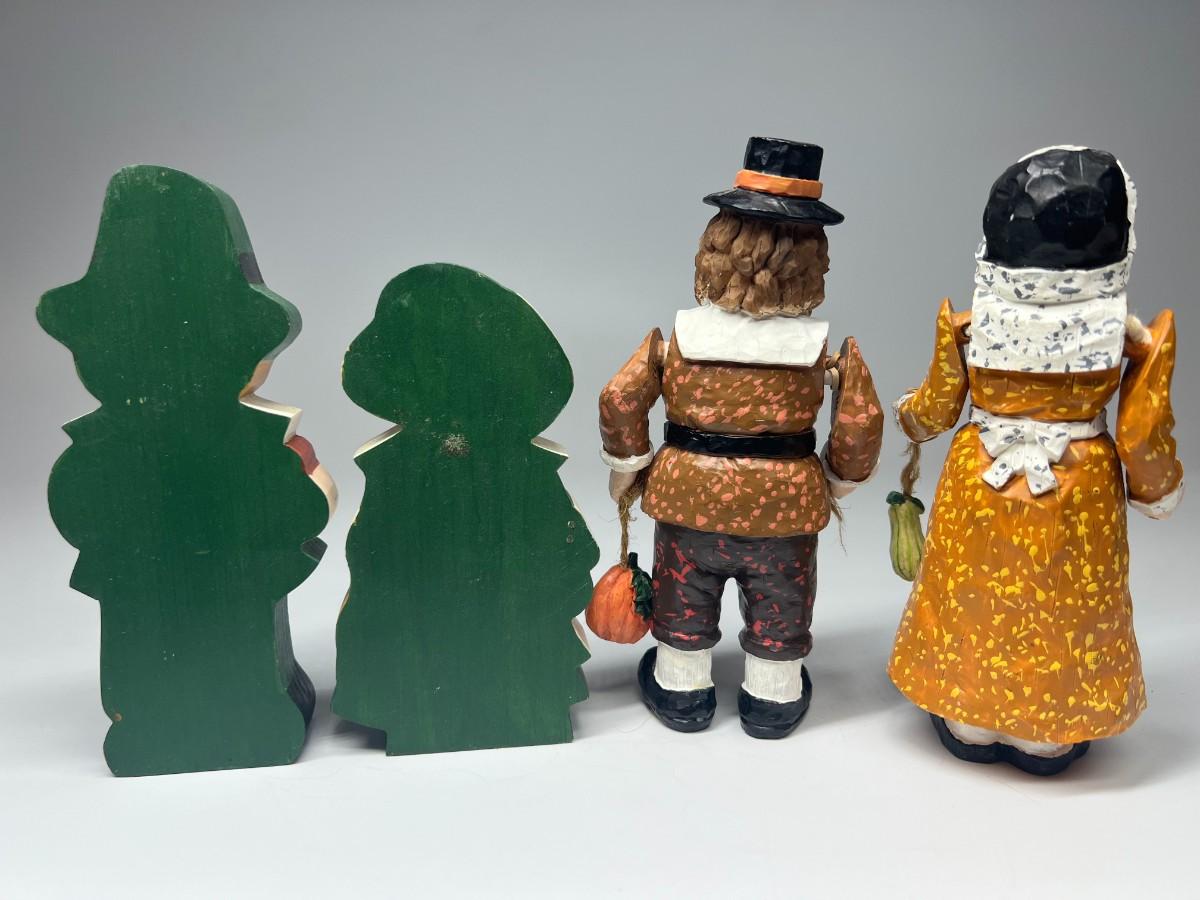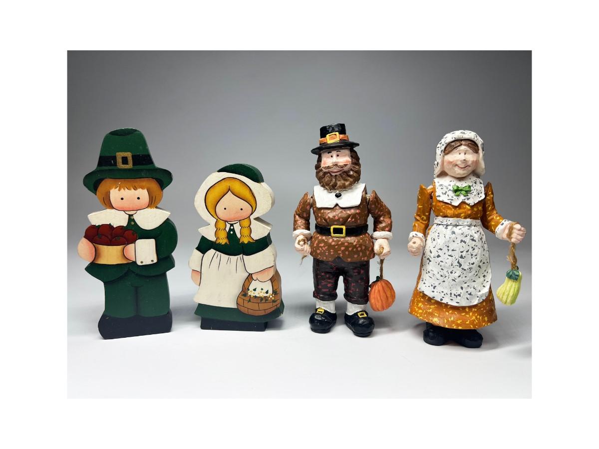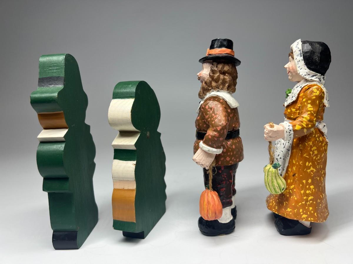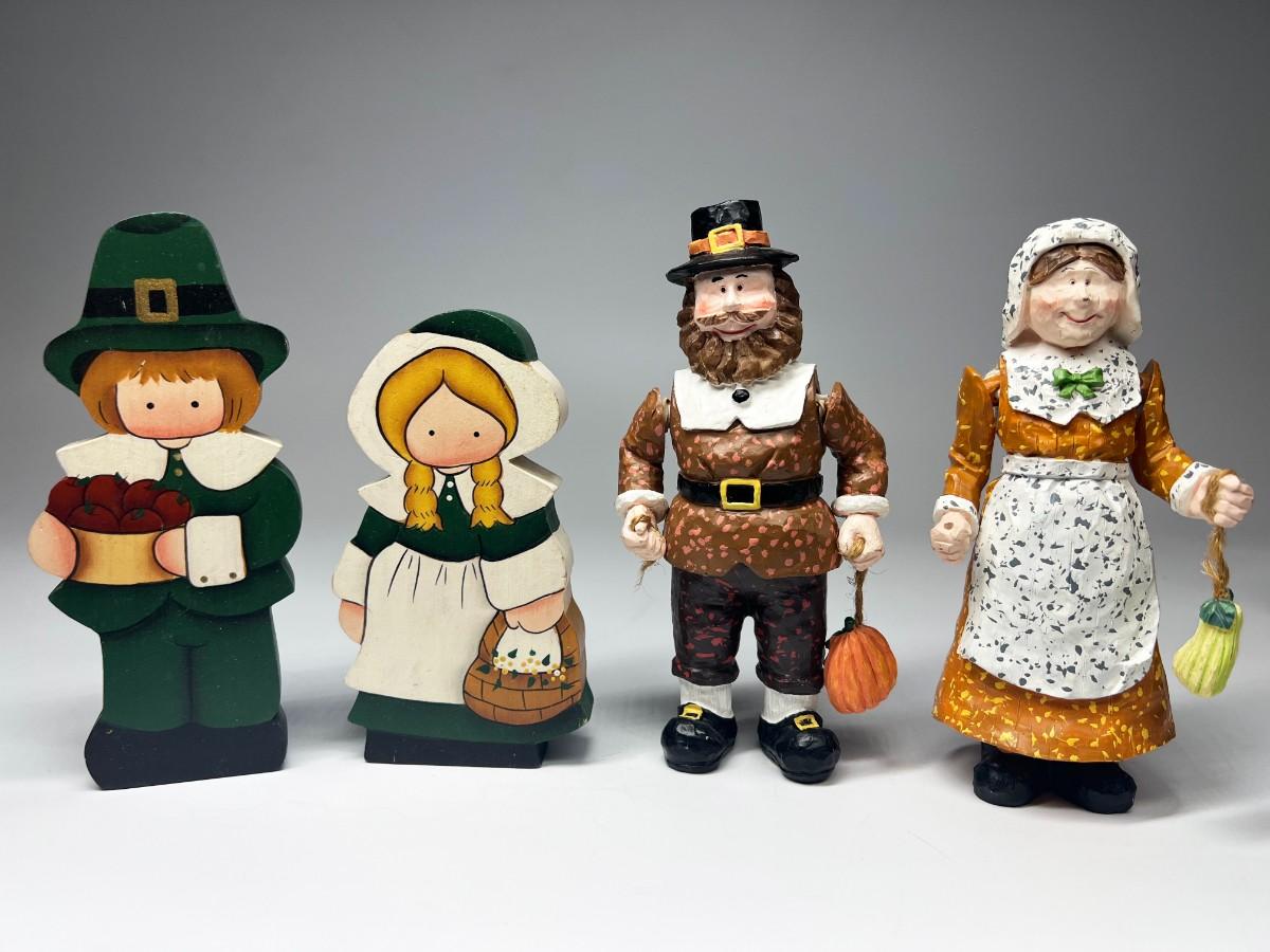 Lot of Thanksgiving Pilgrims Wood & Ceramic Holiday Decor Figurines
