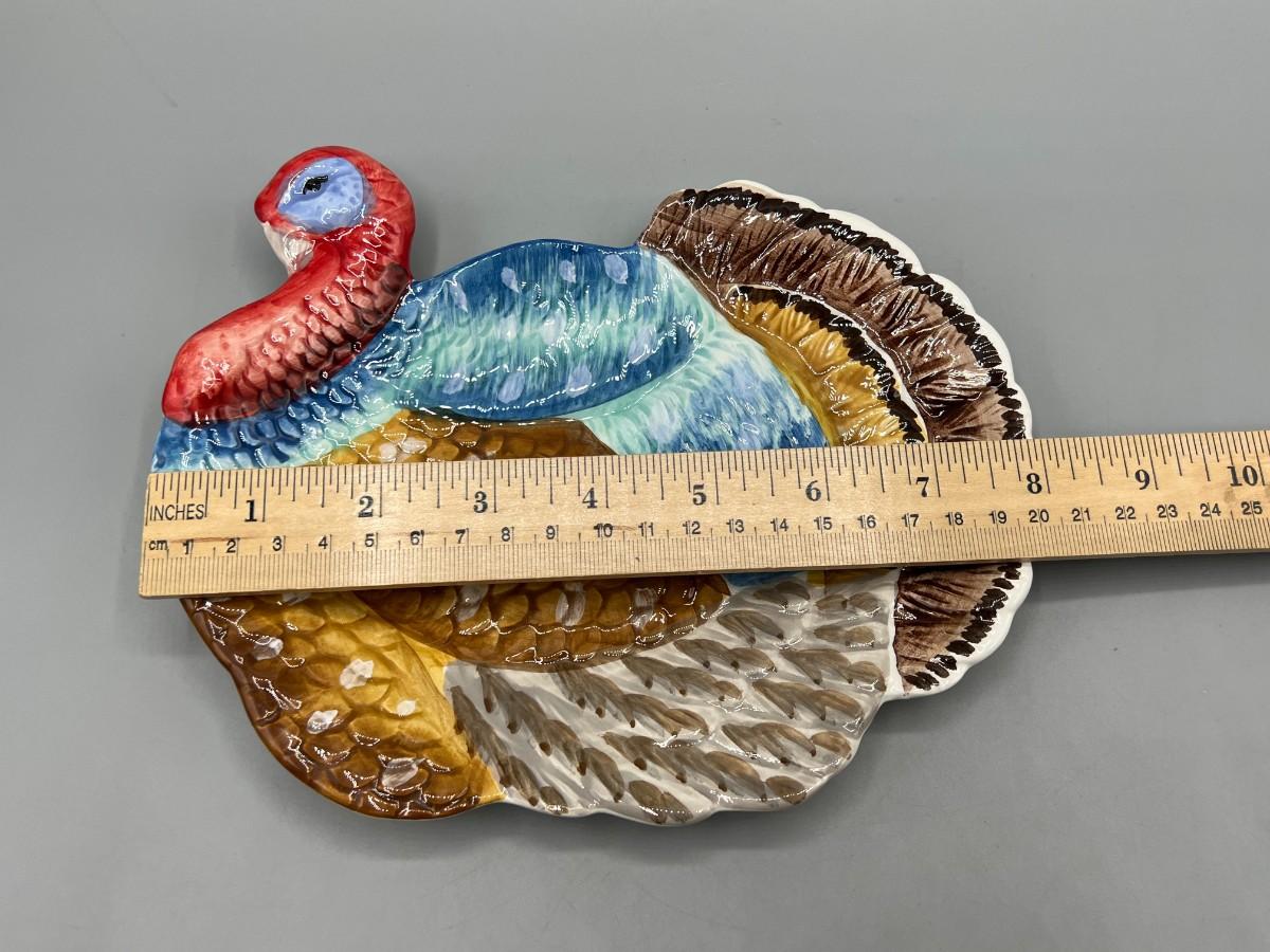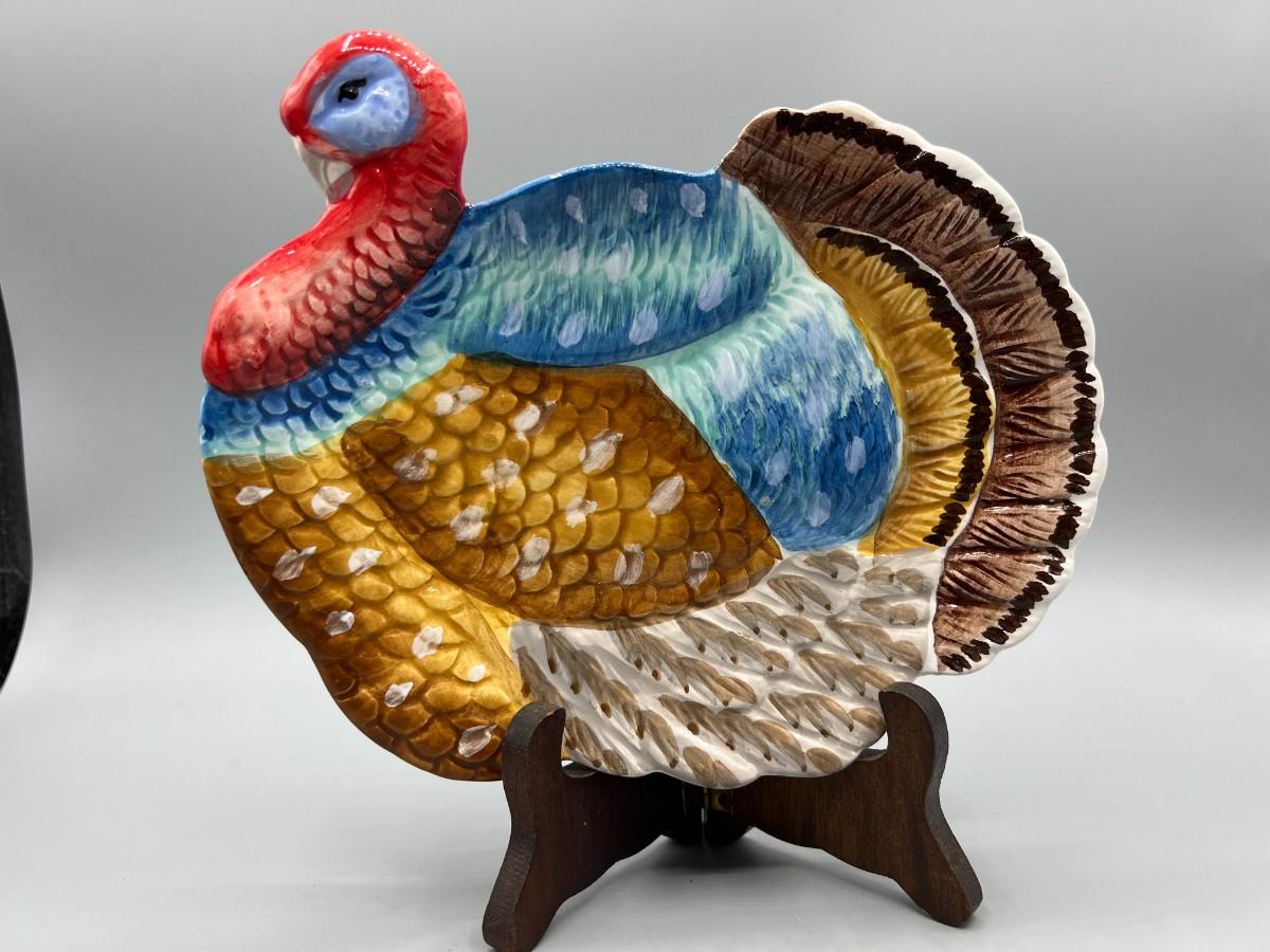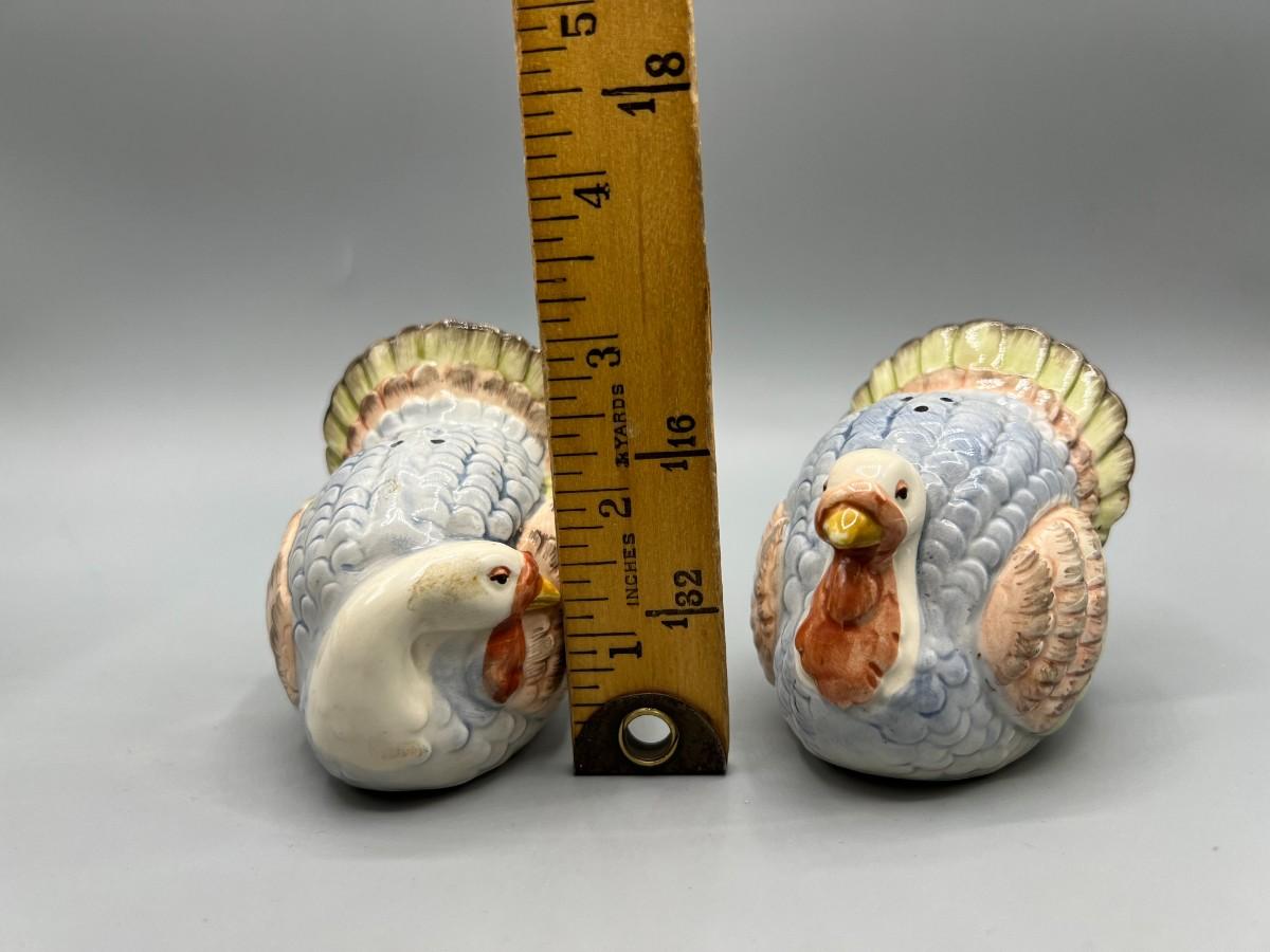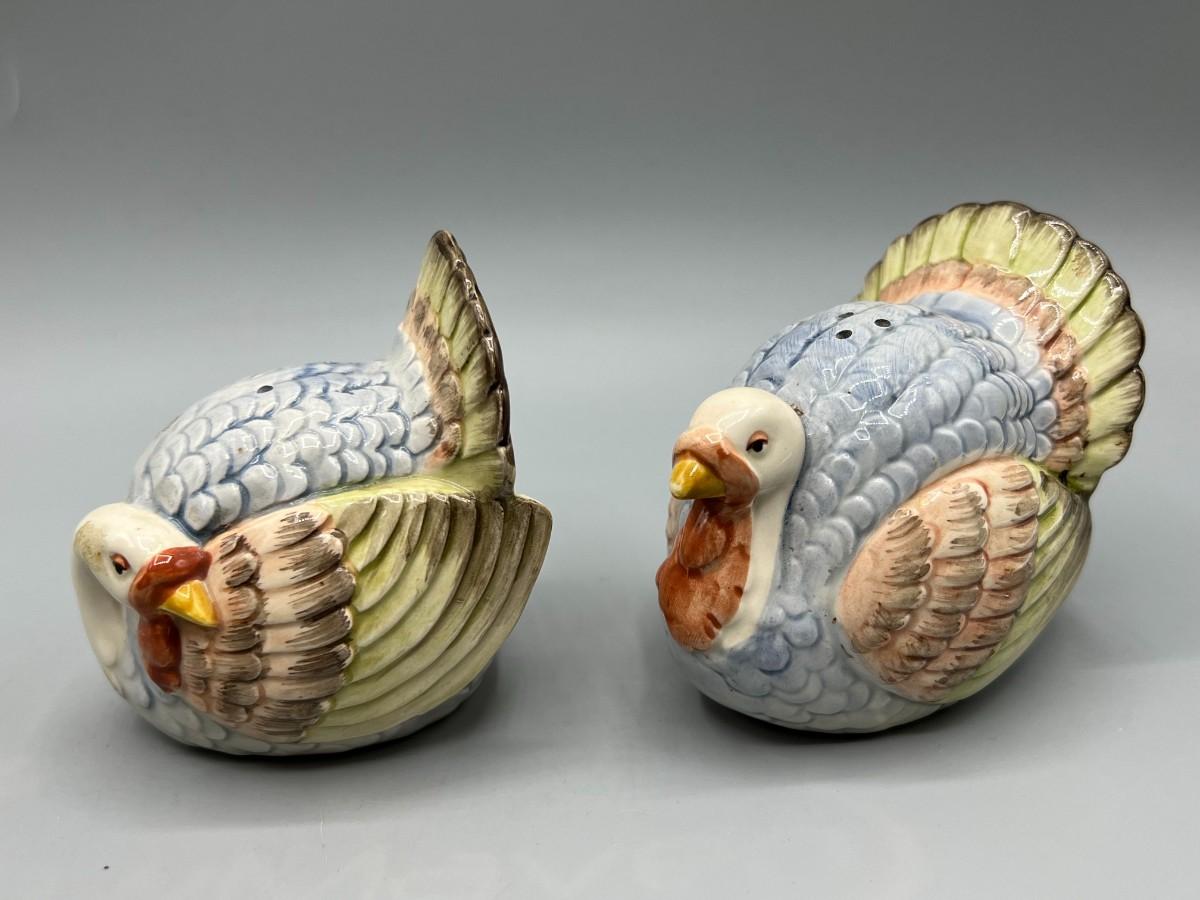 Lot of Thanksgiving Wild Turkey Salt & Pepper Shakers and Decorative Ceramic Plate, there is some light wear to the salt & pepper shakers, but there is no significant damage to any of the pieces and is in good useable condition. Check pictures for more details and for sizing.