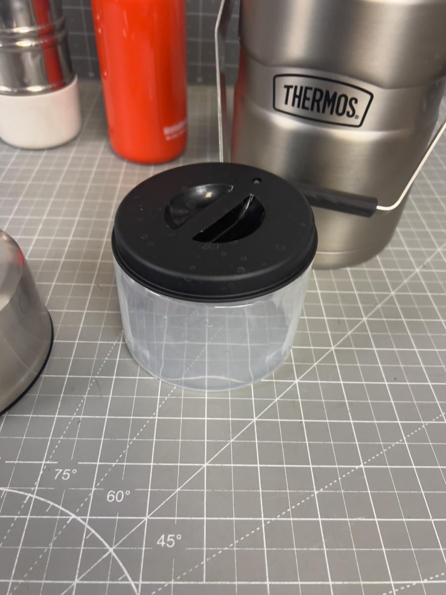 Used and Still Decent Usable.. The Big Thermos is for 2 smaller hot soups or Cold Small Salads.
