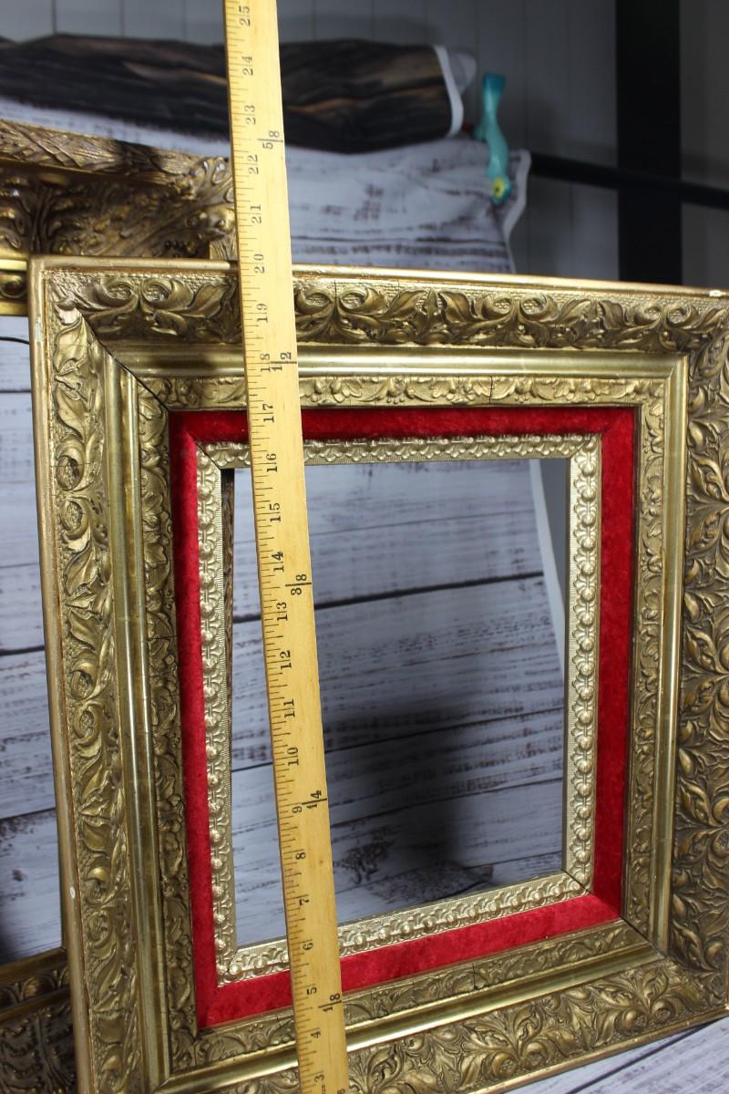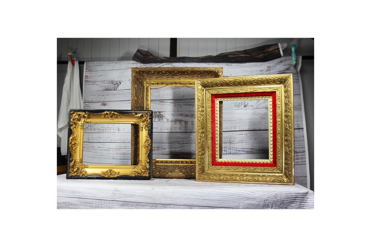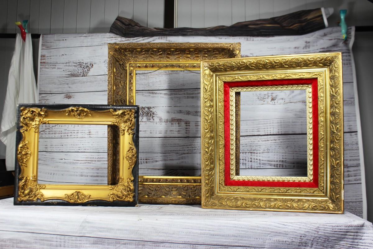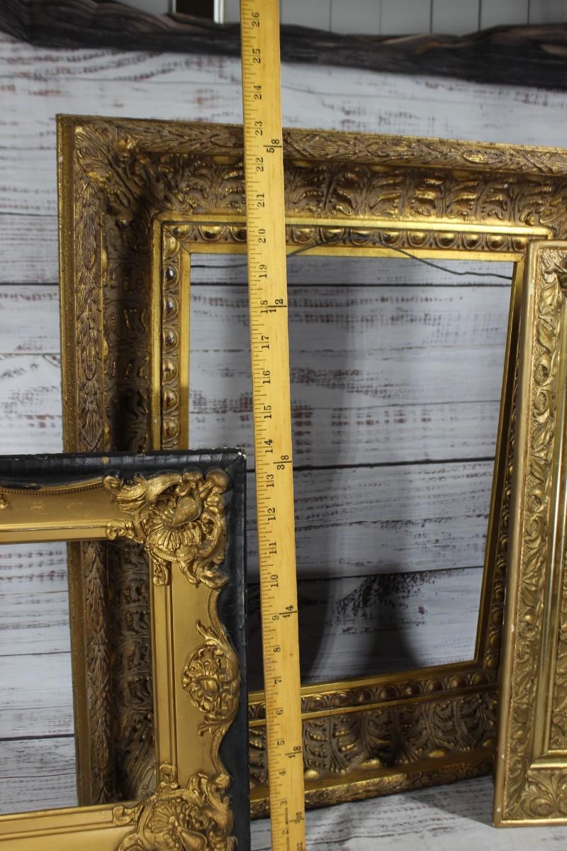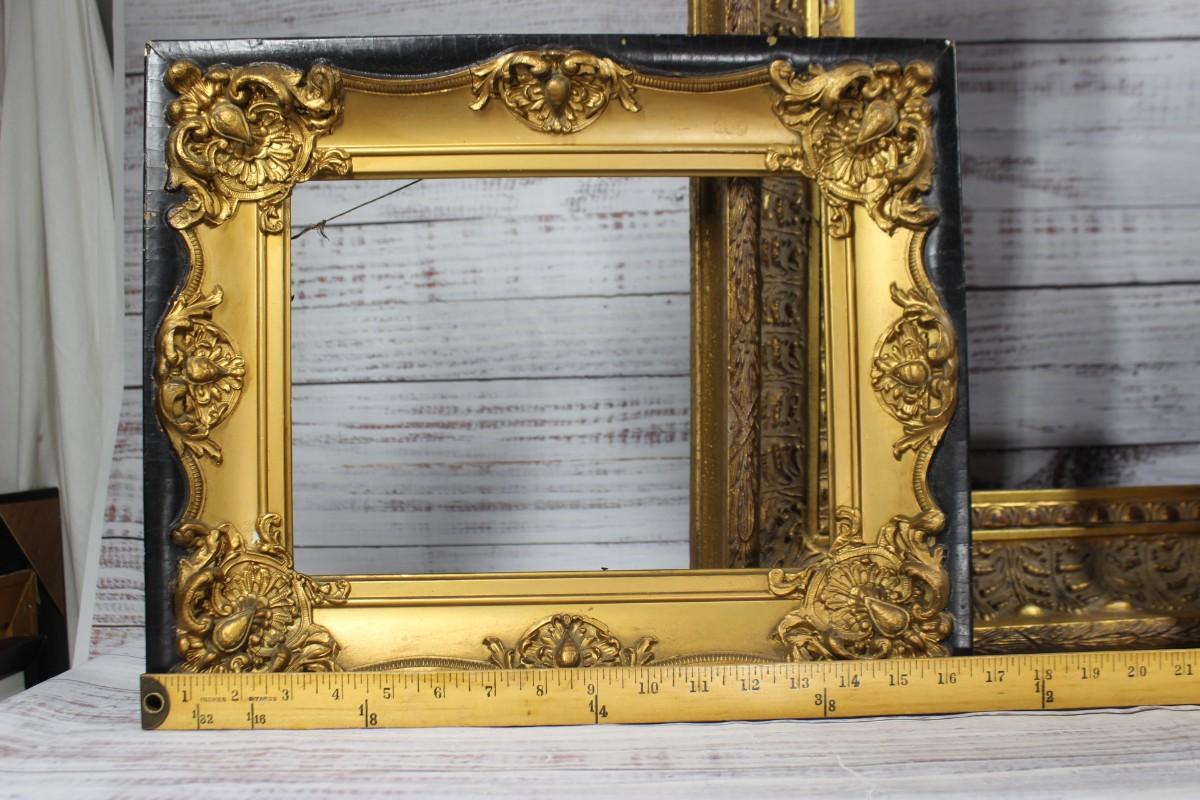 Lot of Thick Gold Trim Art Photo Frames, there are some chips to one of the frames, but there is no other significant damage to any of the frames and is in good usable condition. Check pictures for more details and for sizing.