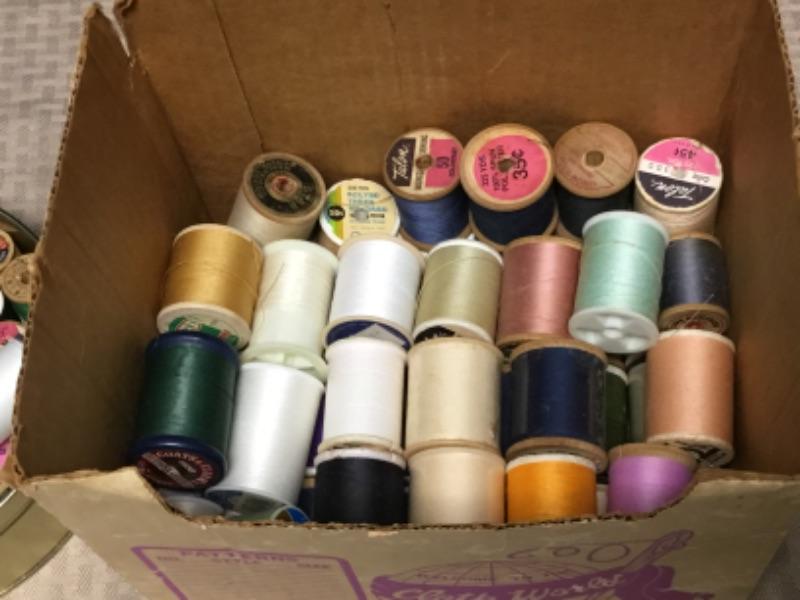 Mixed lot of sewing thread. Different colors and types.