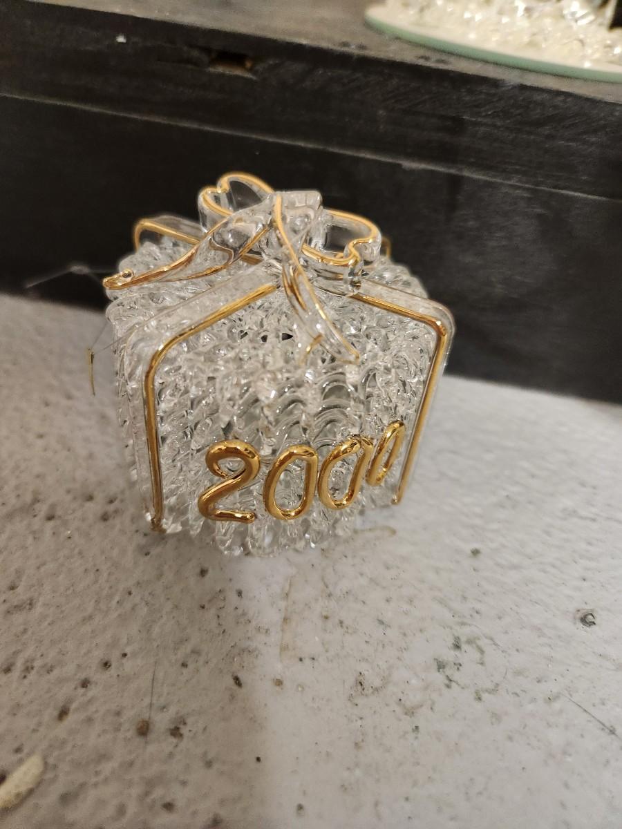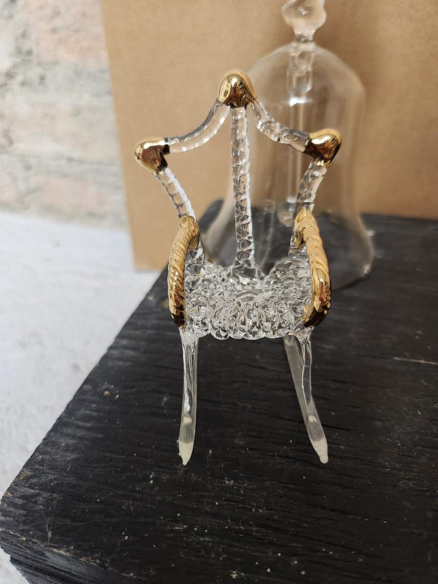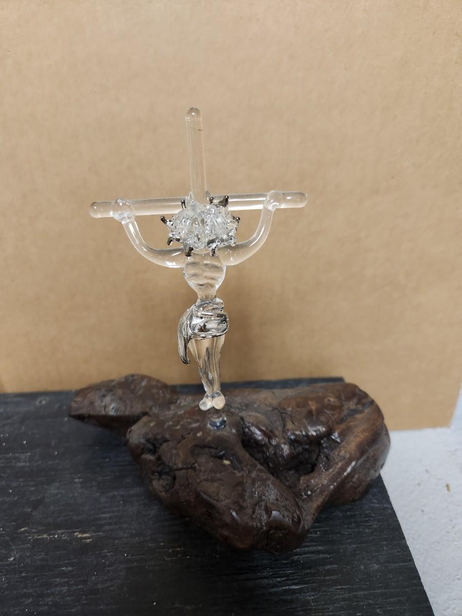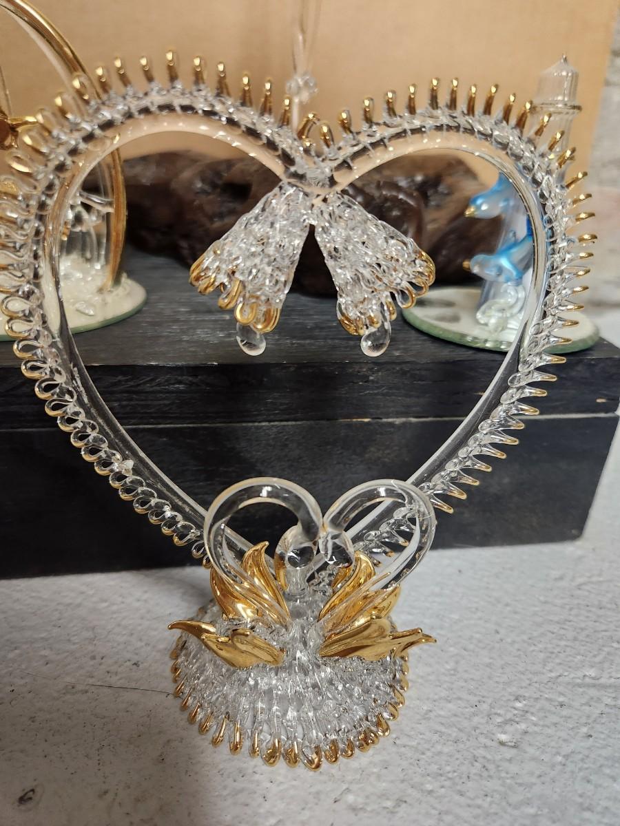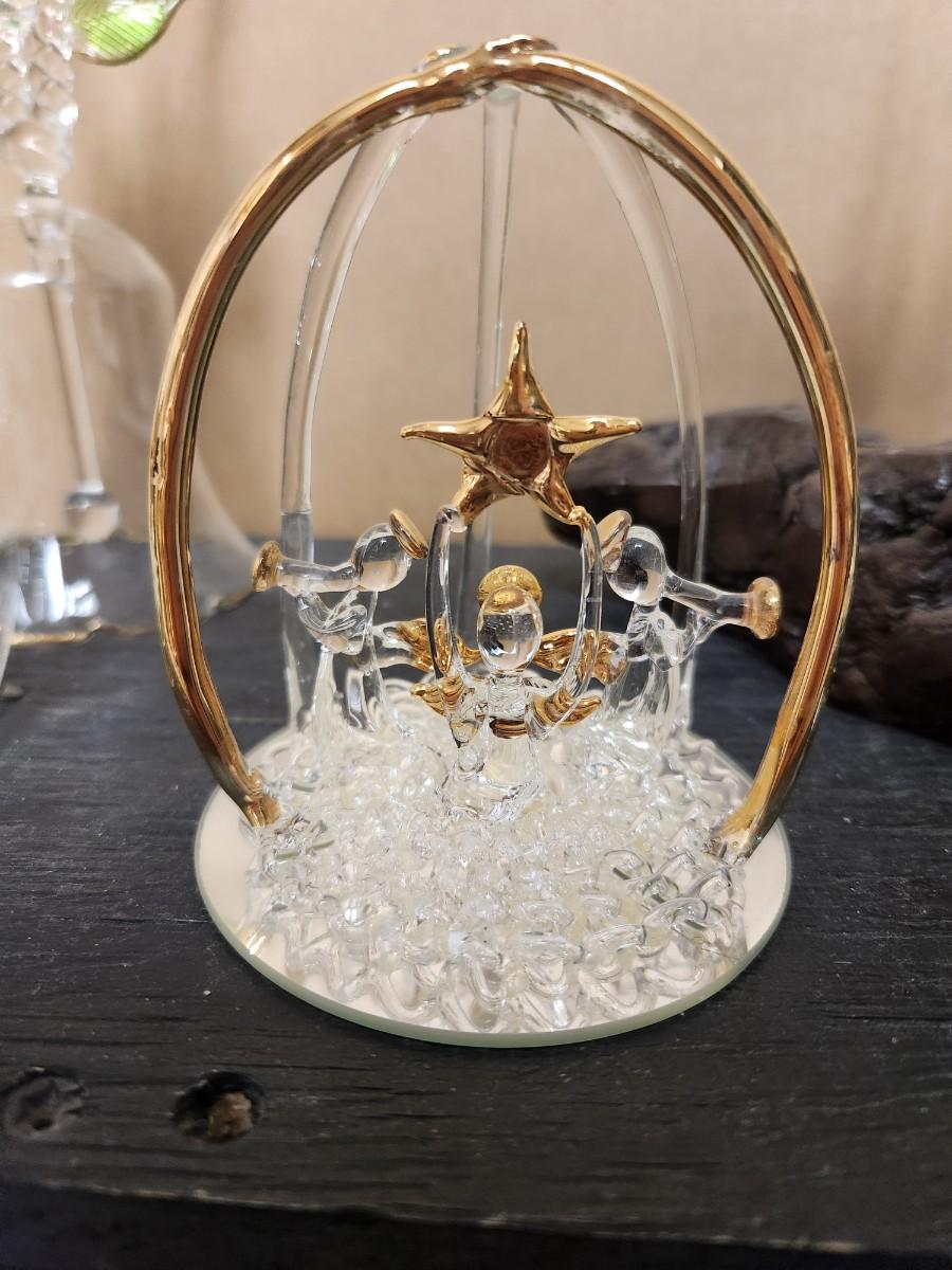 This lot of threaded glass includes a glass bell, a nativity, a dolphin lighthouse and other items