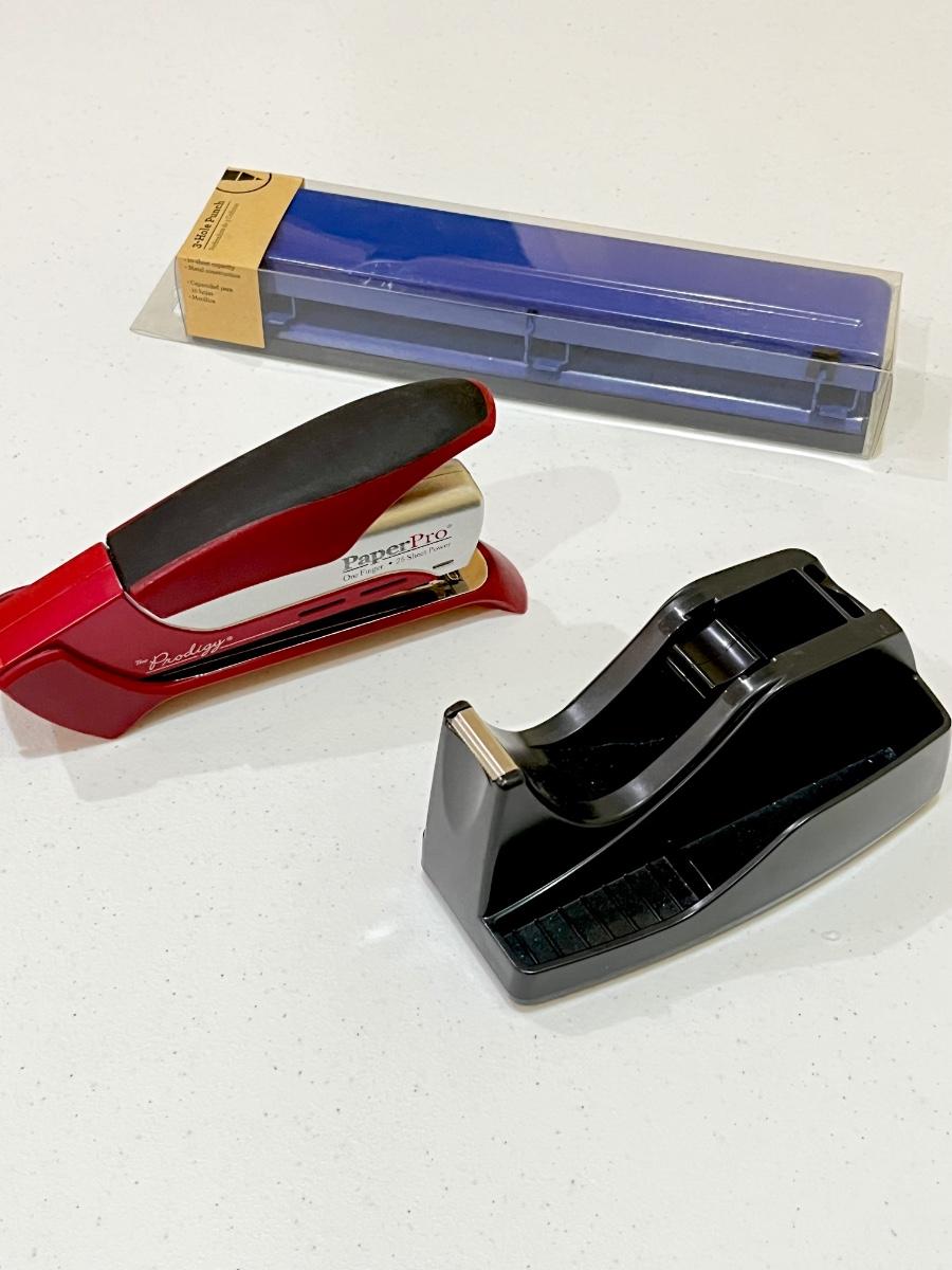 Includes = 3- hole punch ~ Prodigy stapler ~ Tape dispenser