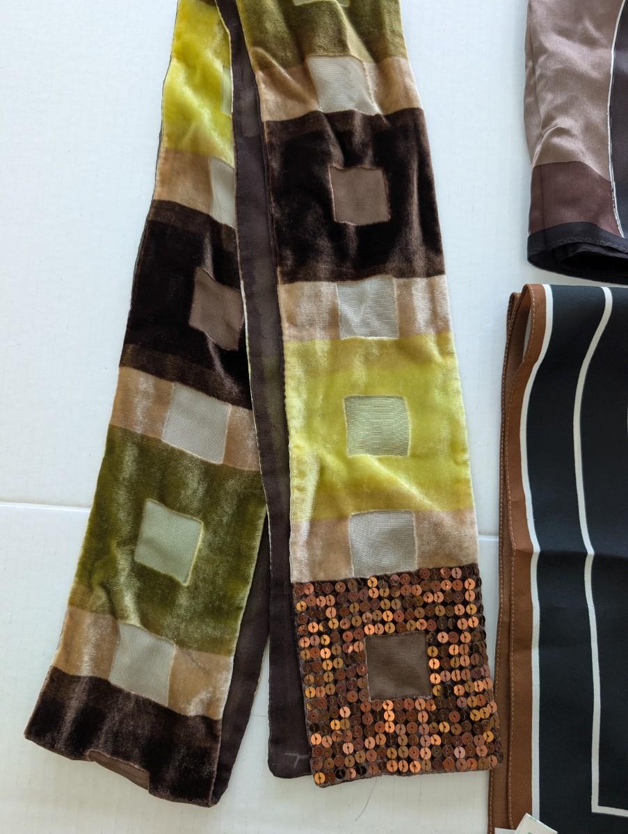 Anne Klein, silk scarf, polyester scarves, fashion accessories, brown scarf lot, black scarf lot