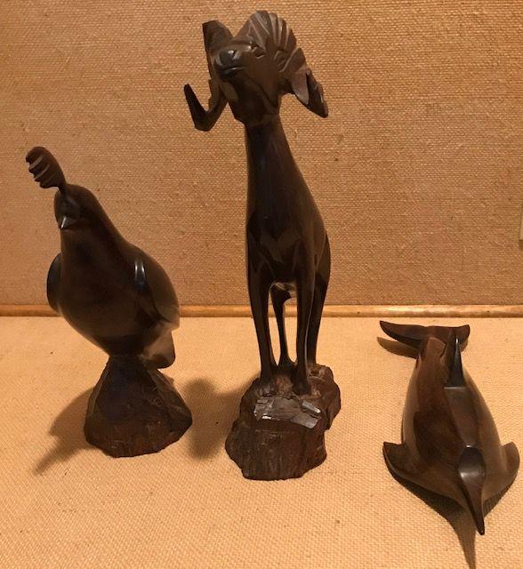Ram, dolphin, quail. Unsigned. Very good condition.