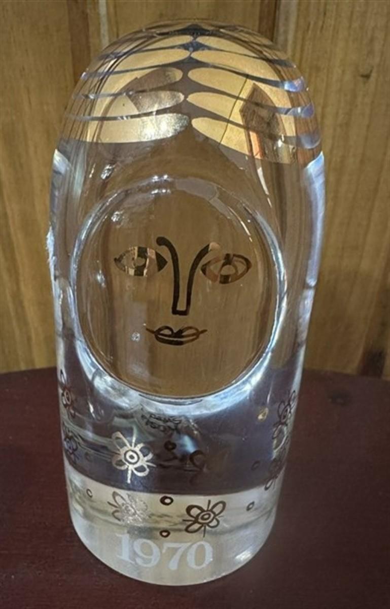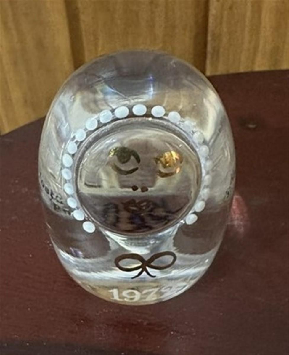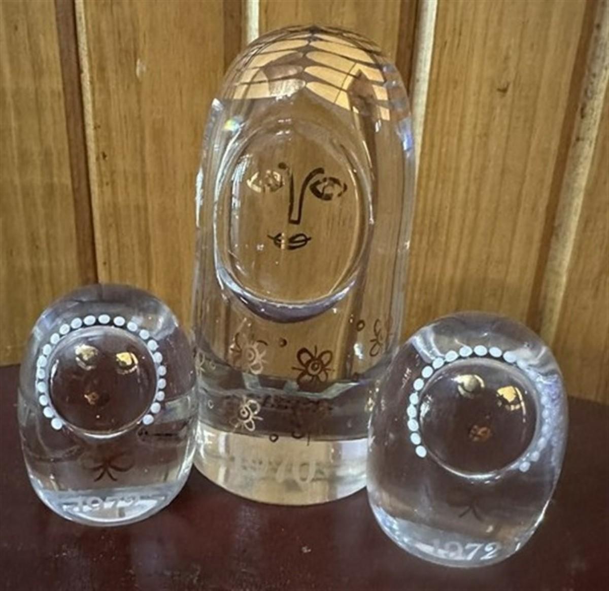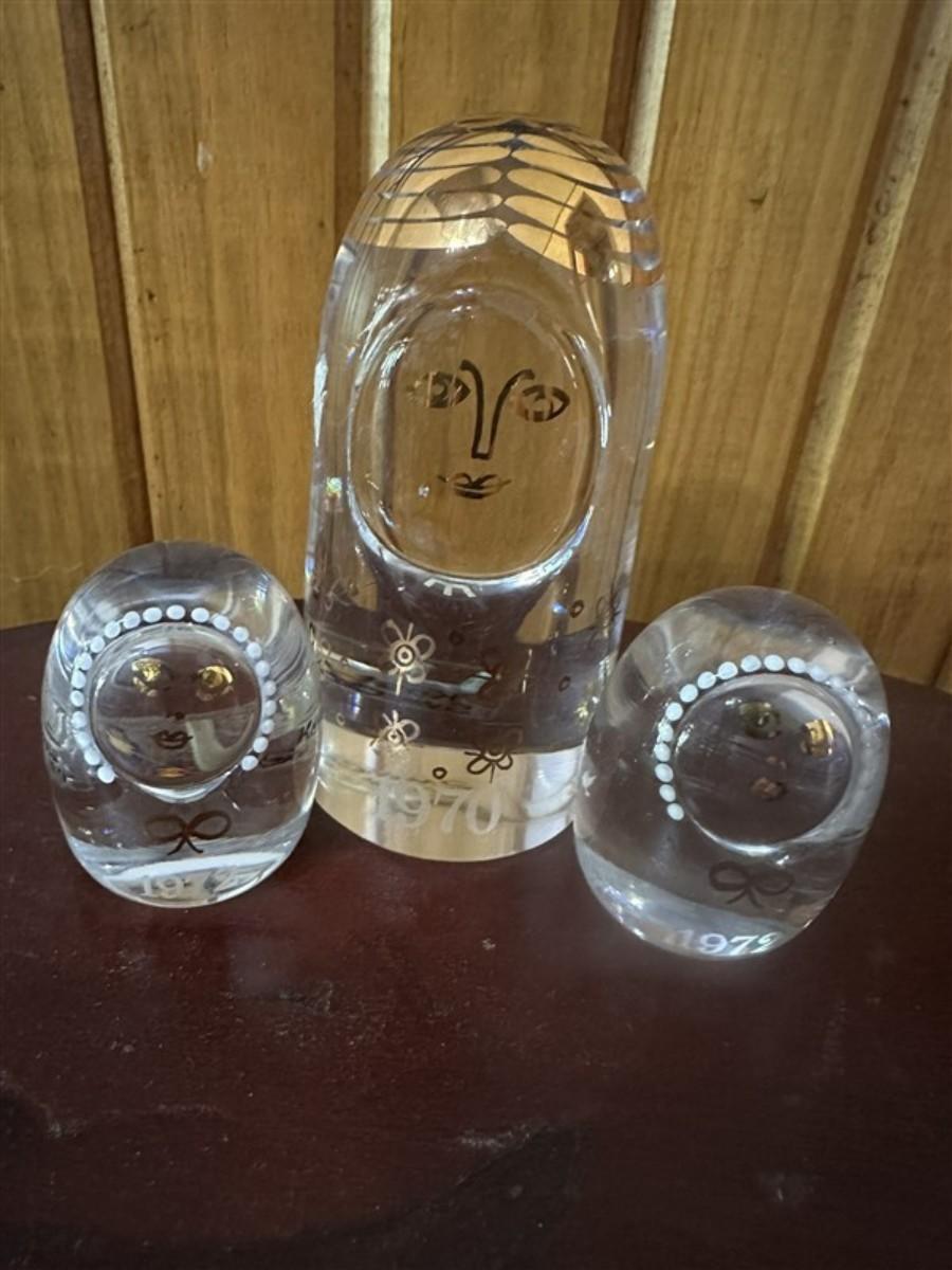 145 Lot of Three Etched Signed Casta Sweden Crystal Nesting Doll Style Figurines
