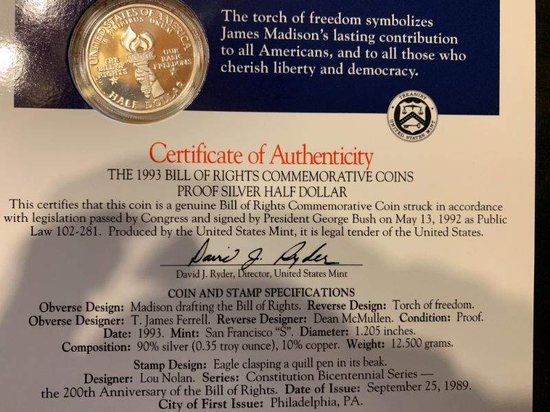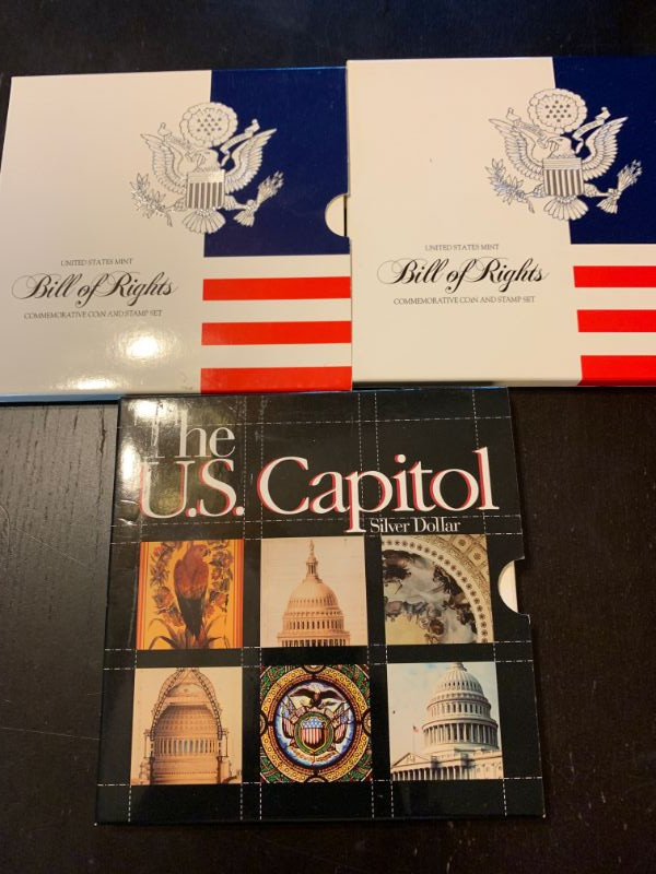 Lot of Three Silver Coin Sets - Bill of Rights is half dollar and stamp
