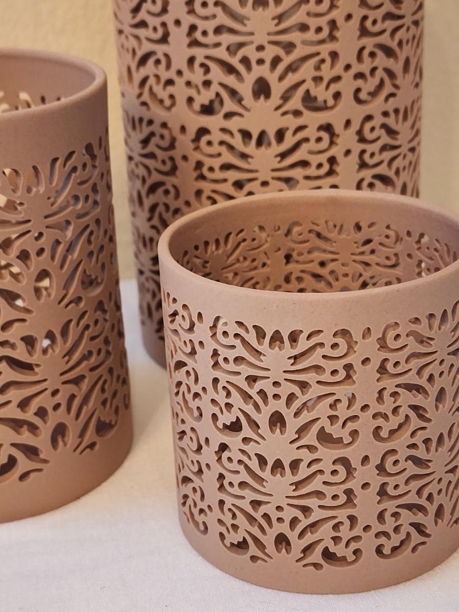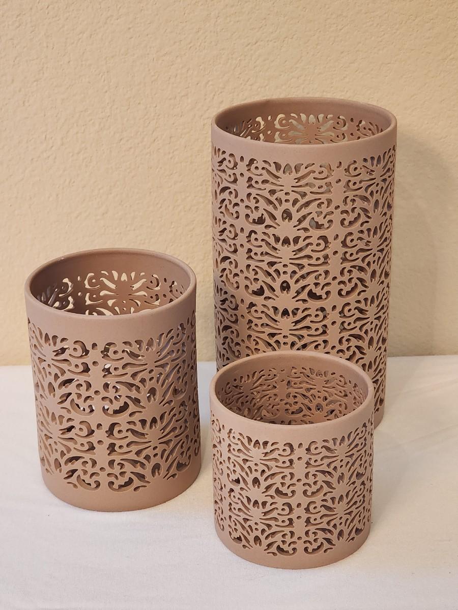 Lot of Three Taupe Porcelain Bisque Luminaria Candleholders