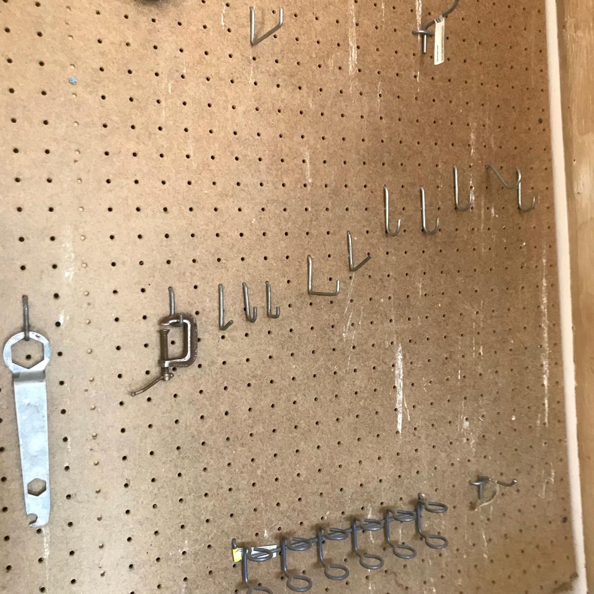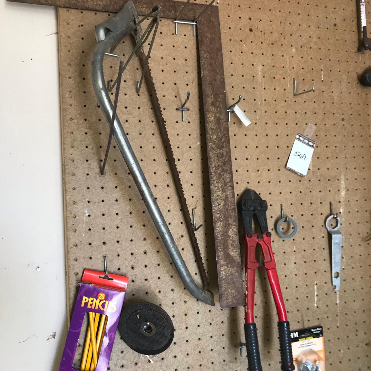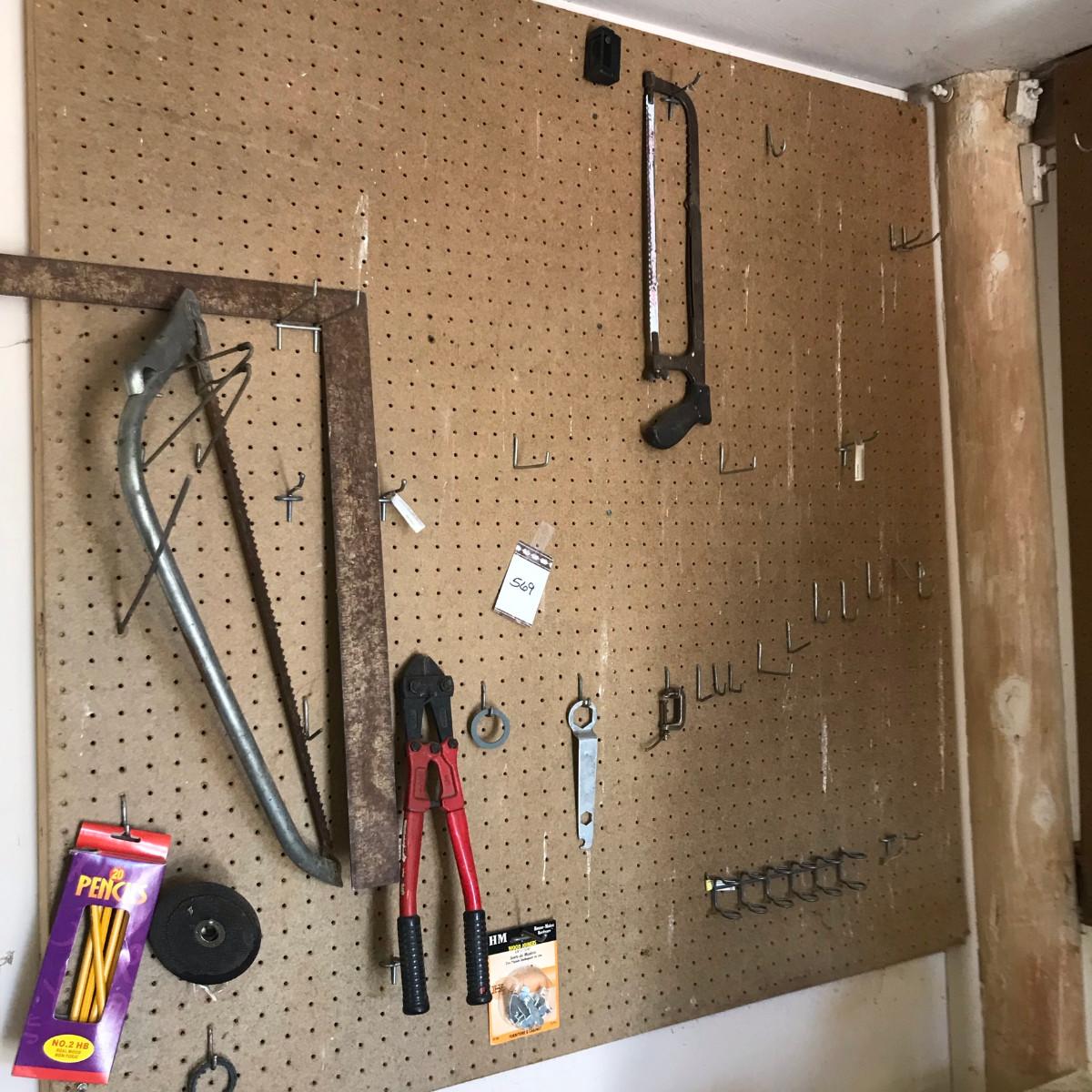 You are buying the saws, bolt cutters, square, and peg hooks! Peg board stays with building.