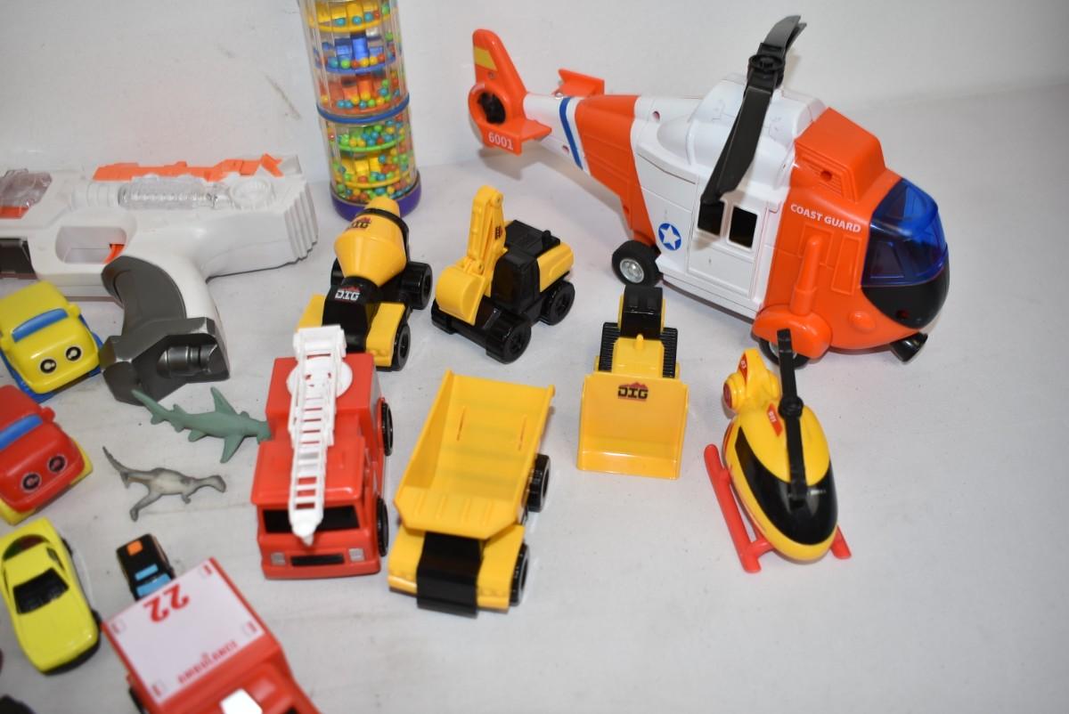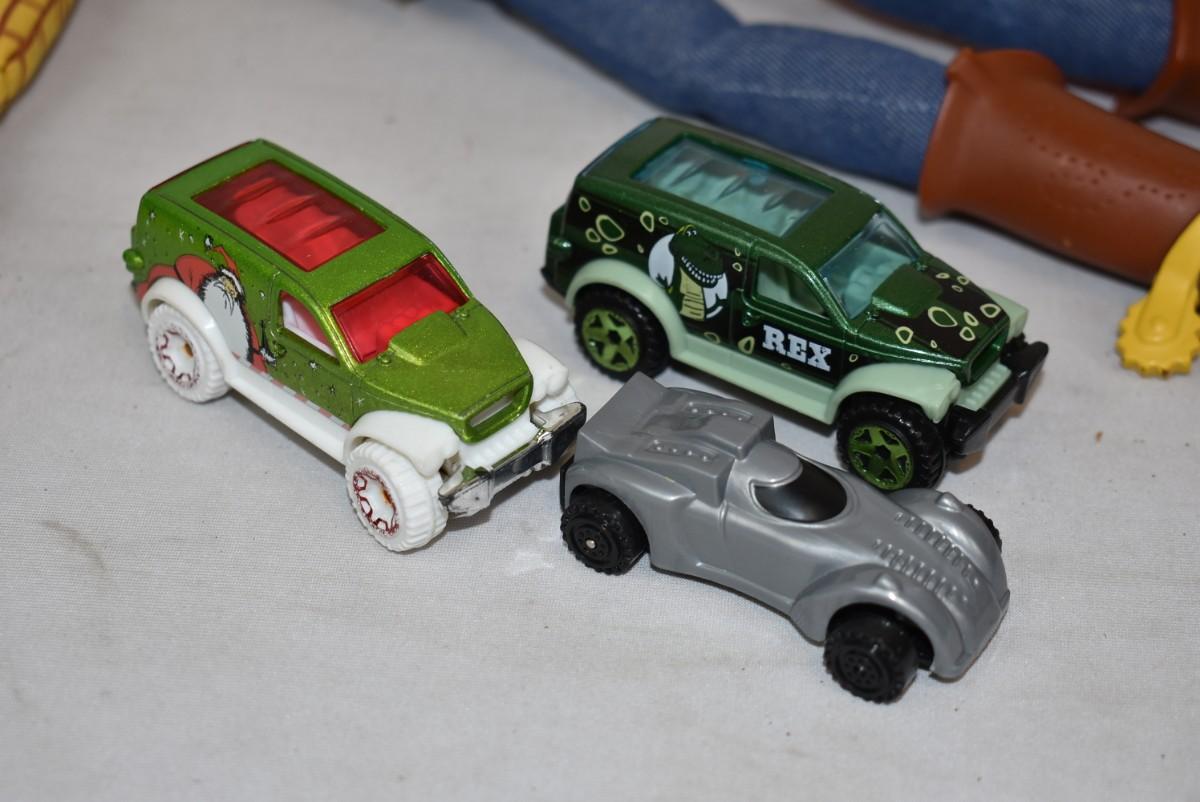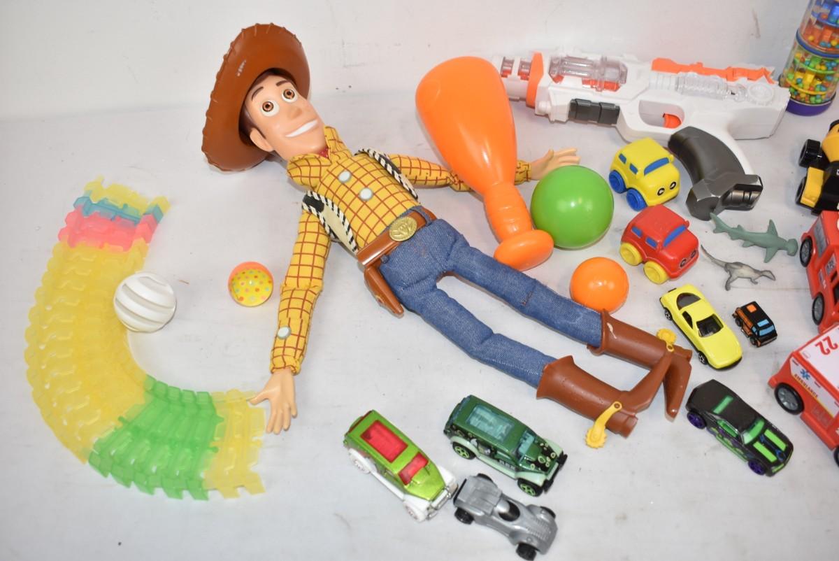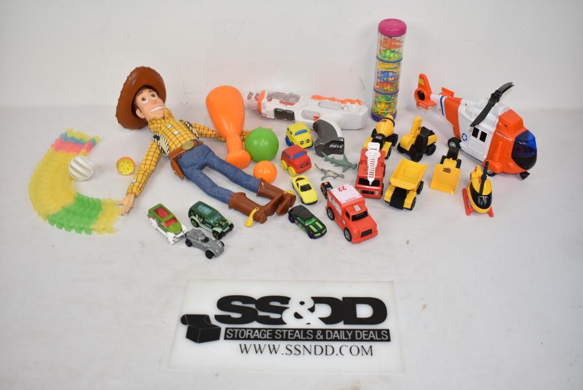 Lot of Toys: Woody, DIG Construction, Helicopters, Ray Gun, Cars, Balls