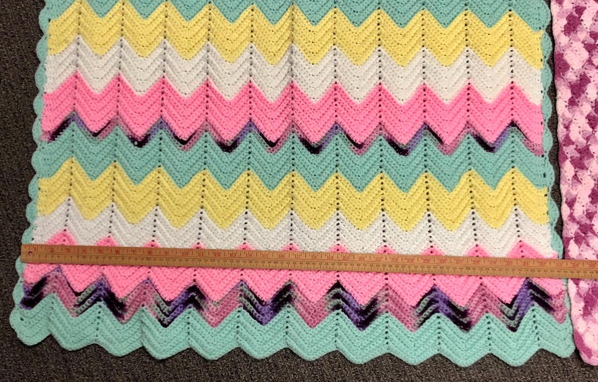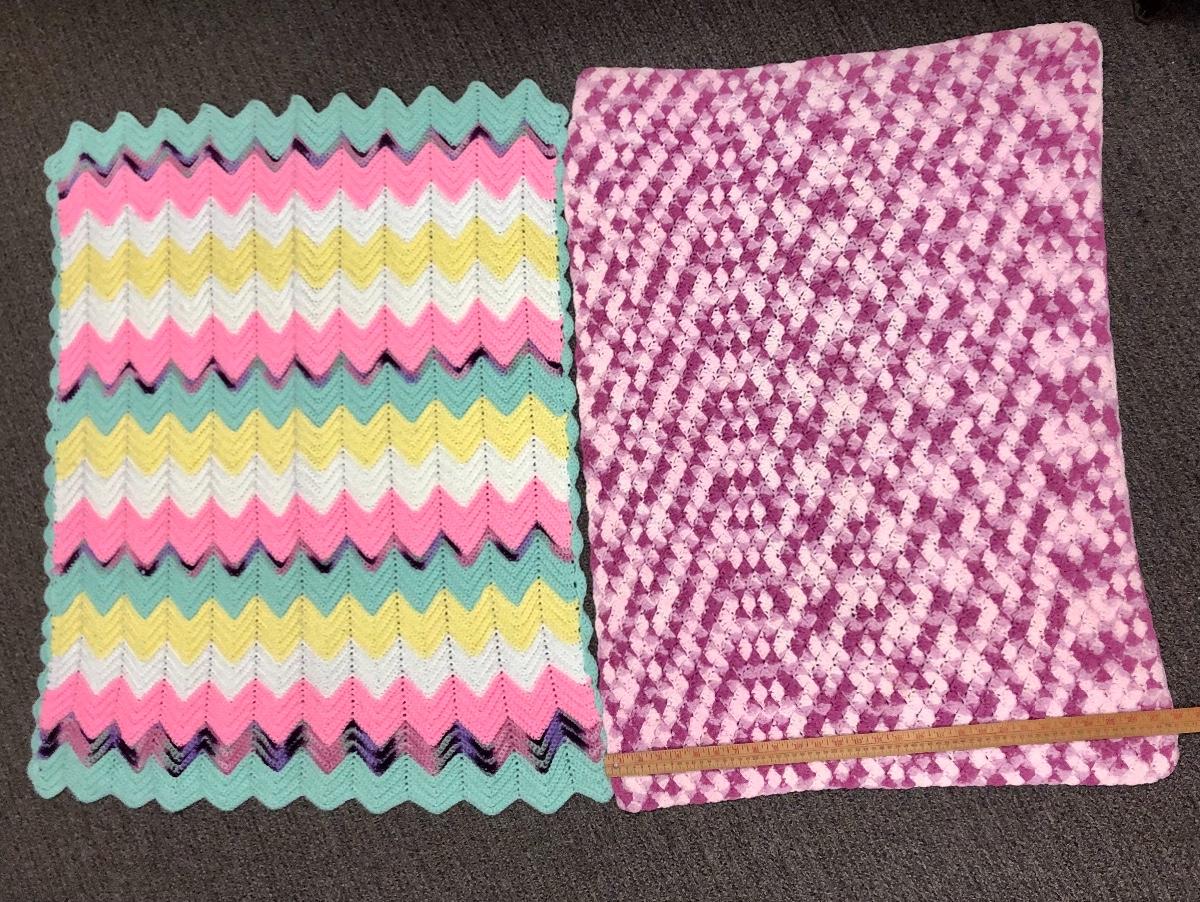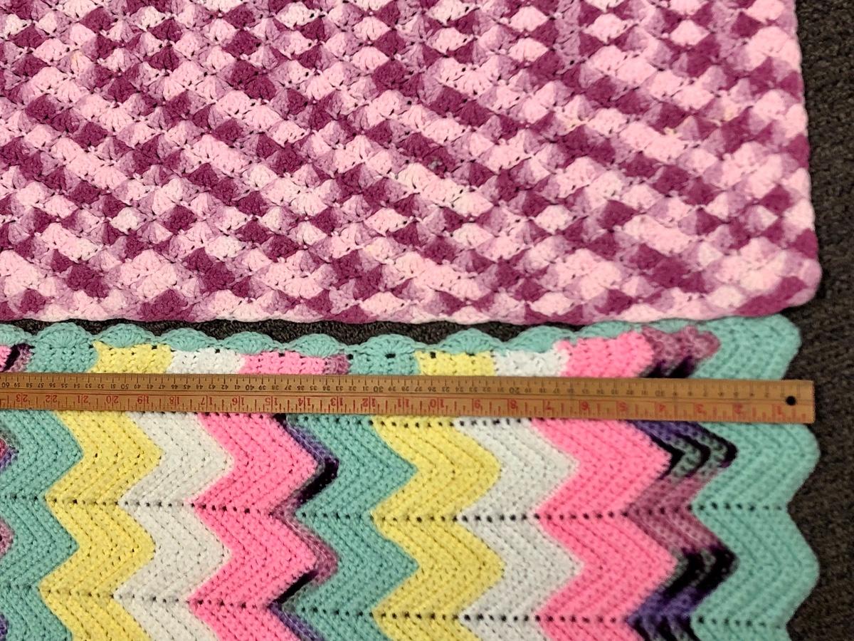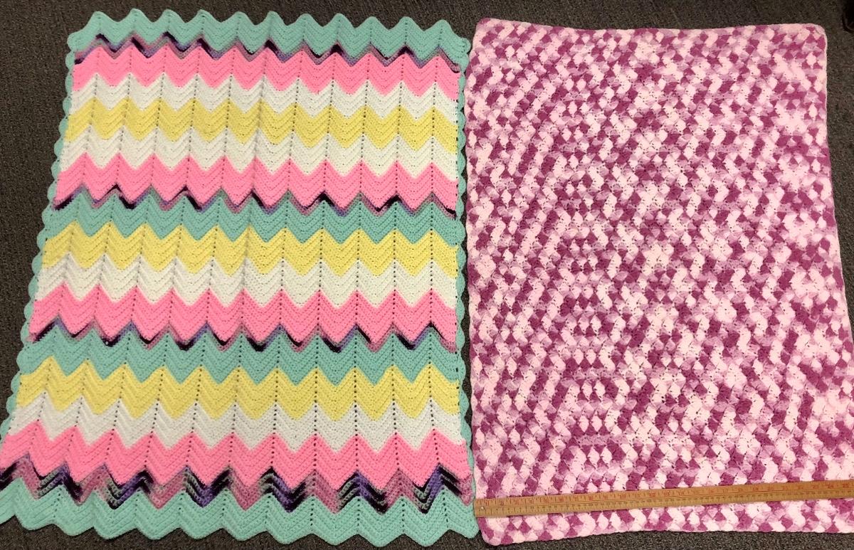 Lot of two Afghan baby blankets, multicolored, handmade