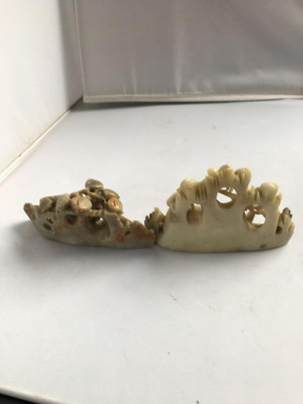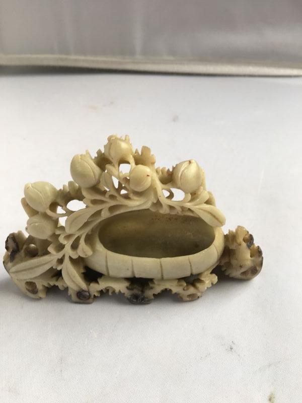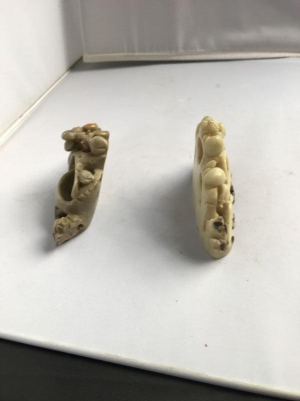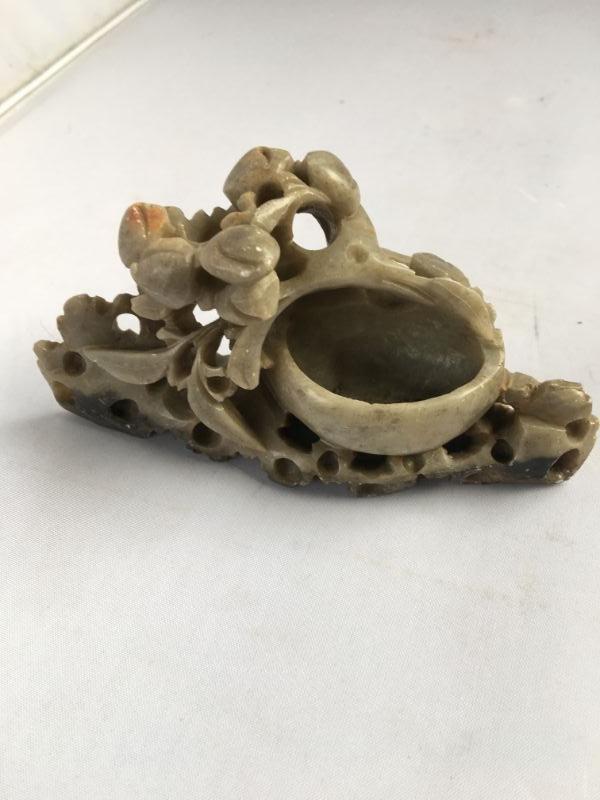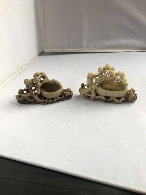 Lot of TWO Antique Hand Carved Petite Soapstone Inkwells