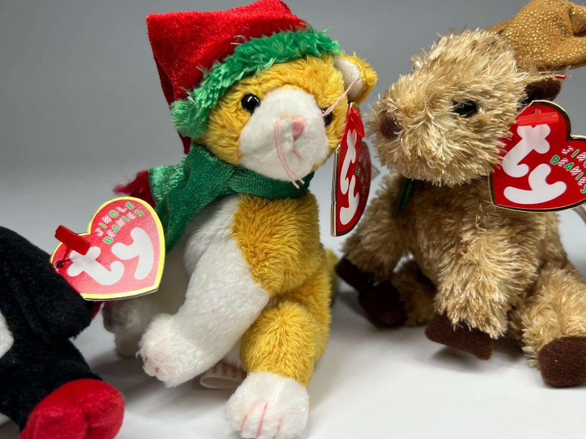 Lot of Ty Beanie Babies Jingle Beanies Holiday Christmas Animals Penguin, Cat, Dog & More with Tags