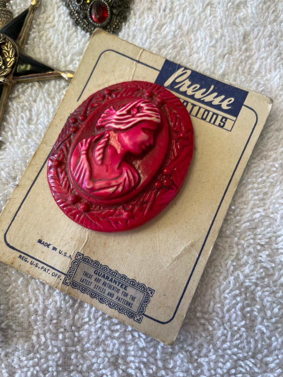The pin on card is cool! I like the patriotic eagle pendant. The shoe/sweater clip has some rhinestones missing.