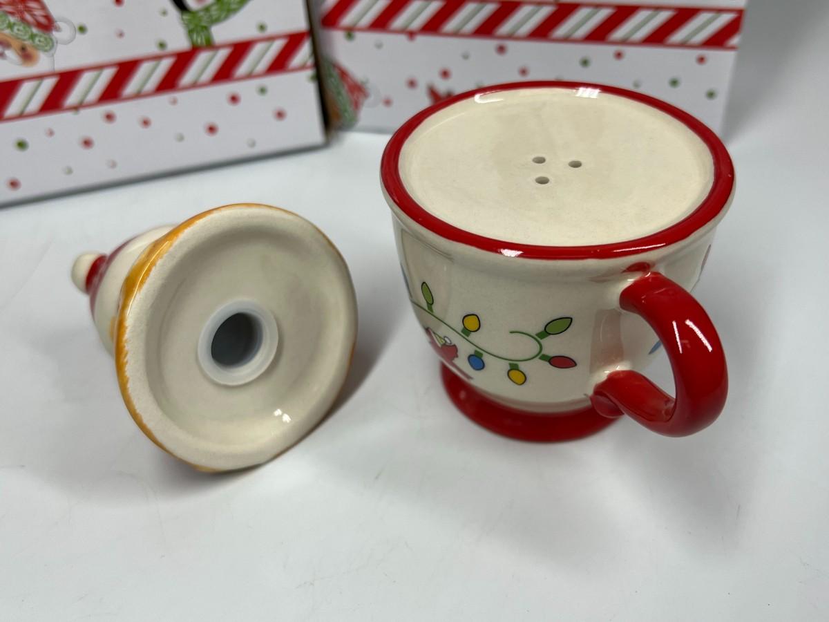 Lot of Unused Salt & Pepper Shaker Cute Christmas Holiday Tea Cup Characters Gingerbread Man, Penguin, Reindeer, & More