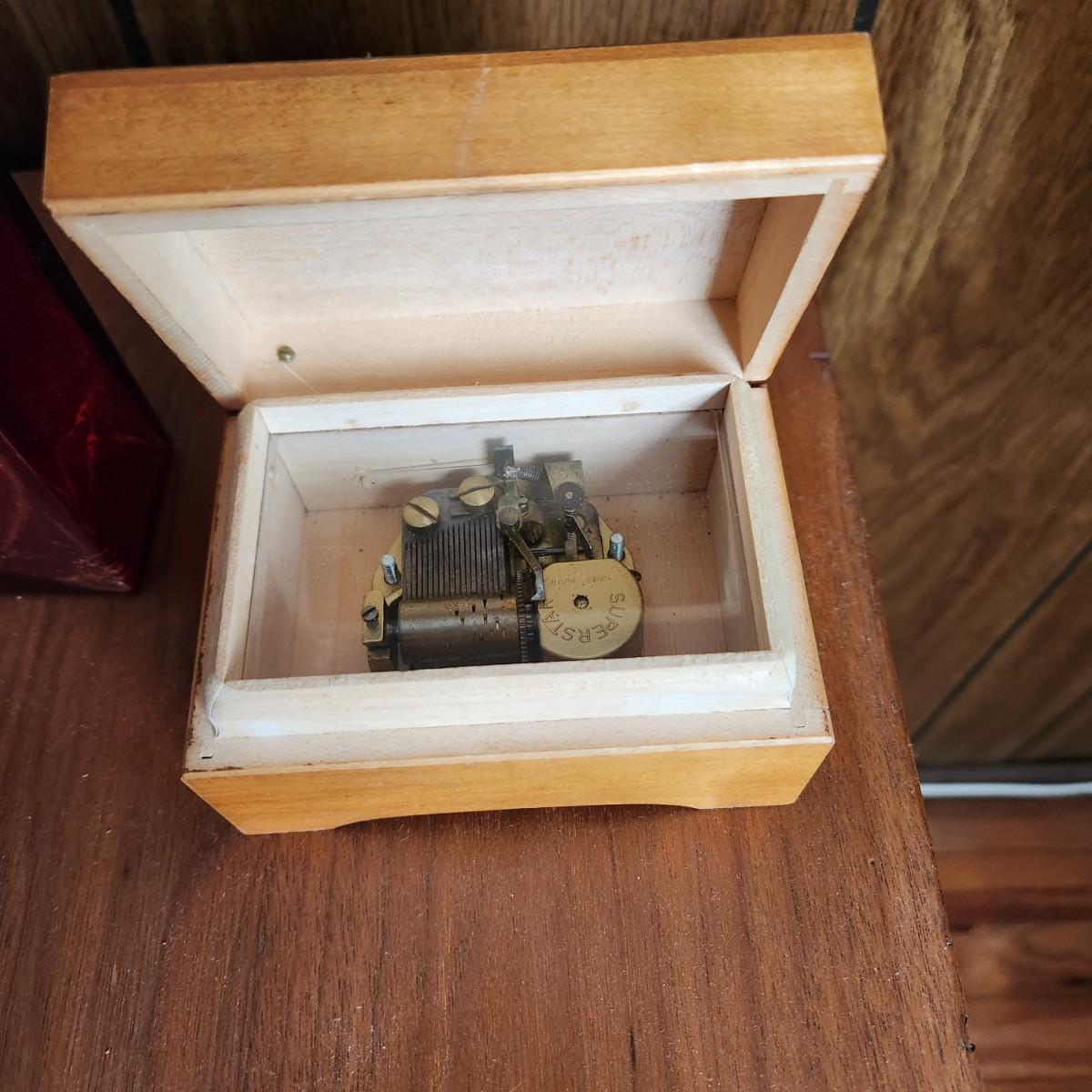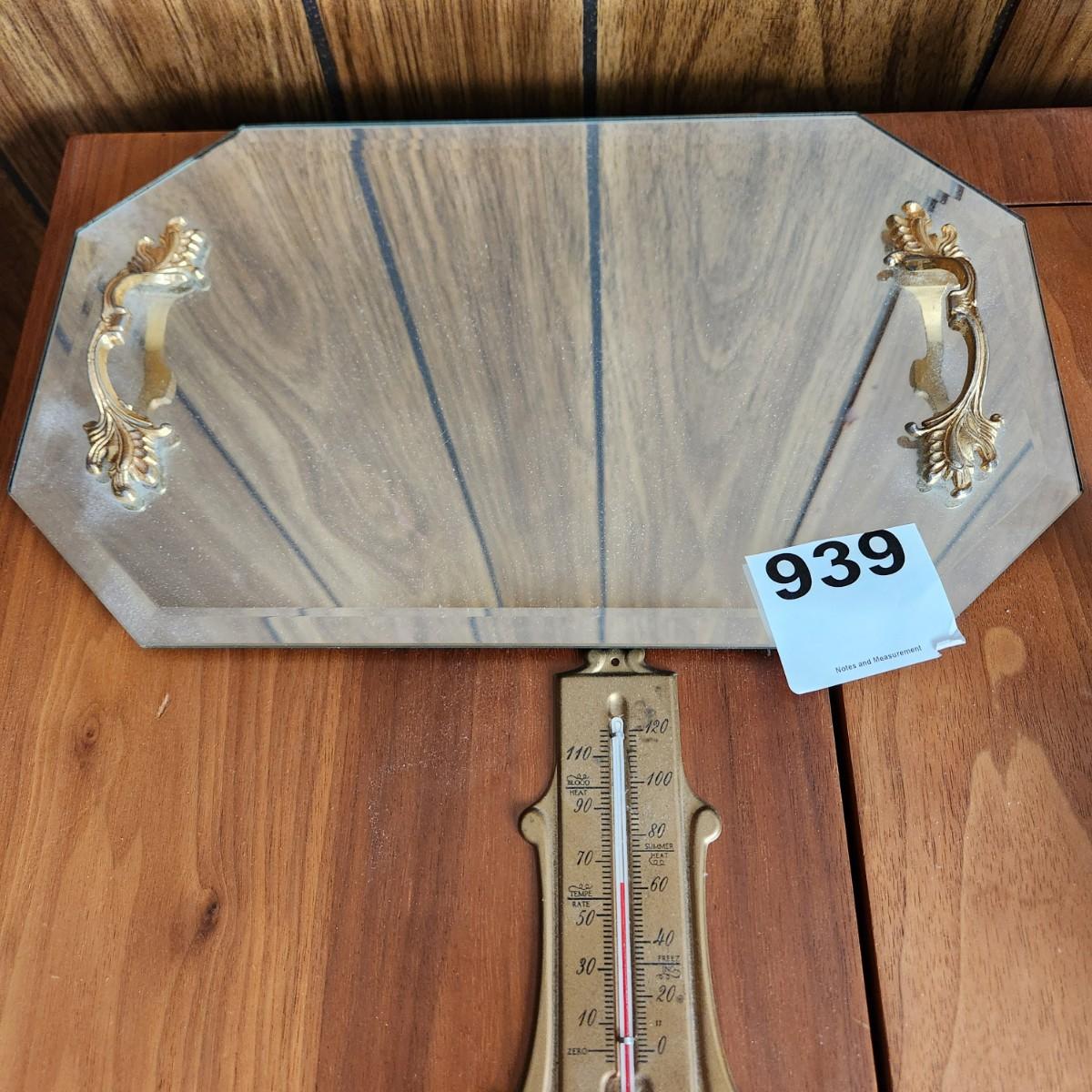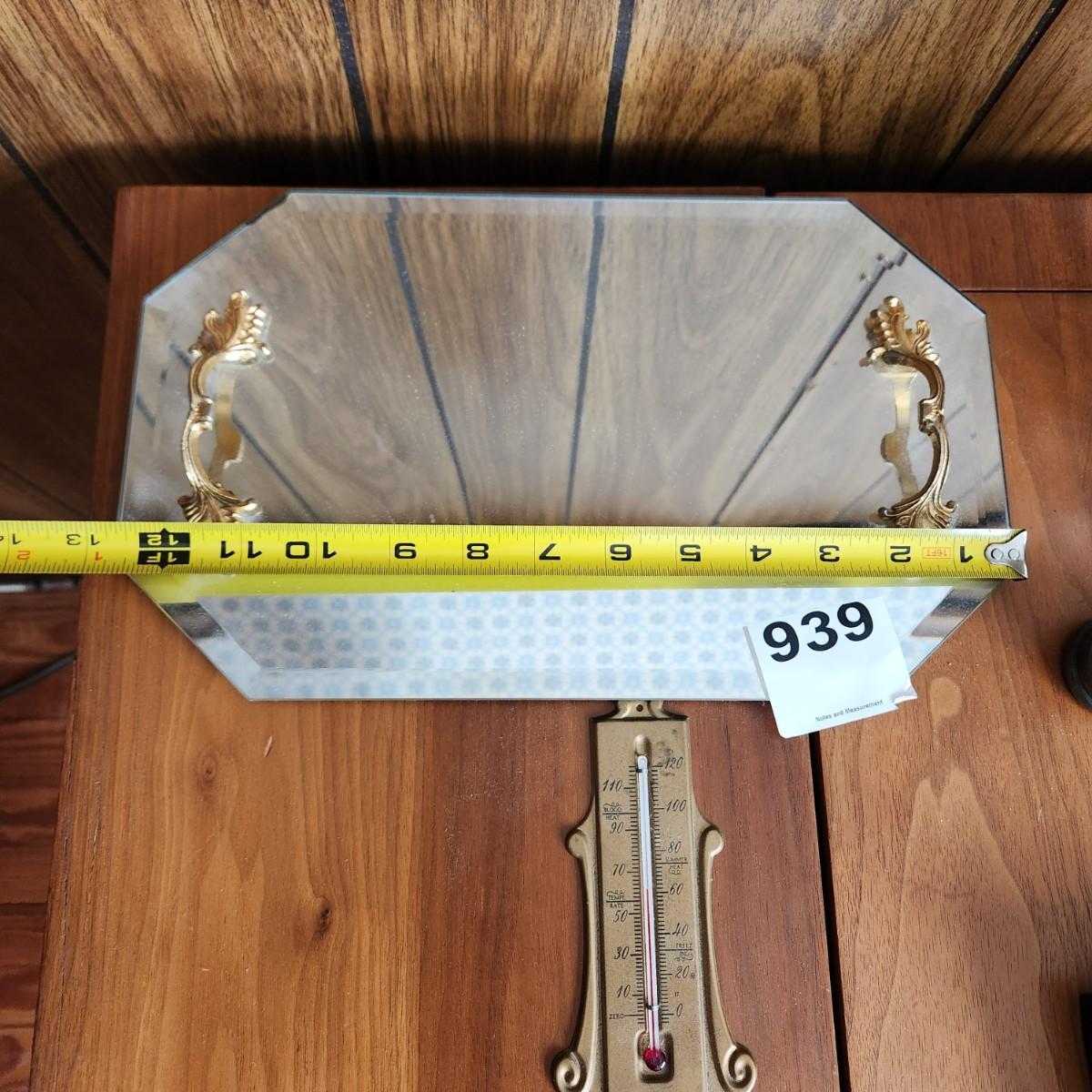 Mirror Trays, Easton Business Thermometer, MaxFactor Face Powder brush, Music box, mini oil lamp and more.