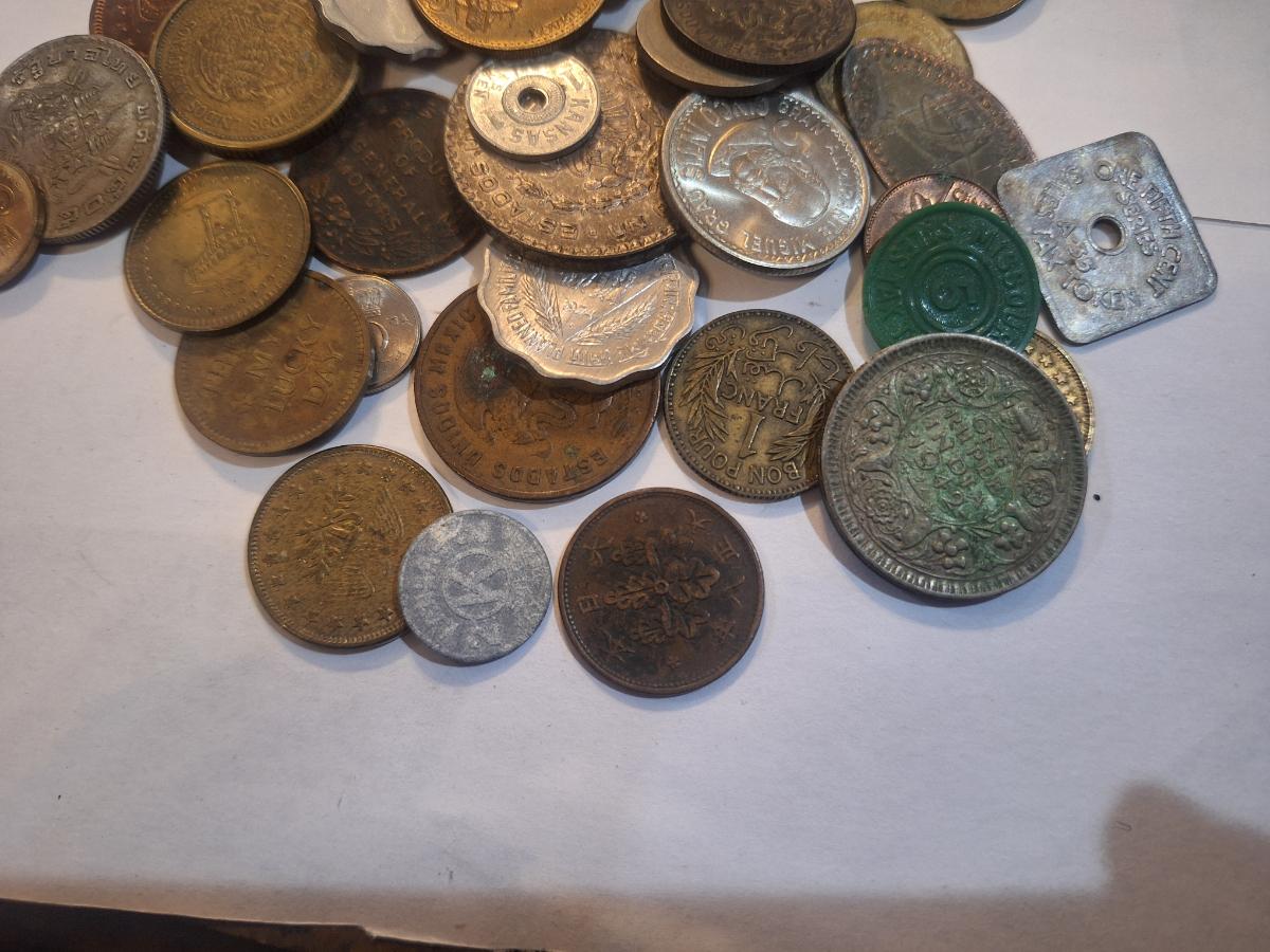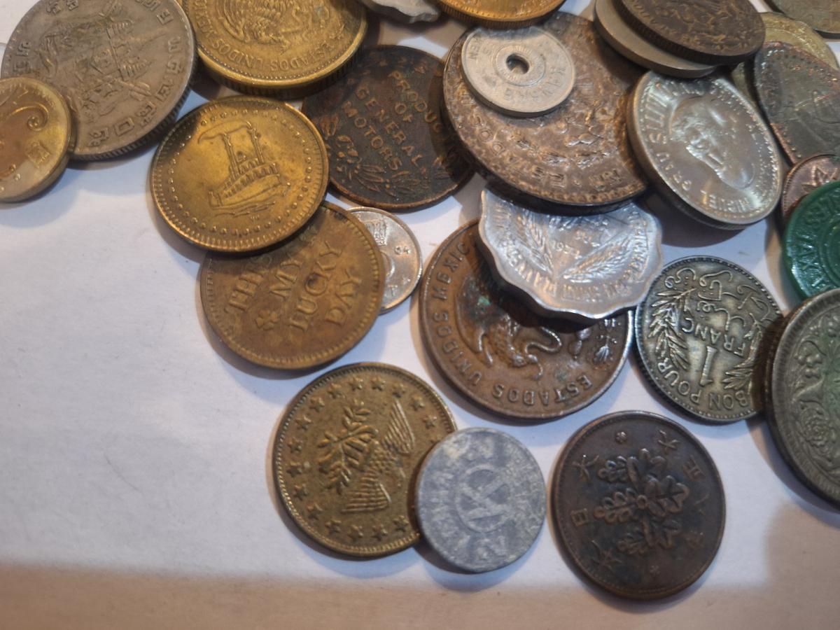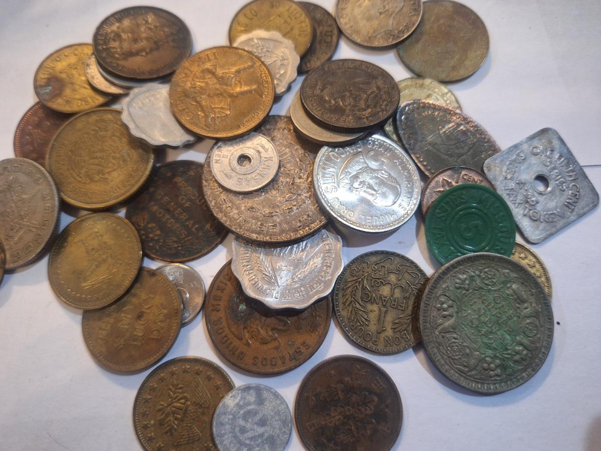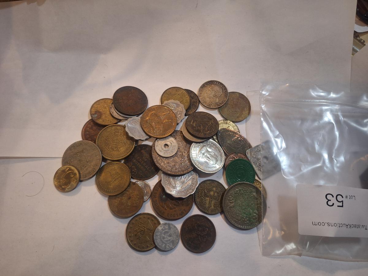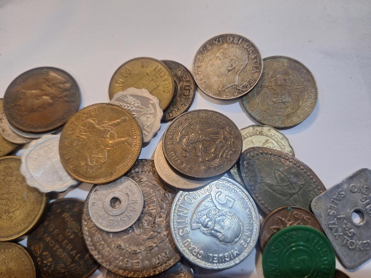 mage displays a bulk lot of various assorted foreign coins from around the world.