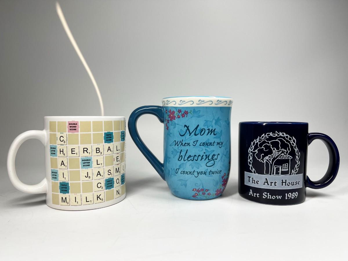 Lot of Various Ceramic Coffee Tea Mugs Scrabble, Mother's Day, & More