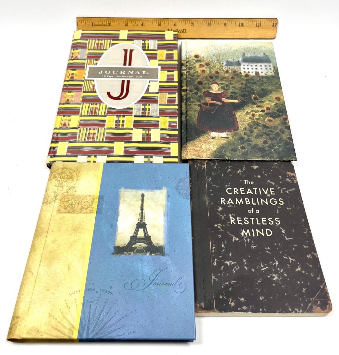 Set of 4 Blank Writing Journals Diary Notebooks. Lot of various covers and sizes of writing journals. All are unused.