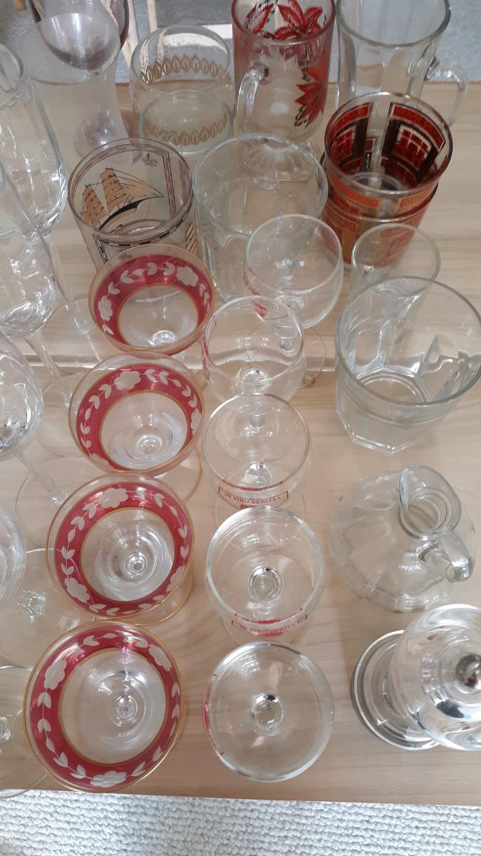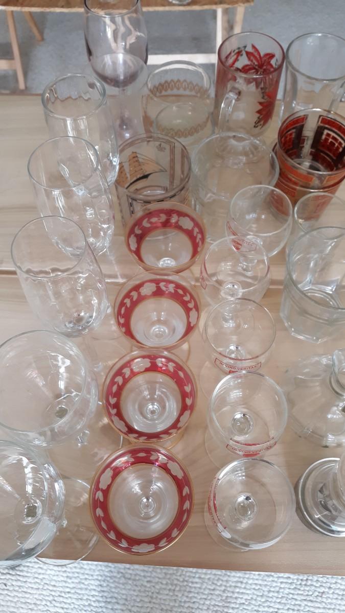 Lot of Various Glasses, Red Trimmed Glass and Other Items