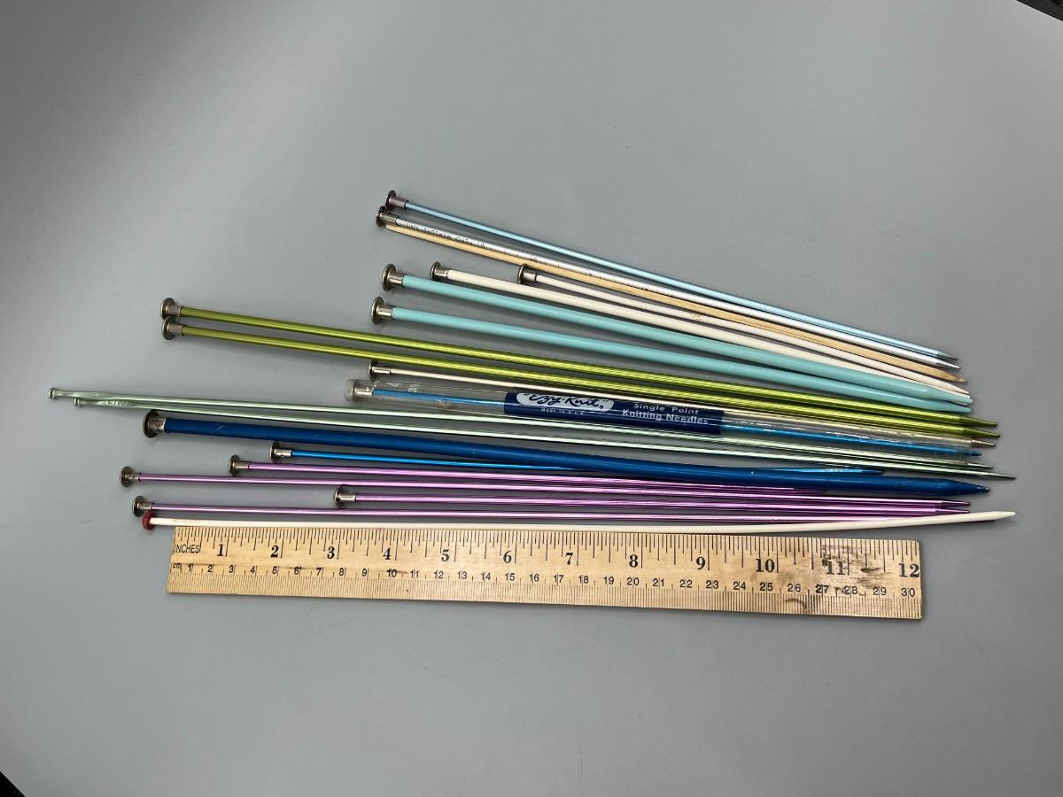Lot of Various Sized Metal Knitting Needles