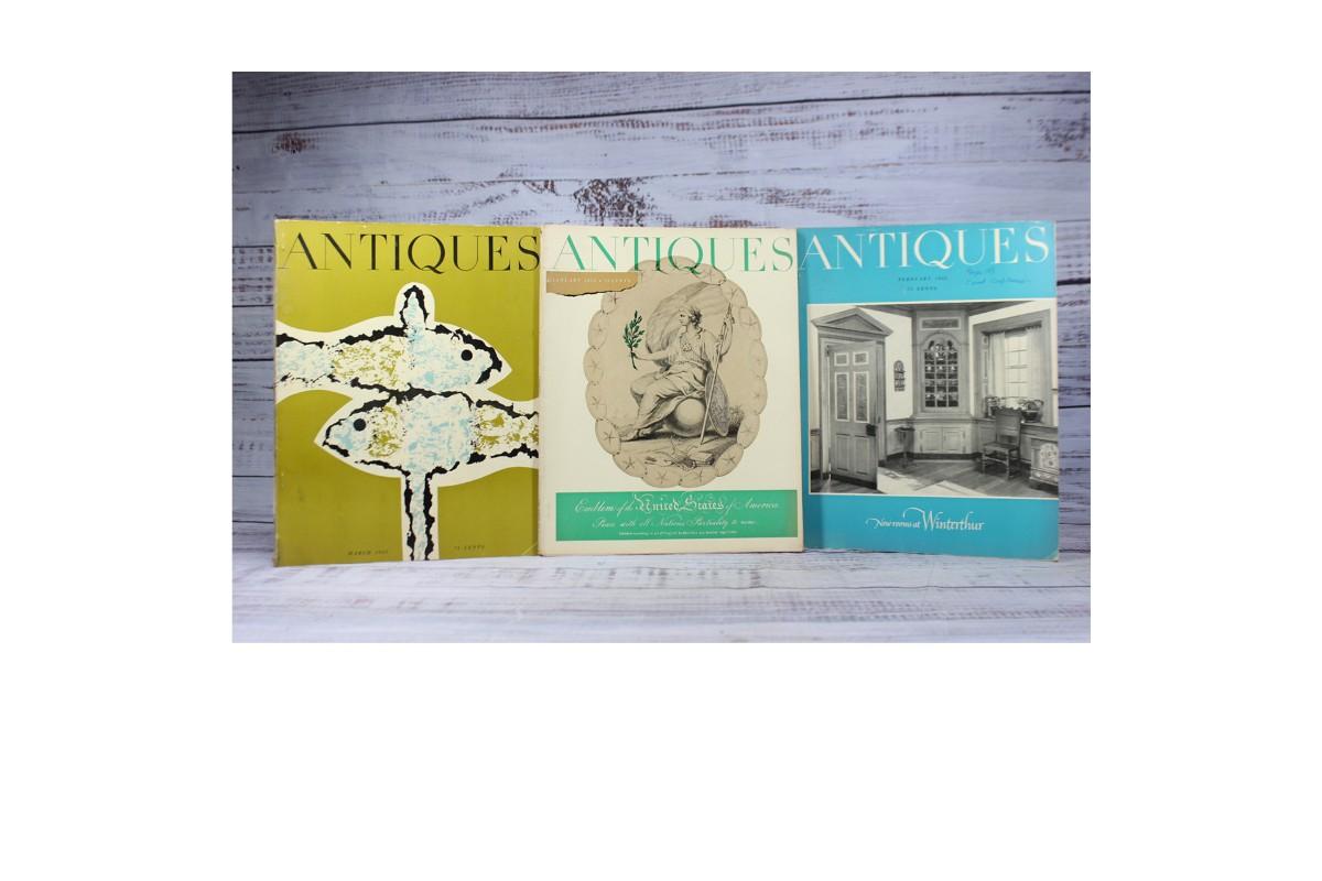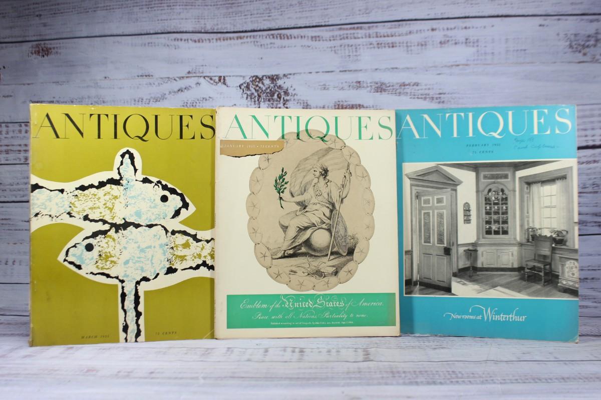 Lot of Vintage 1955 Antiques Magazines January - March, there are no significant tears or rips to any of the pages and is in good vintage condition. Check pictures for more details and for sizing.