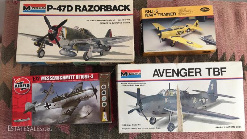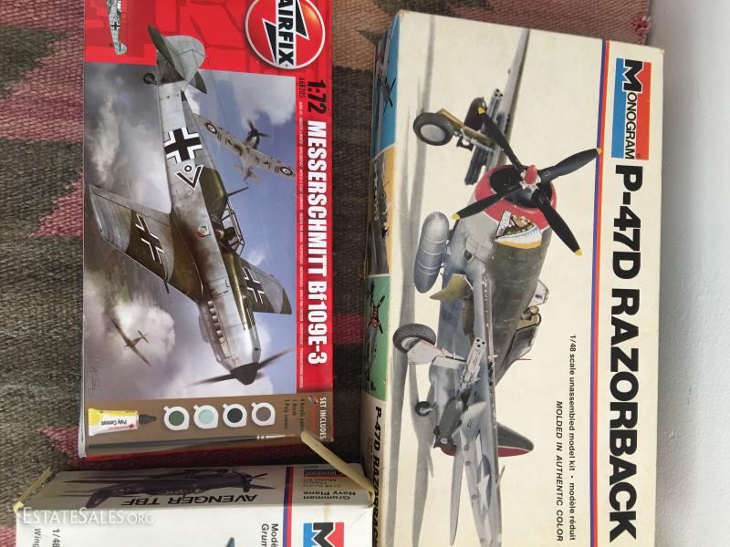 lot of models, the Testors and the Airfix are new in the box the 2 Monogram models are open boxes partially built.