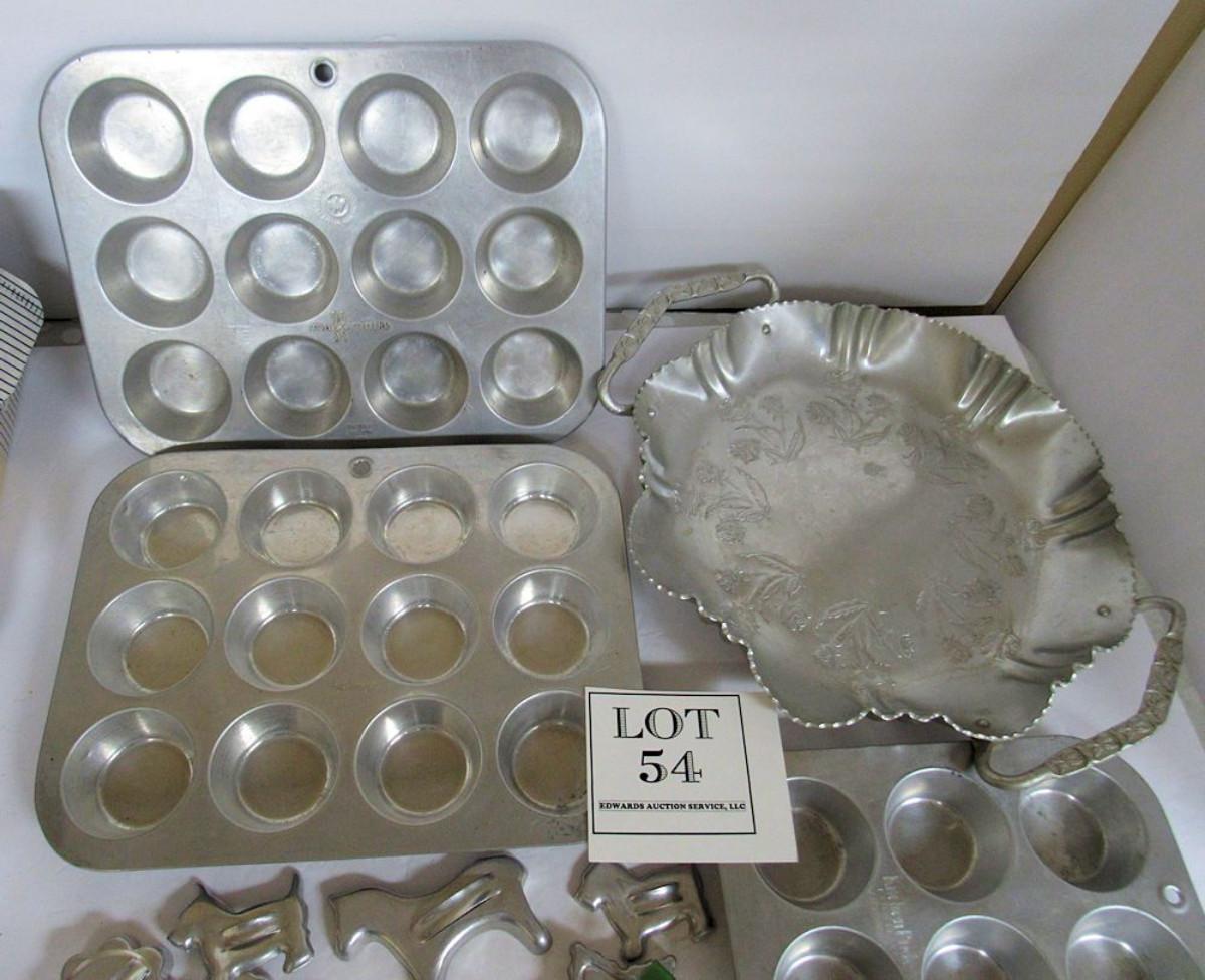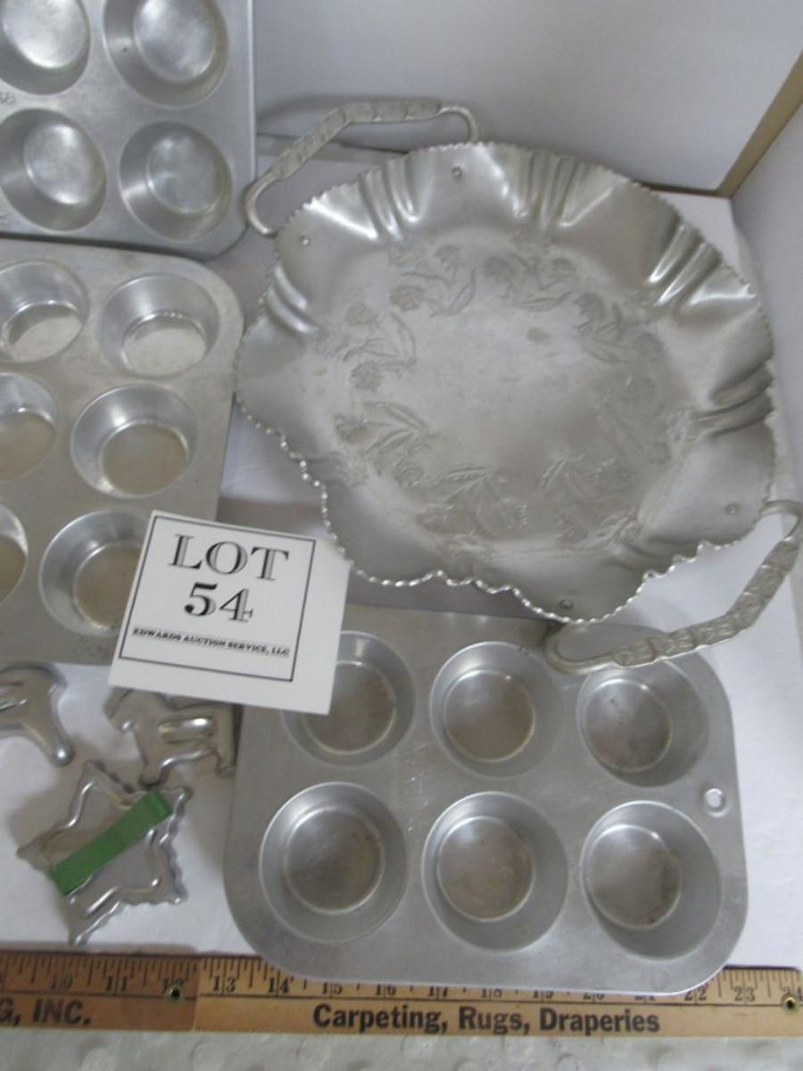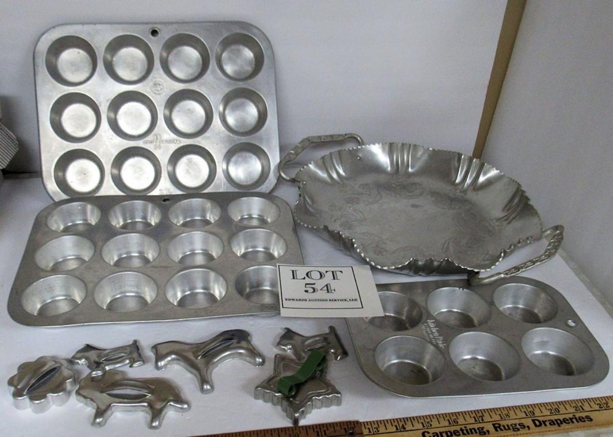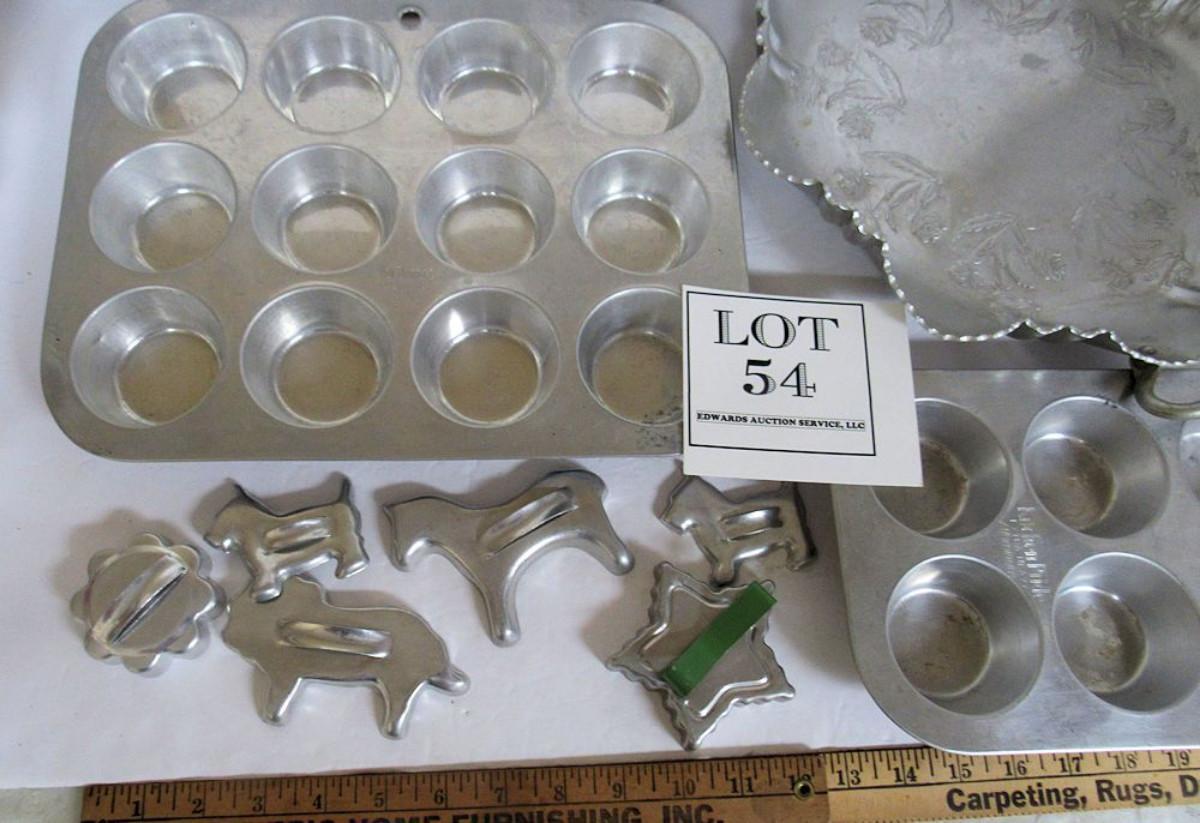 Lot of Vintage Aluminum Ware, Cookie Cutters, Muffin Tins, More