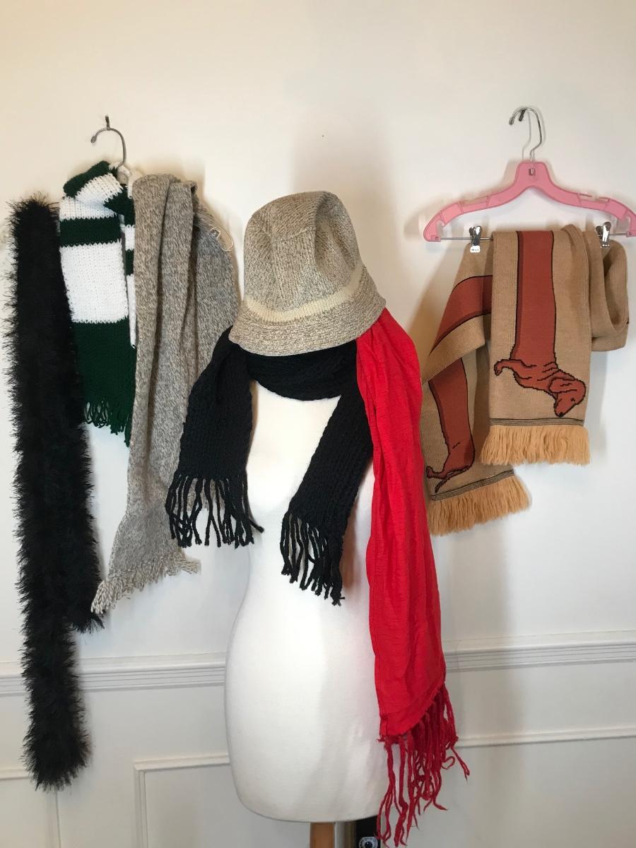 Lot of vintage and contemporary knit scarves, hat, gloves