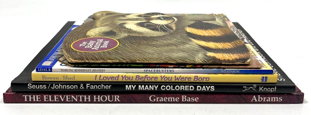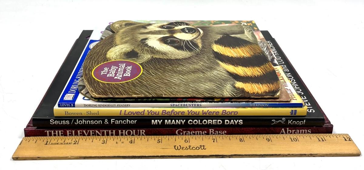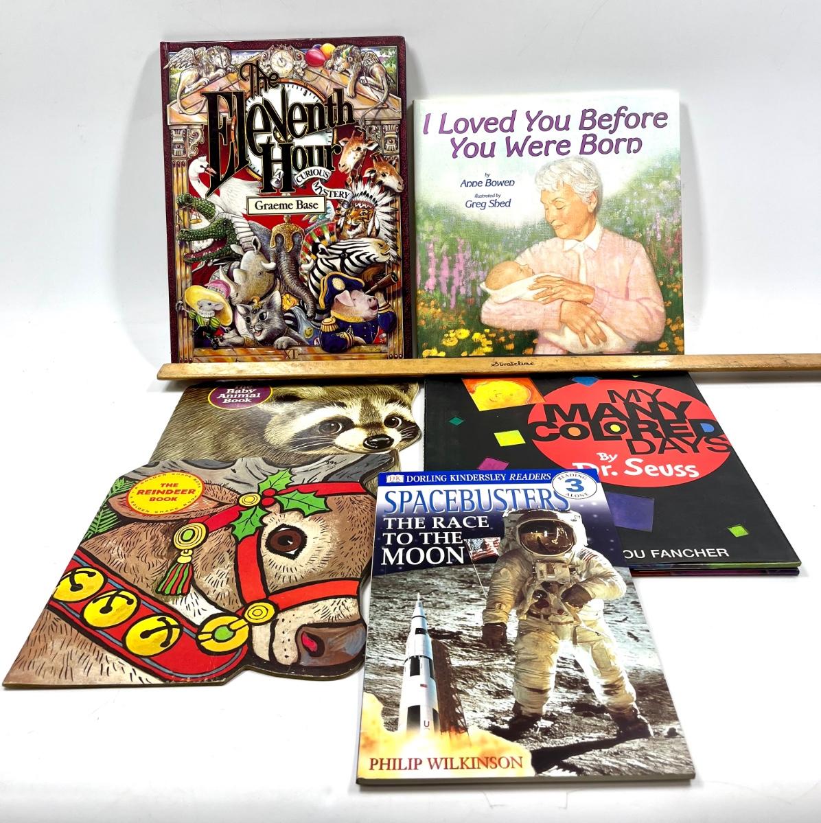 Lot of vintage and new children’s picture books Reindeer, Raccoon baby animals, astronauts, My Many Colored Days and more