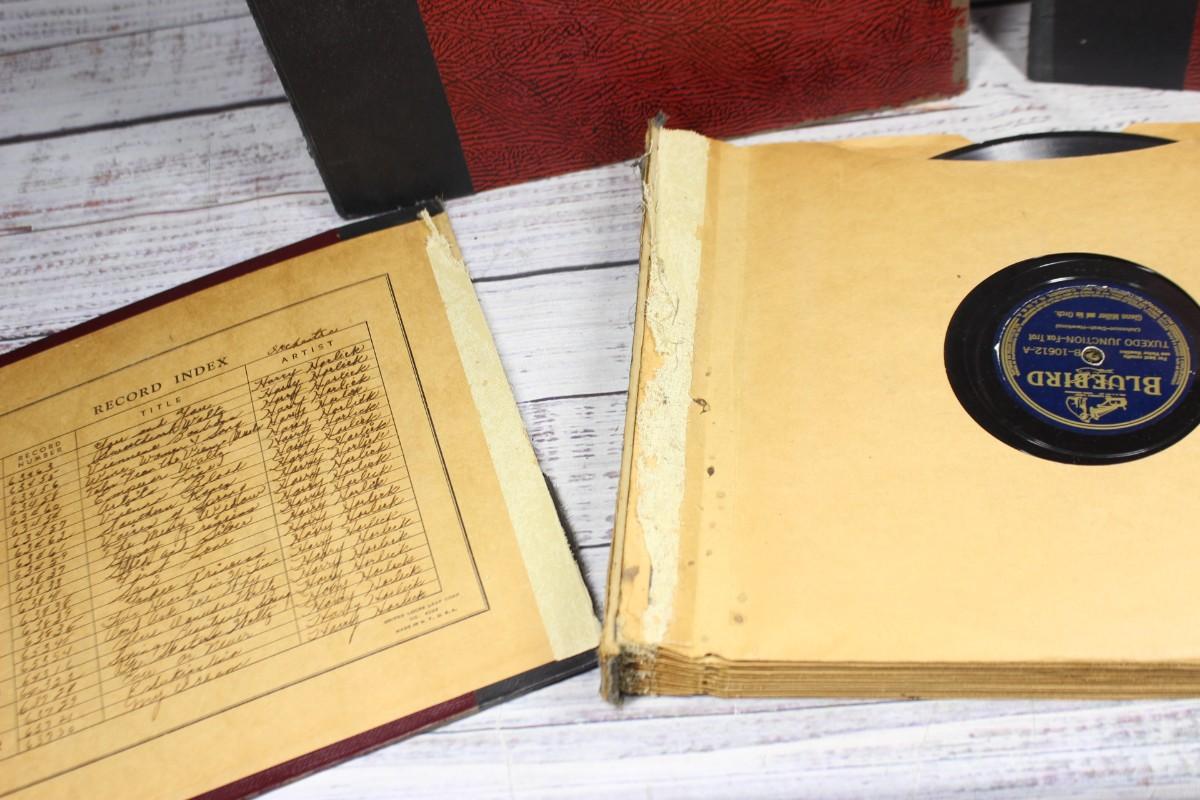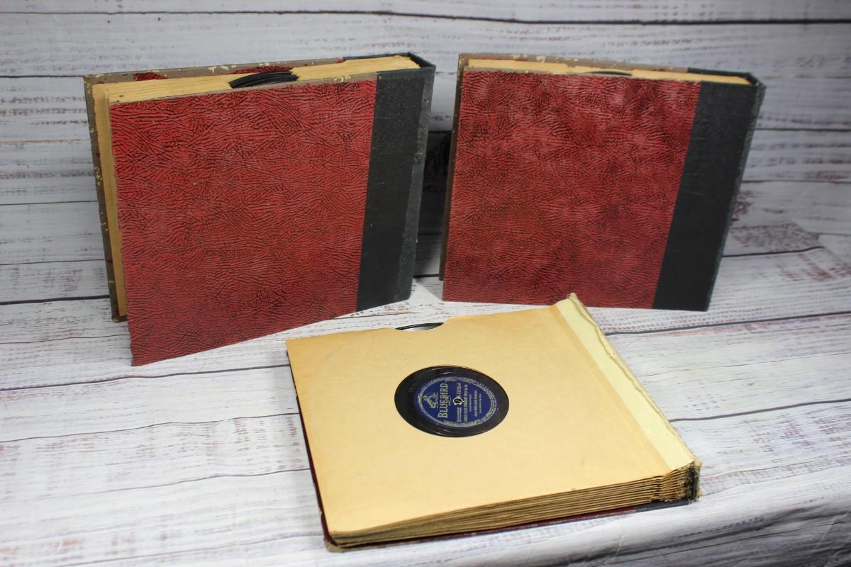 Lot of Vintage Antique Single and Double Side Records Aeolian Voralion, Victor Victrola & More, there is some wear to the albums, one album is missing the back cover and the front cover has been ripped off. There are two missing records from one of the bright red albums, the rest are complete. Records have not been tested, check pictures for more details.