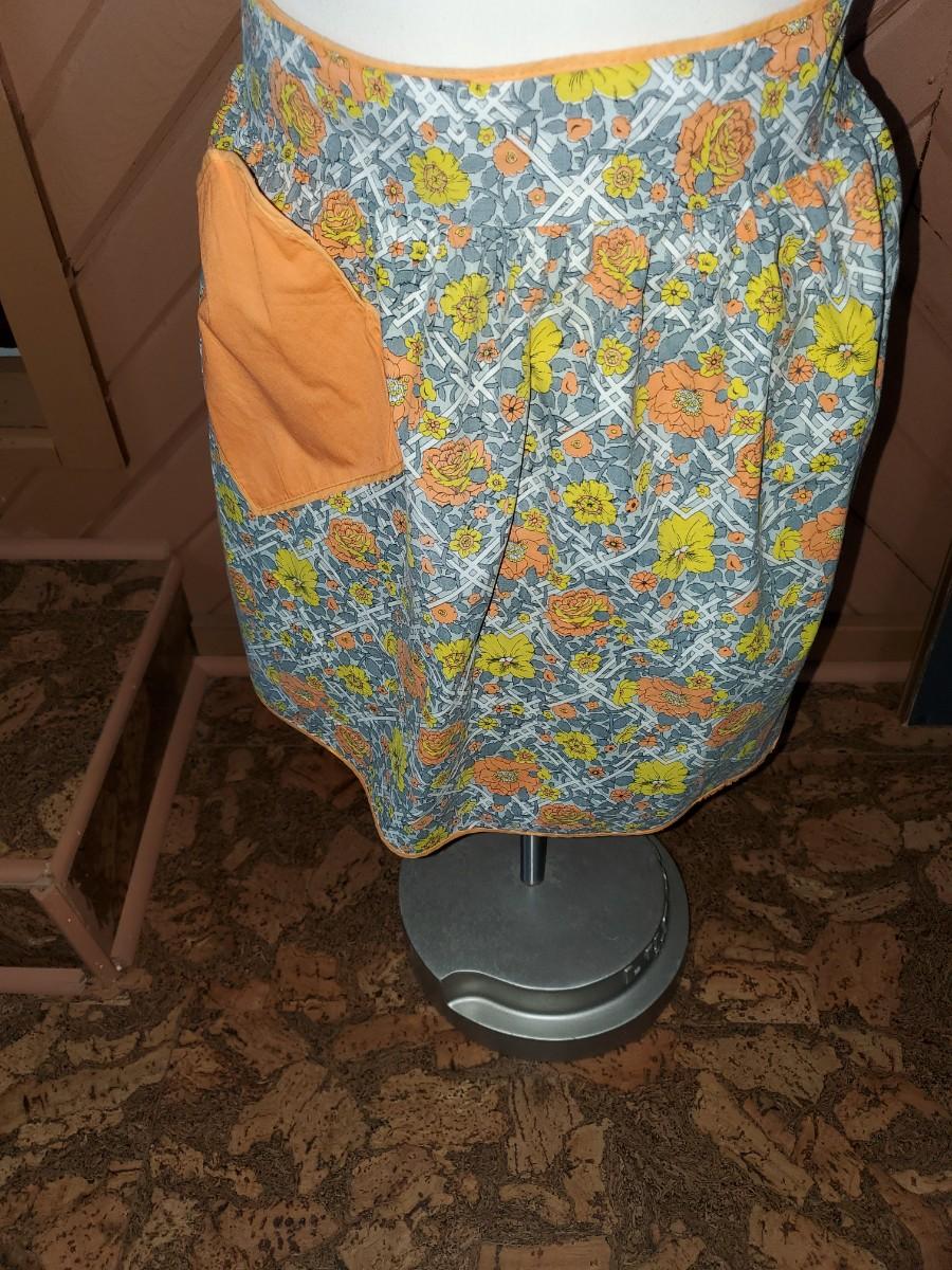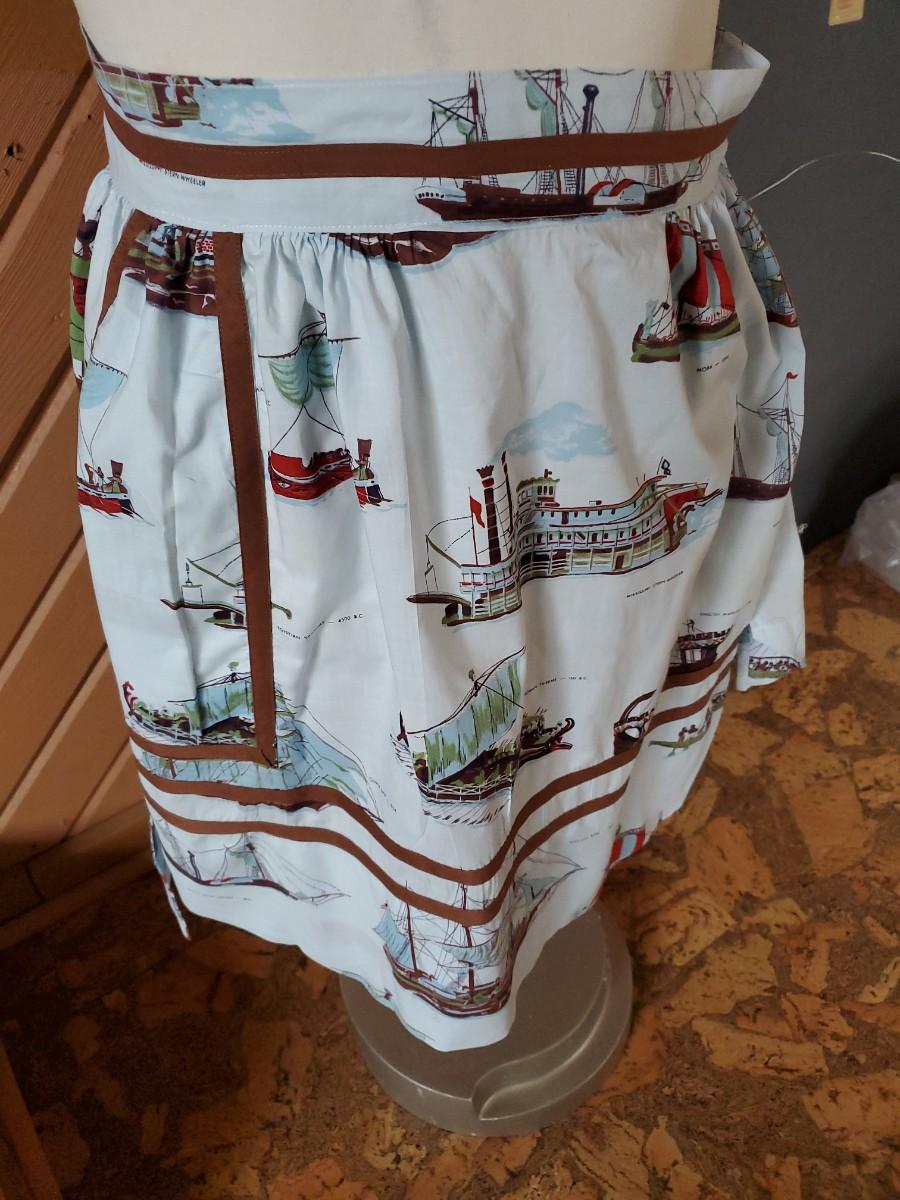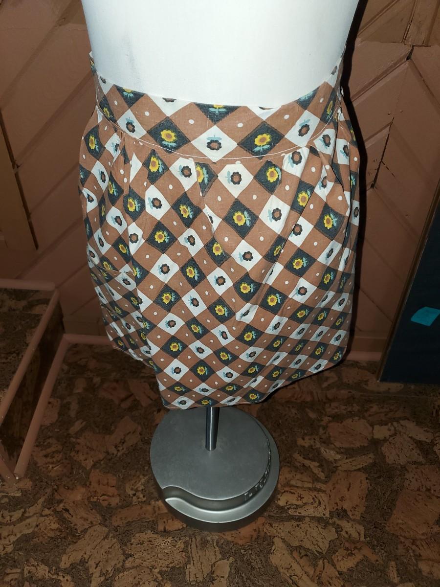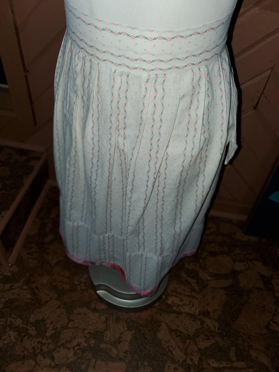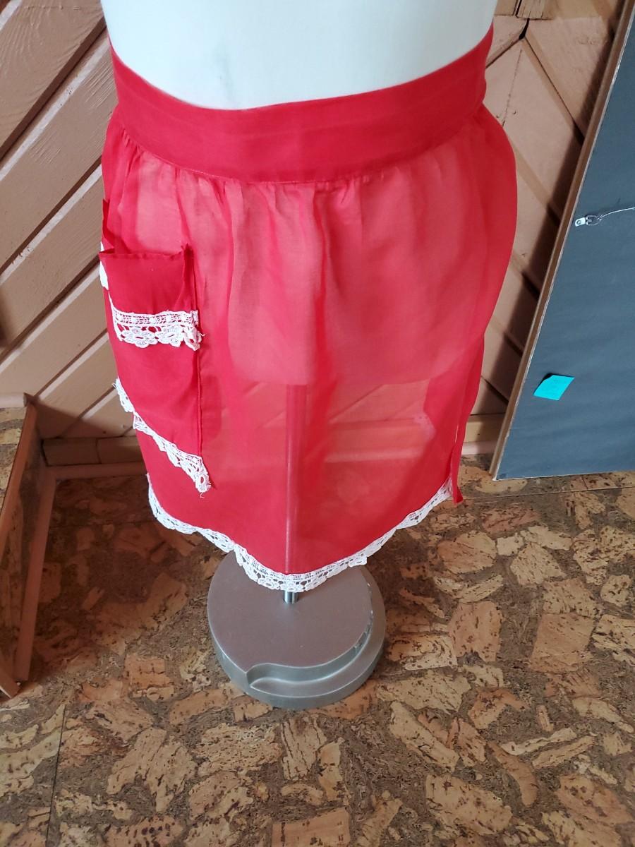 2 pretty old full aprons; The rest are half aprons. All handmade by a talented seamstress. All are in wearable condition. Some are small and short; others for a bigger person. They are old and they've all been worn to one degree or another so some do have minor faults.