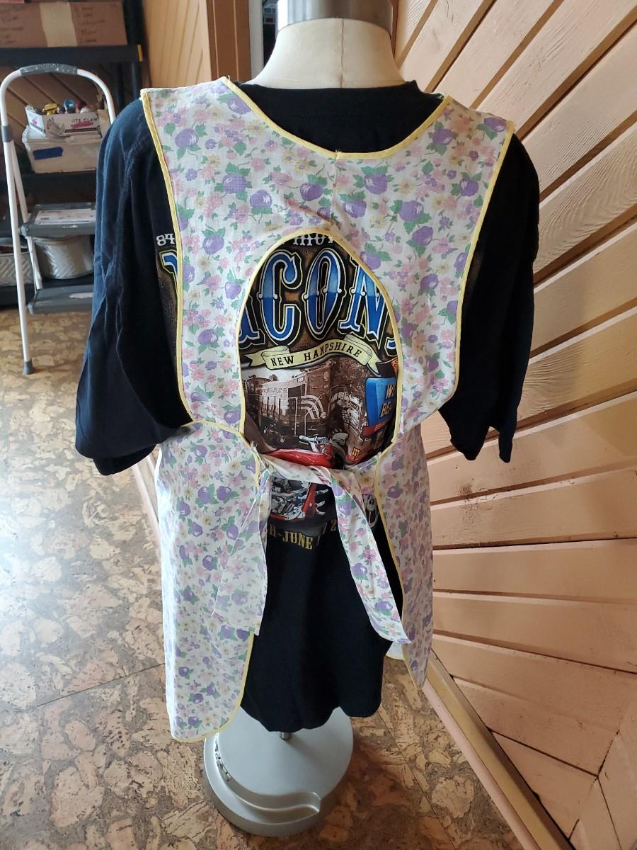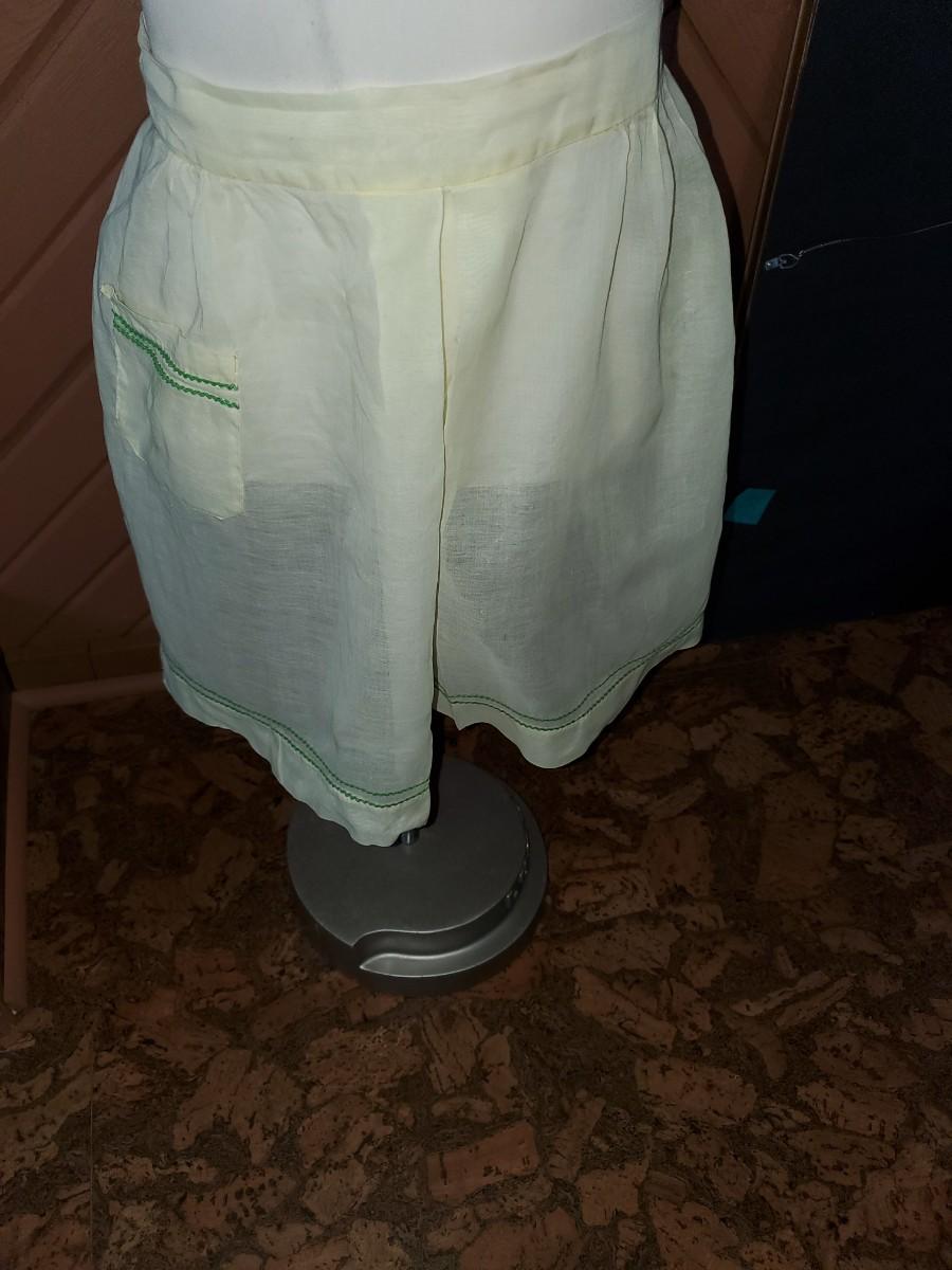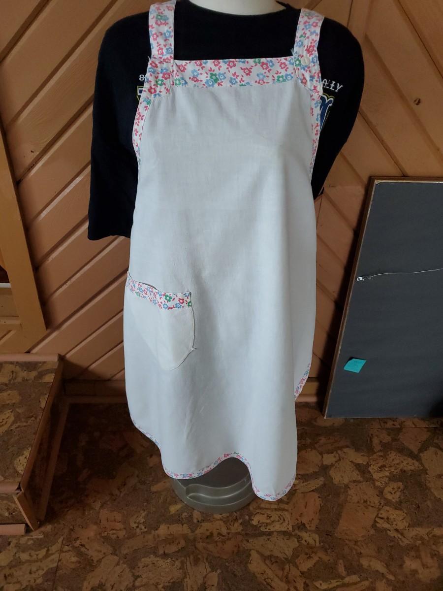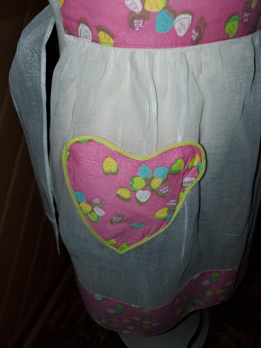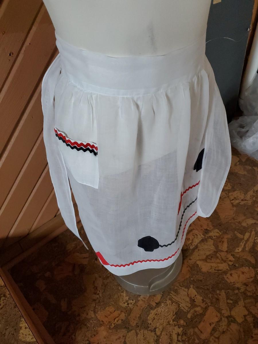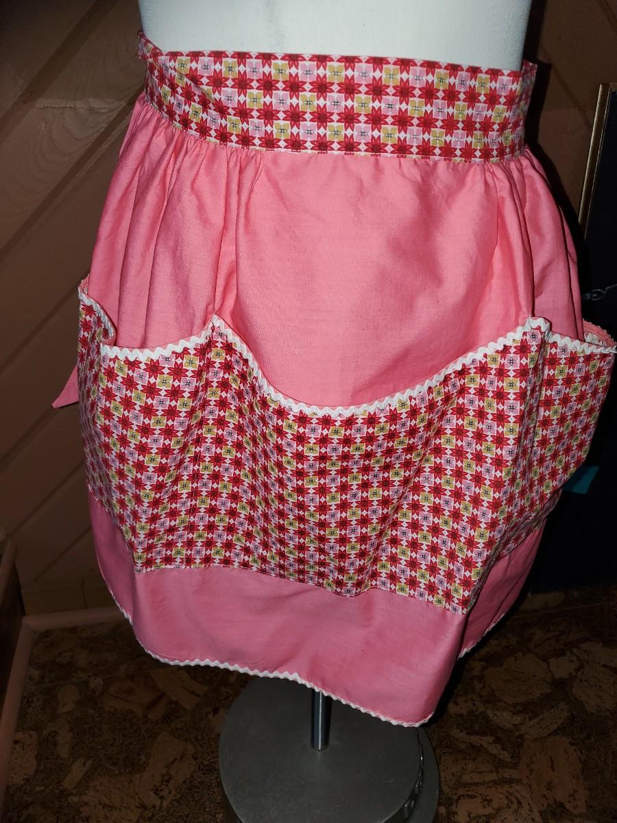2 pretty old full aprons; The rest are half aprons. All handmade by a talented seamstress. All are in wearable condition. Some are small and short; others for a bigger person. They are old and they've all been worn to one degree or another so some do have minor faults.