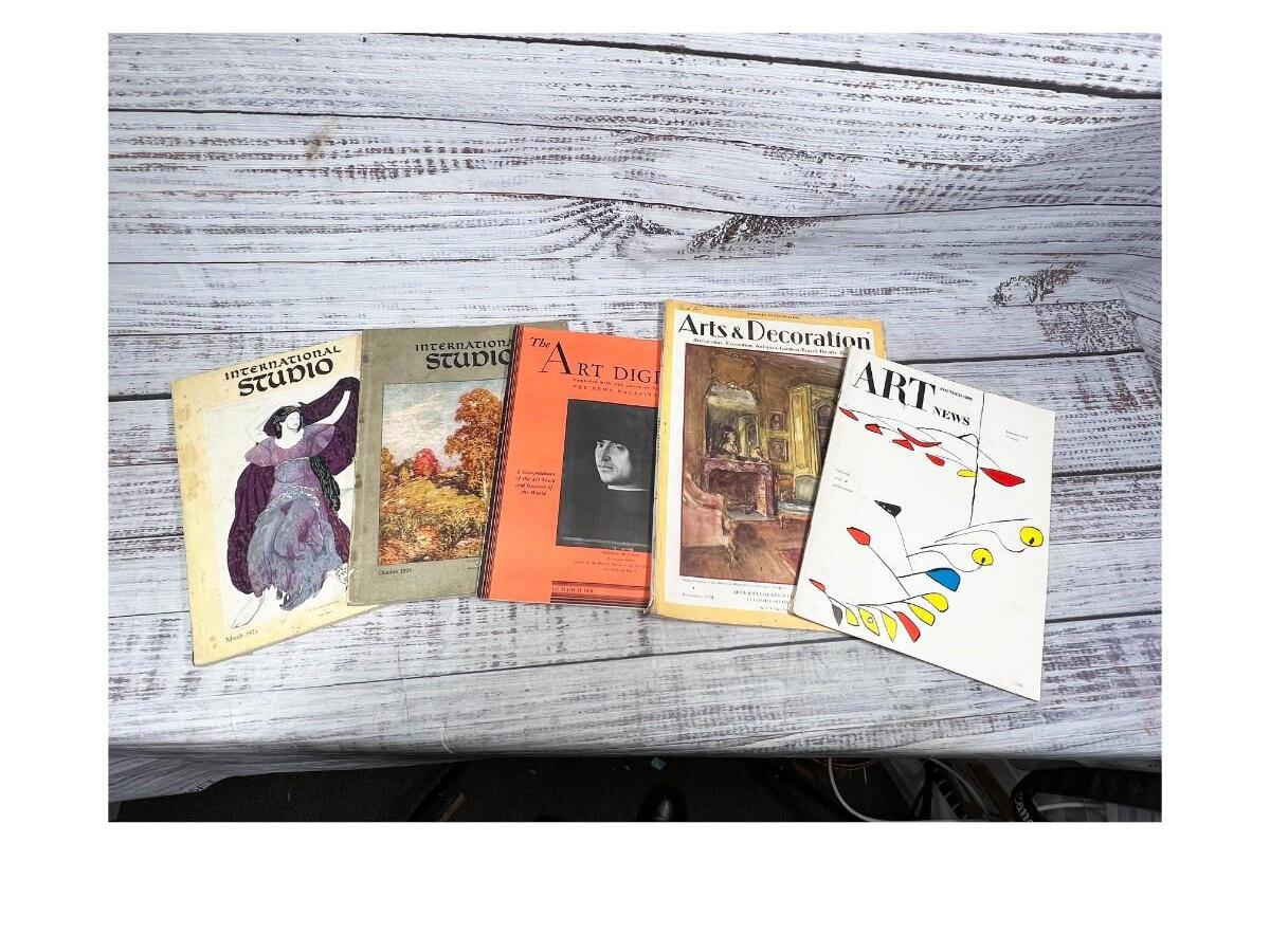 Lot of Vintage Art & Culture Magazines International Station Art Digest, Art News, and Arts & Decoration, there is no significant rips or tears to the pages and is in overall good condition. Check pictures for more details and for sizing.
