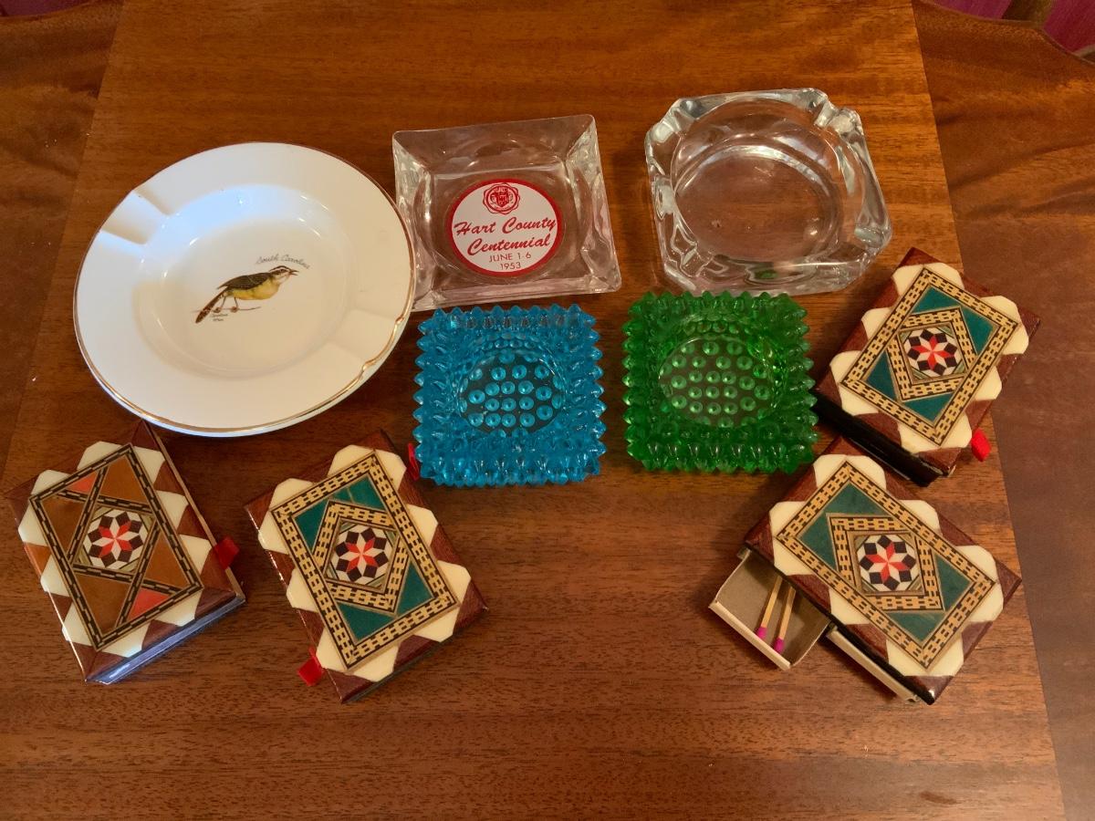 Lot of Vintage Ashtrays including Wood Match Stick boxes from Spain
