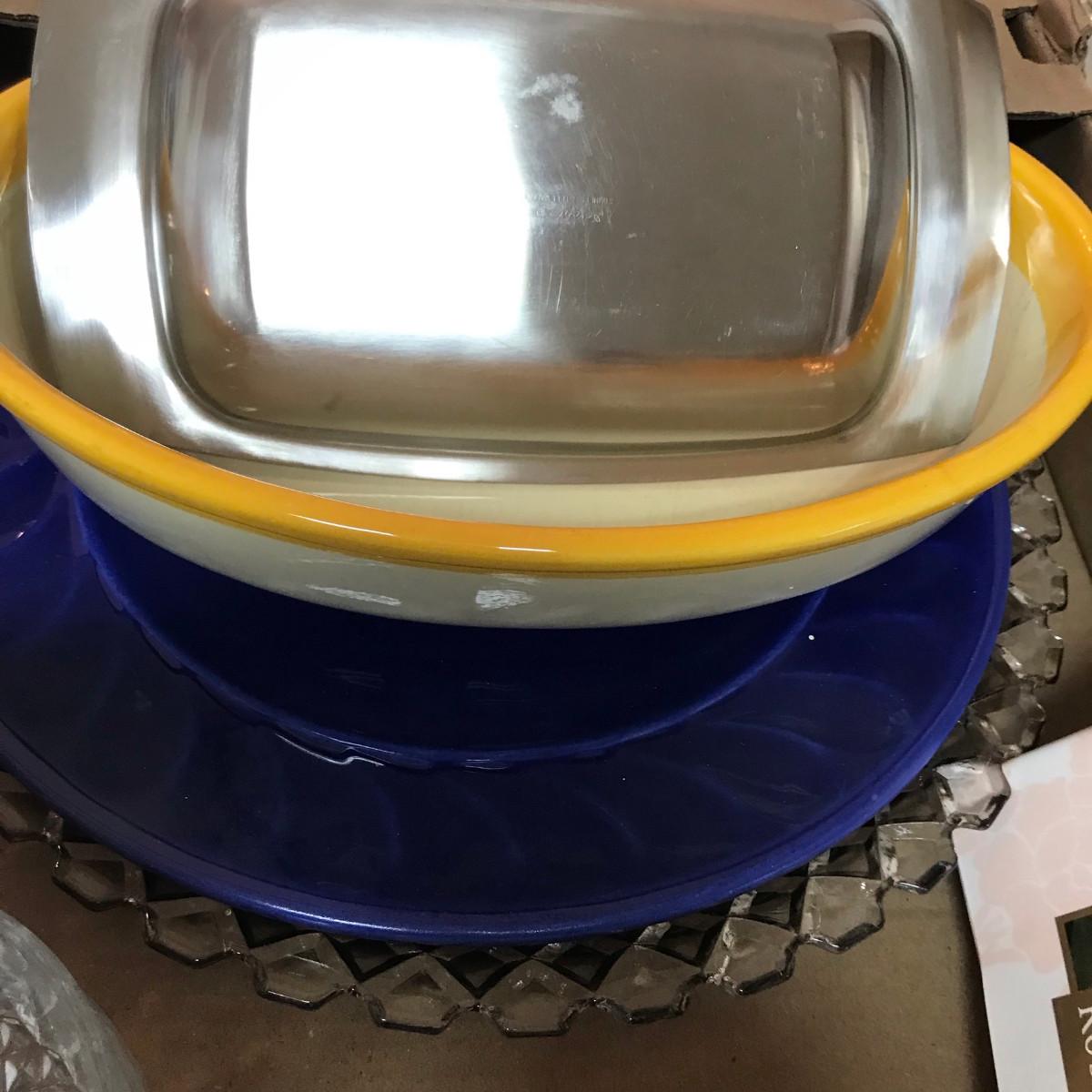 The blue plate is Shawnee, the White/Yellow baker is California.