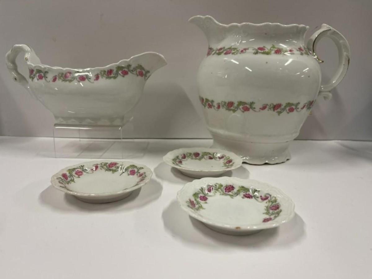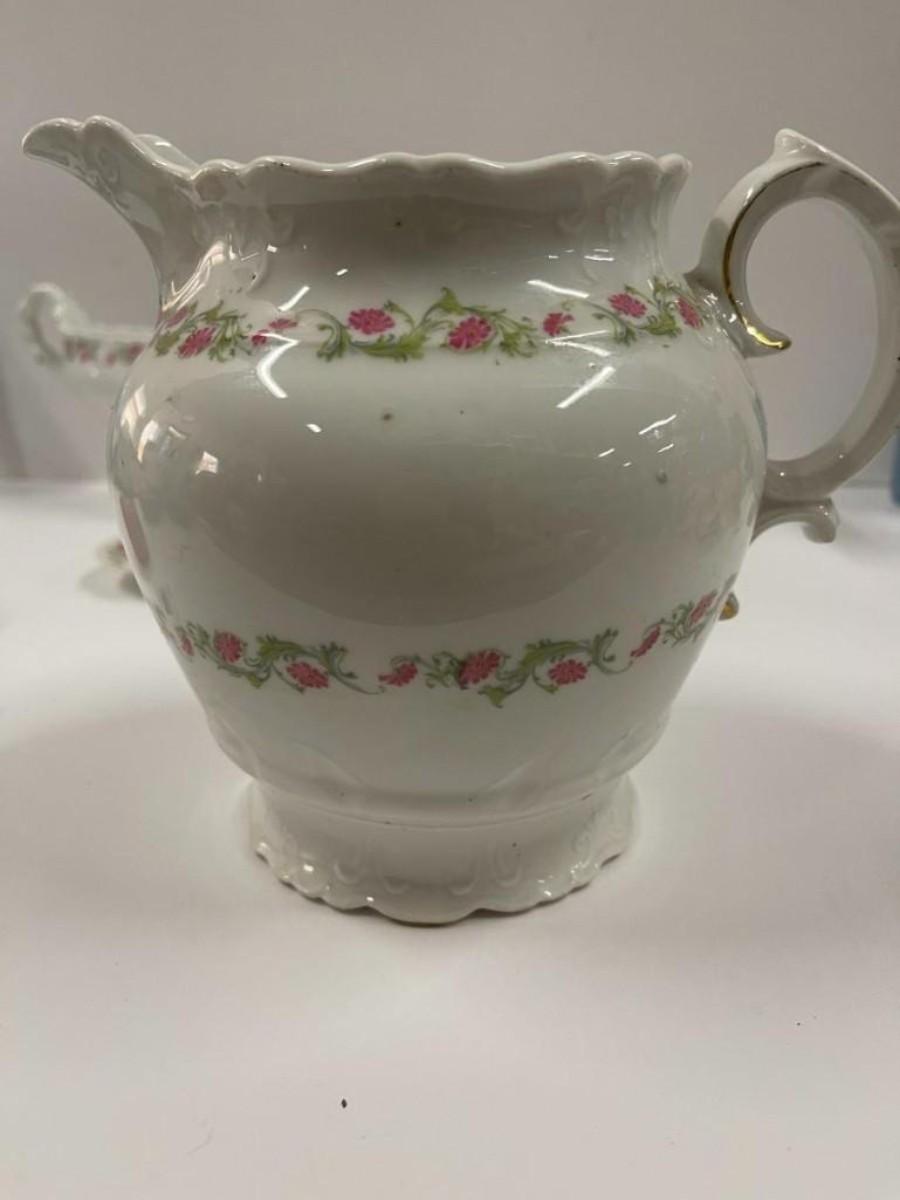 Lot of Vintage Bassett Limoges Includes: water pitcher, gravy boat and 3 small salts.