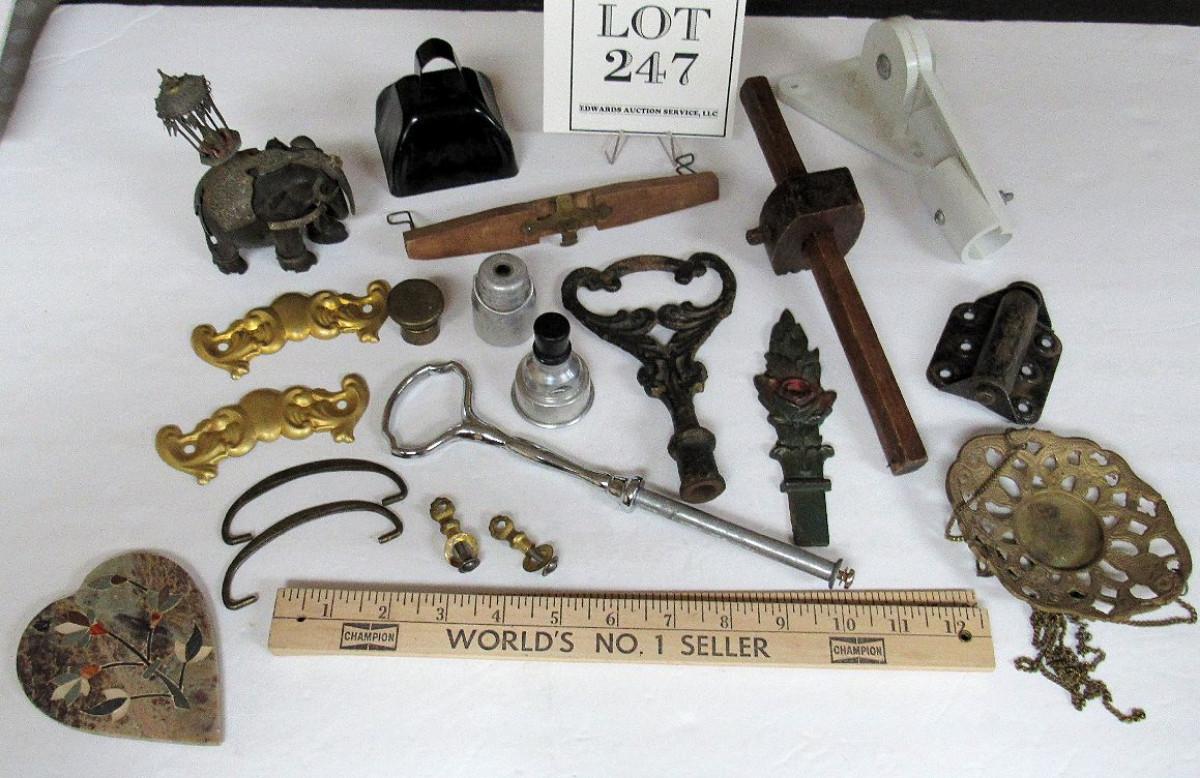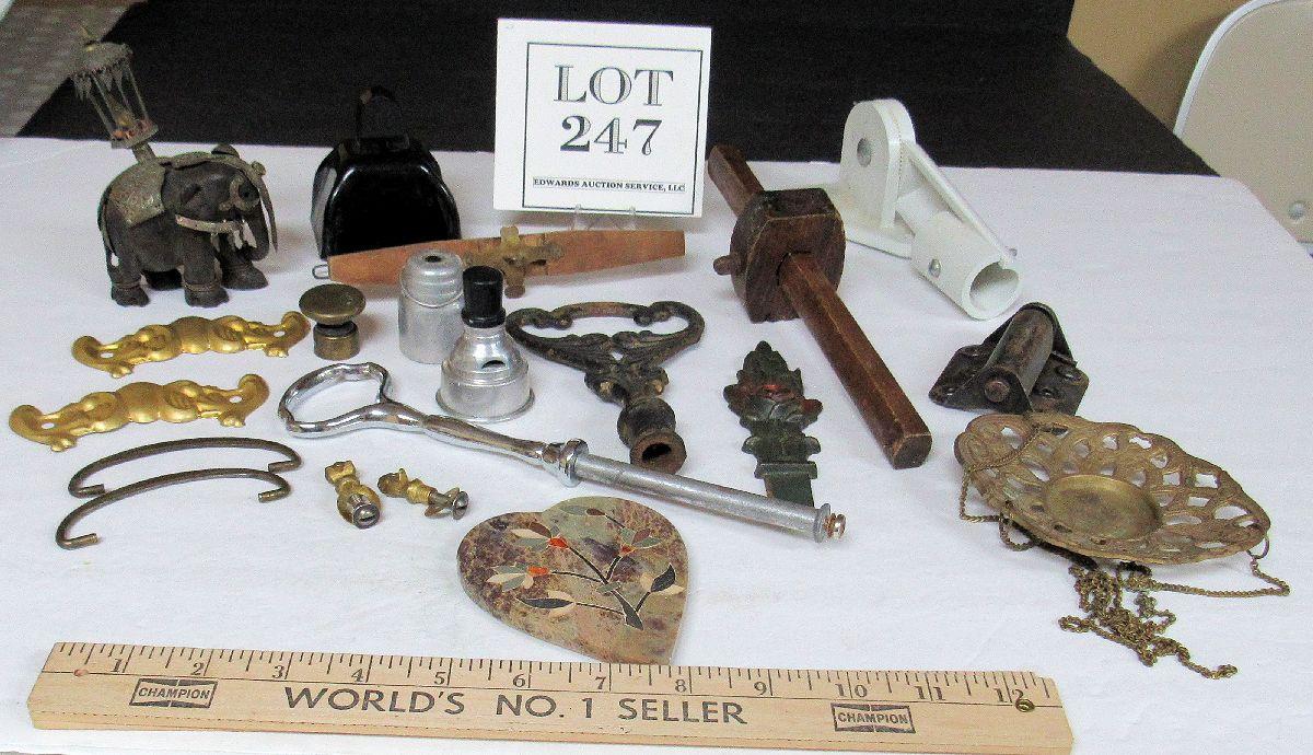 The elephant is a unique item but has a lot of issues. Drawer pulls good, antique curtain rod finial is good, two screw on handles, stereo viewer piece, much more. Shipping is available at shipping cost plus $5.00 handling fee on one box, $10.00 handling fee on two boxes, $15.00 handling fee on 3 boxes. Helps cover shipping materials and labor cost.