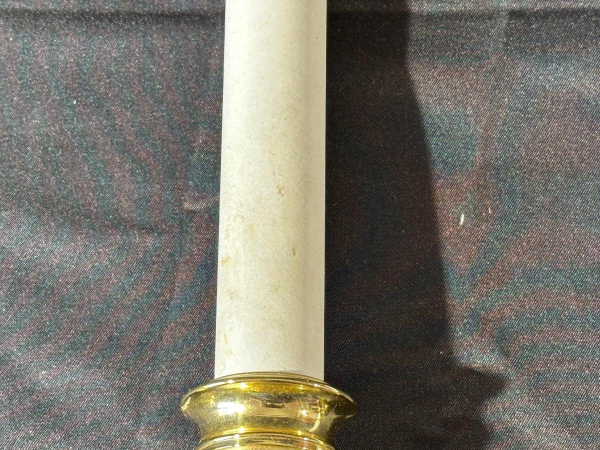 Please see photos for what’s included. Cream candles inside fixture are wood and seemingly not removeable.