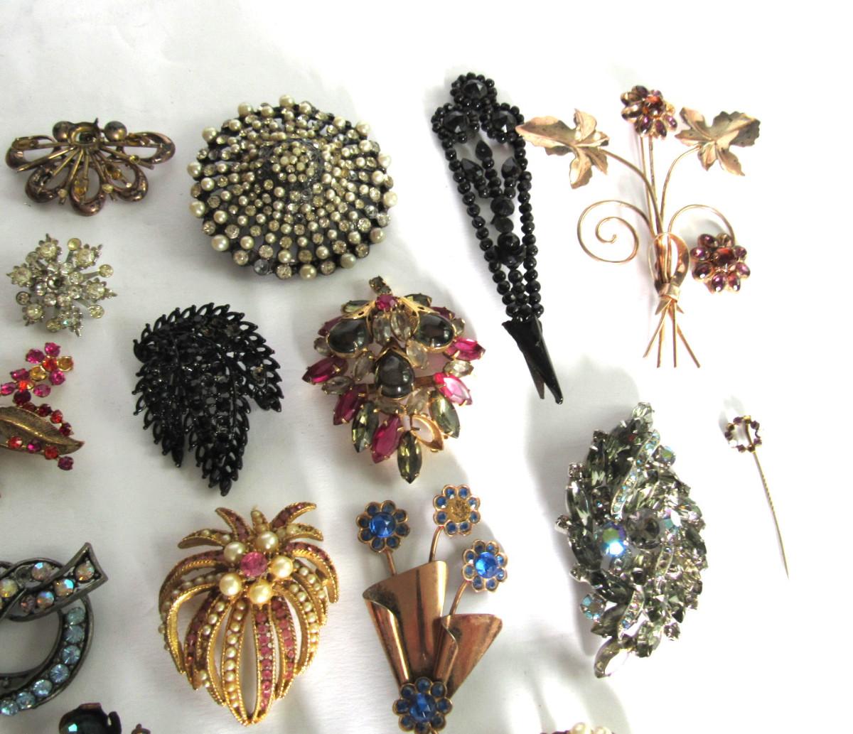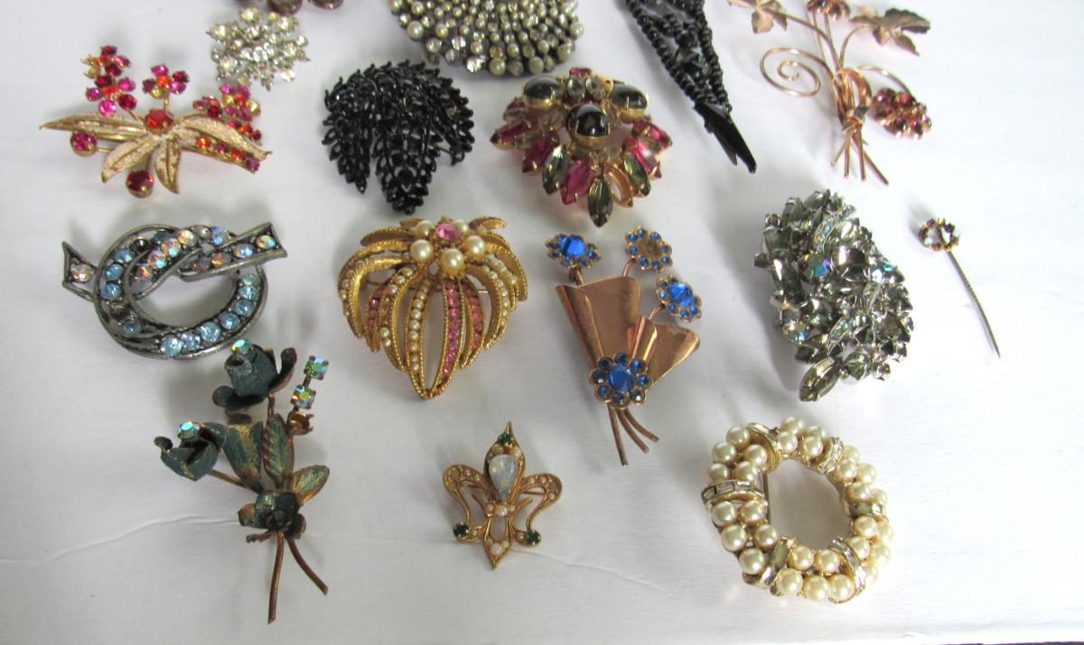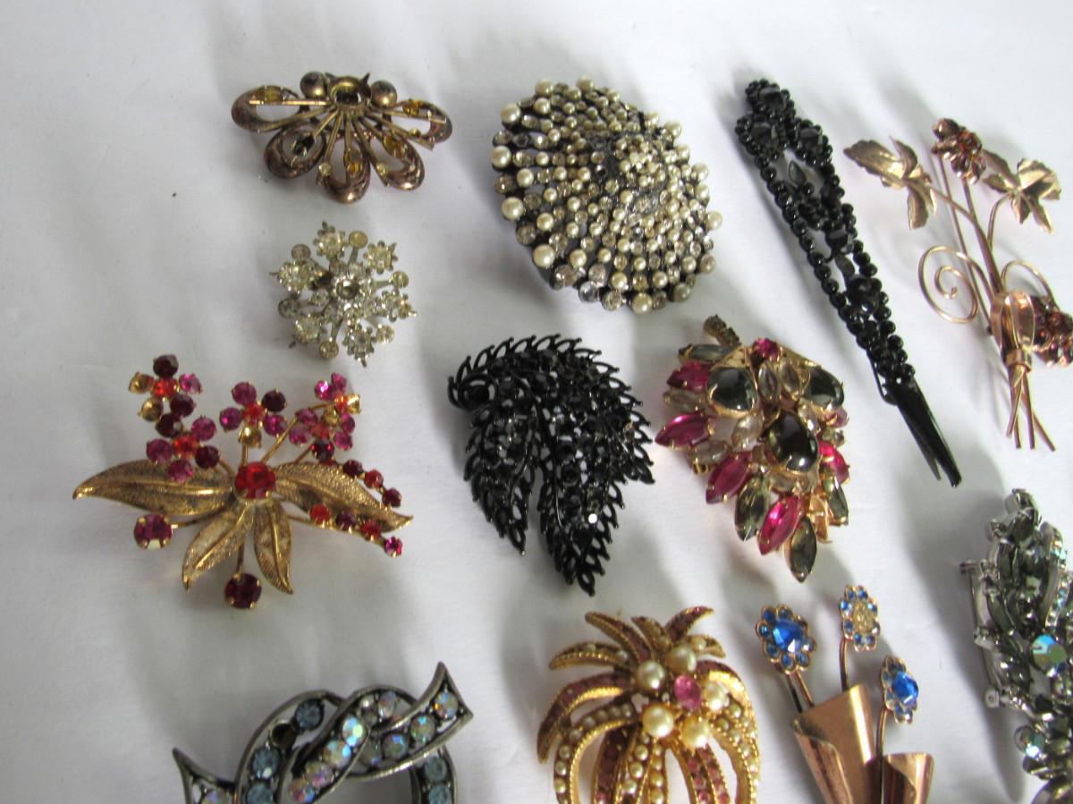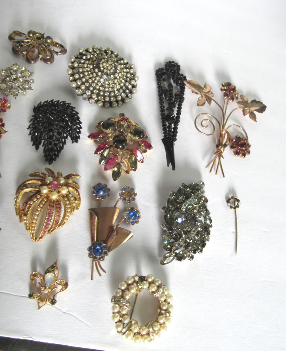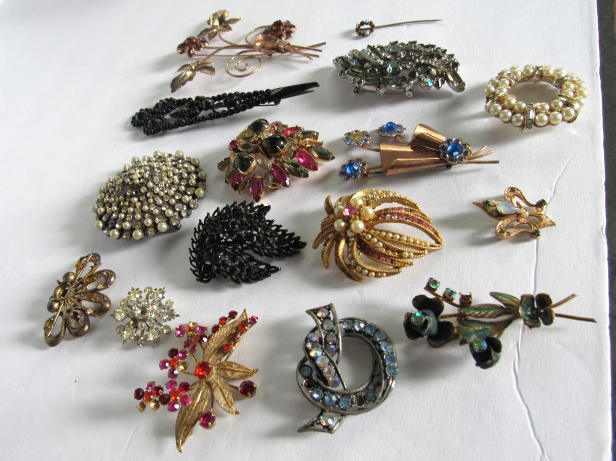 Lot of Vintage Brooches Needing Rhinestones, Some Sterling, Read Description
